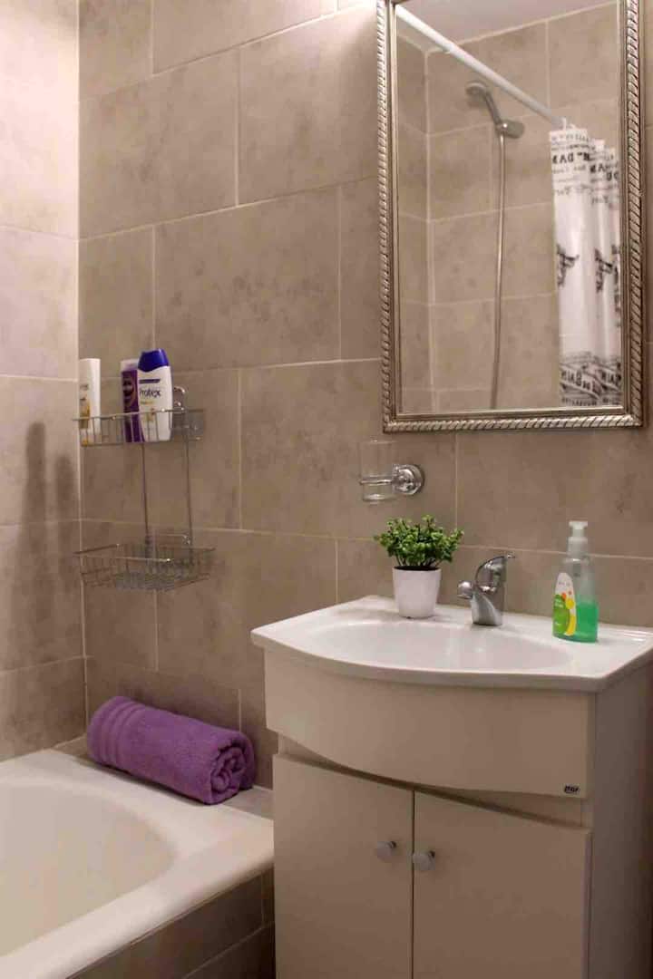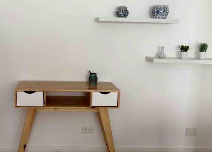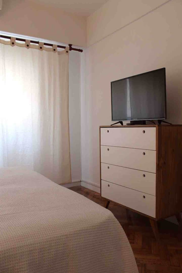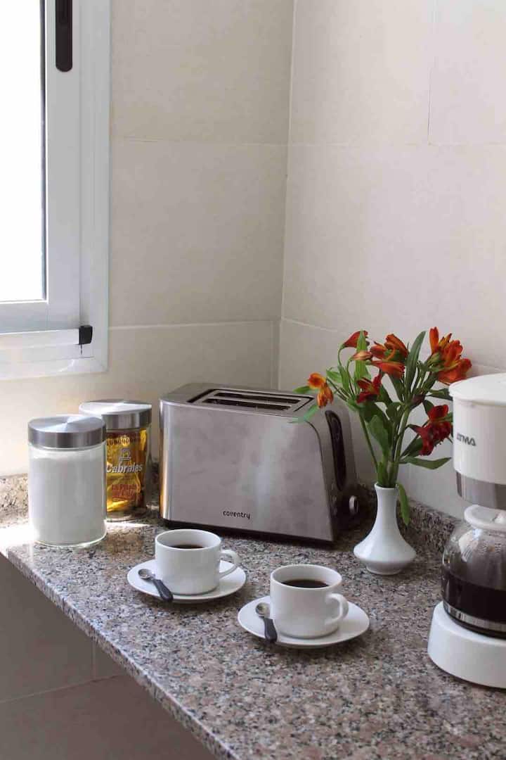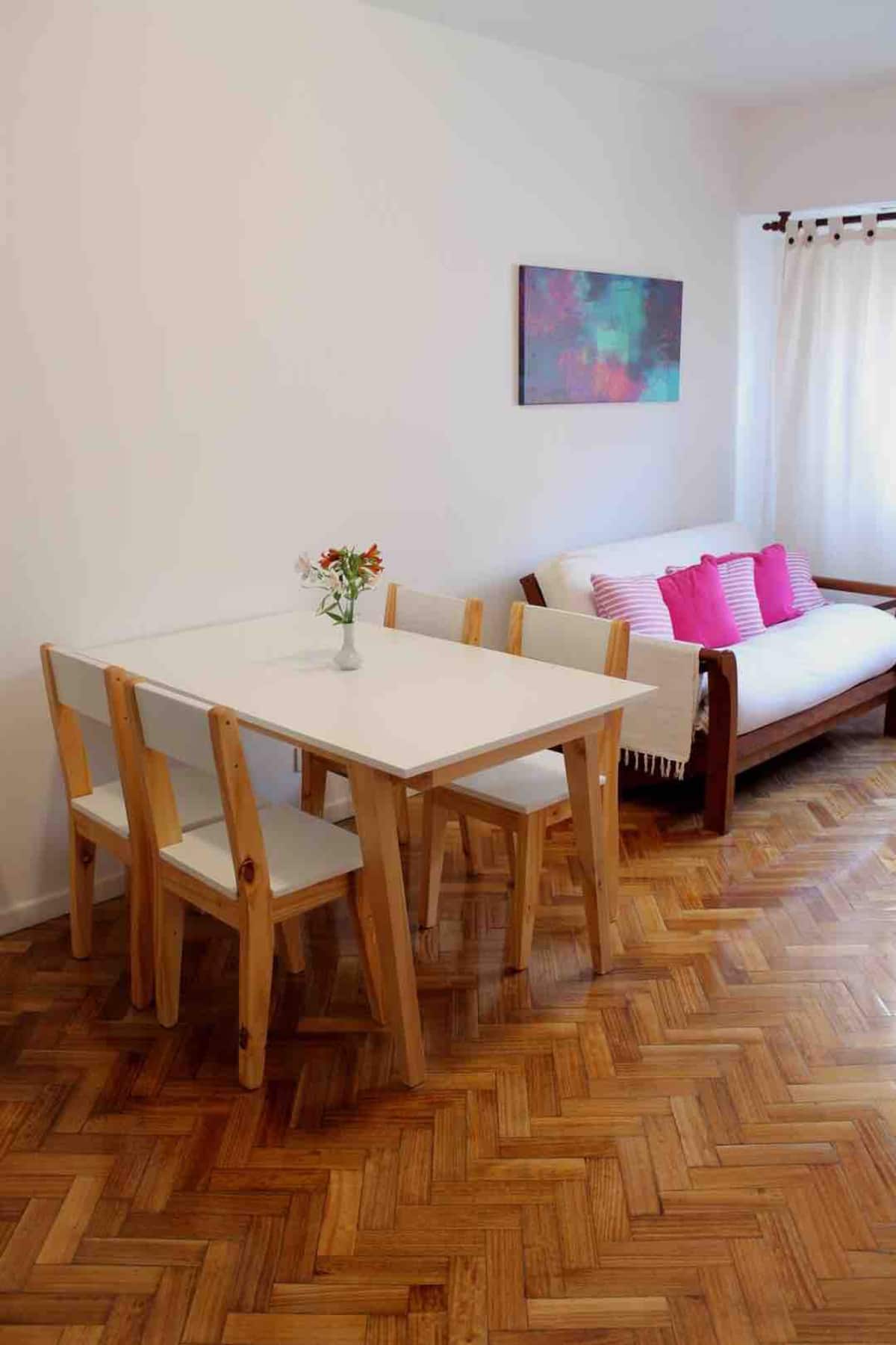 Квартира в San Telmo, в историческом центре Buenos Aires. В помещении установлены 2 телевизора с плоским экраном, WiFi и Flow Cablevision. После ремонта, полностью оборудована: кондиционеры во всех комнатах, кухня с техникой (кофеварка, холодильник, микроволновая печь с грилем, тостер, электрический чайник) и сейф. В ванной есть ванна с душем и биде. В здании работает консьерж, предусмотрена центральная подача горячей воды.