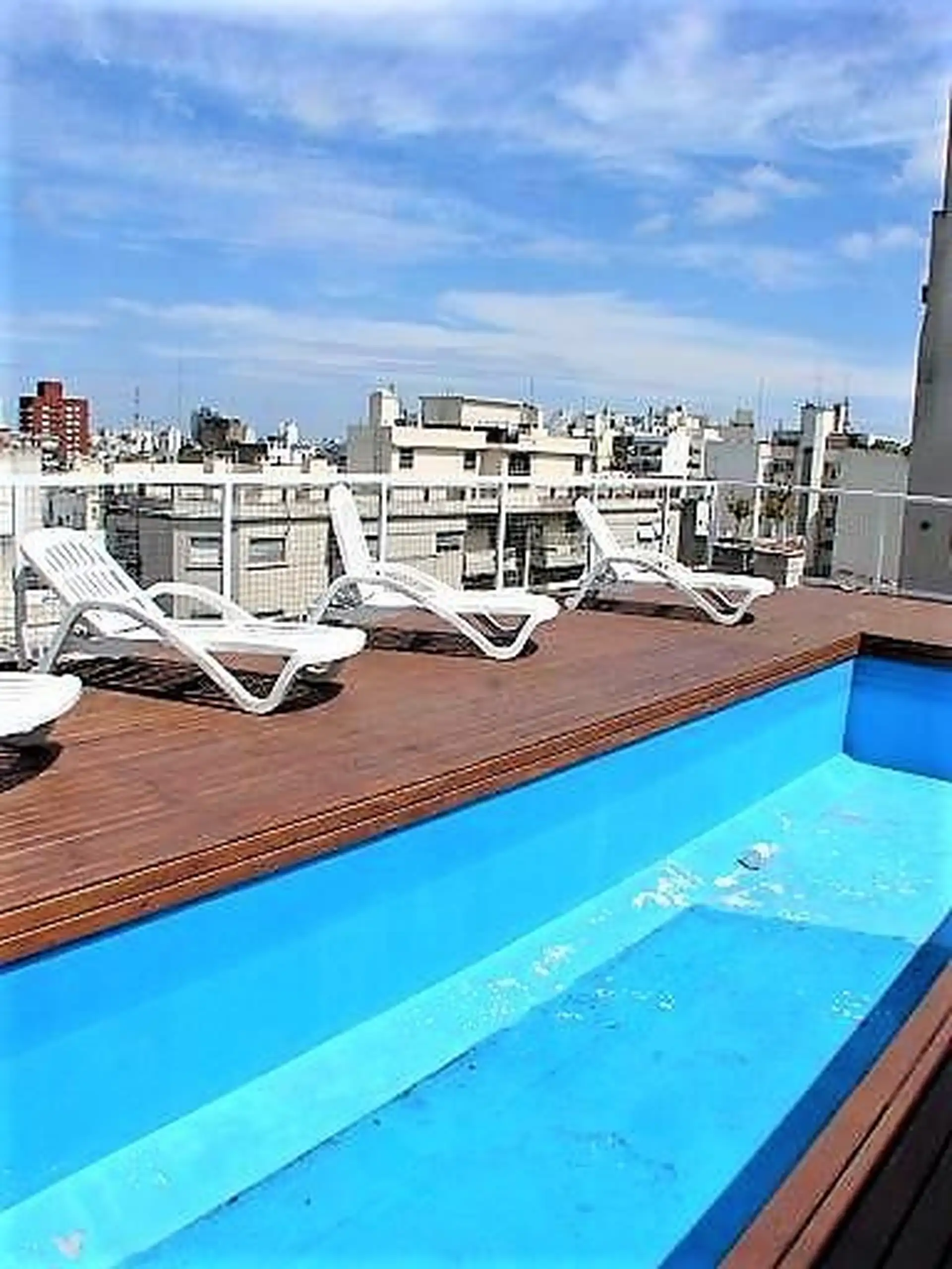 Квартира в San Telmo, размещение на временную аренду. Площадь 44 m² крытых и 12 m² открытых; окна с балконом. В квартире гостиная с кухней открытого типа, спальня, отдельный коридор, полностью оборудованная ванная. Балкон непрерывной планировки, высота потолков 2.6 метра, напольное покрытие — плавающий пол. Включены коммунальные платежи здания; горячая вода и отопление — центральное от котла и кондиционер split (холод/тепло).
