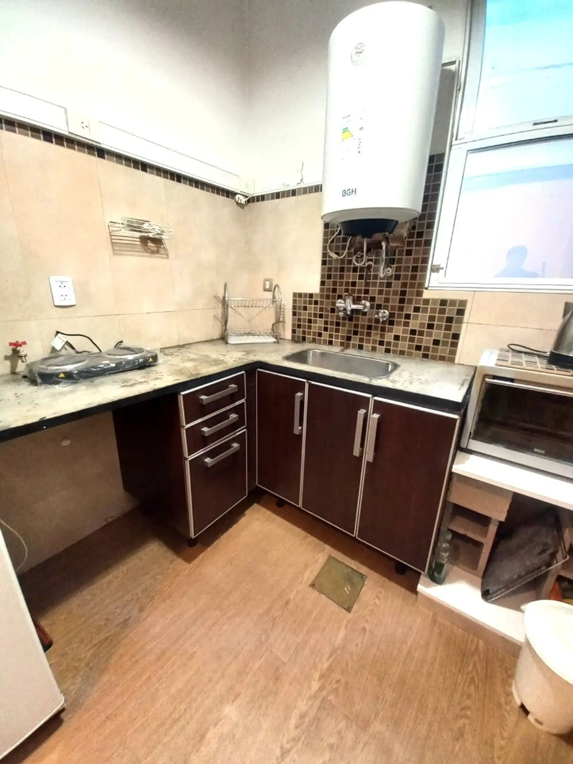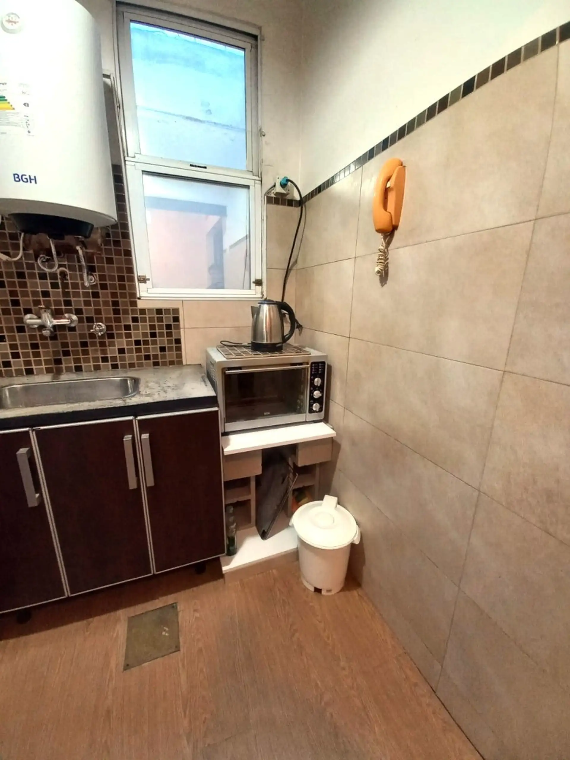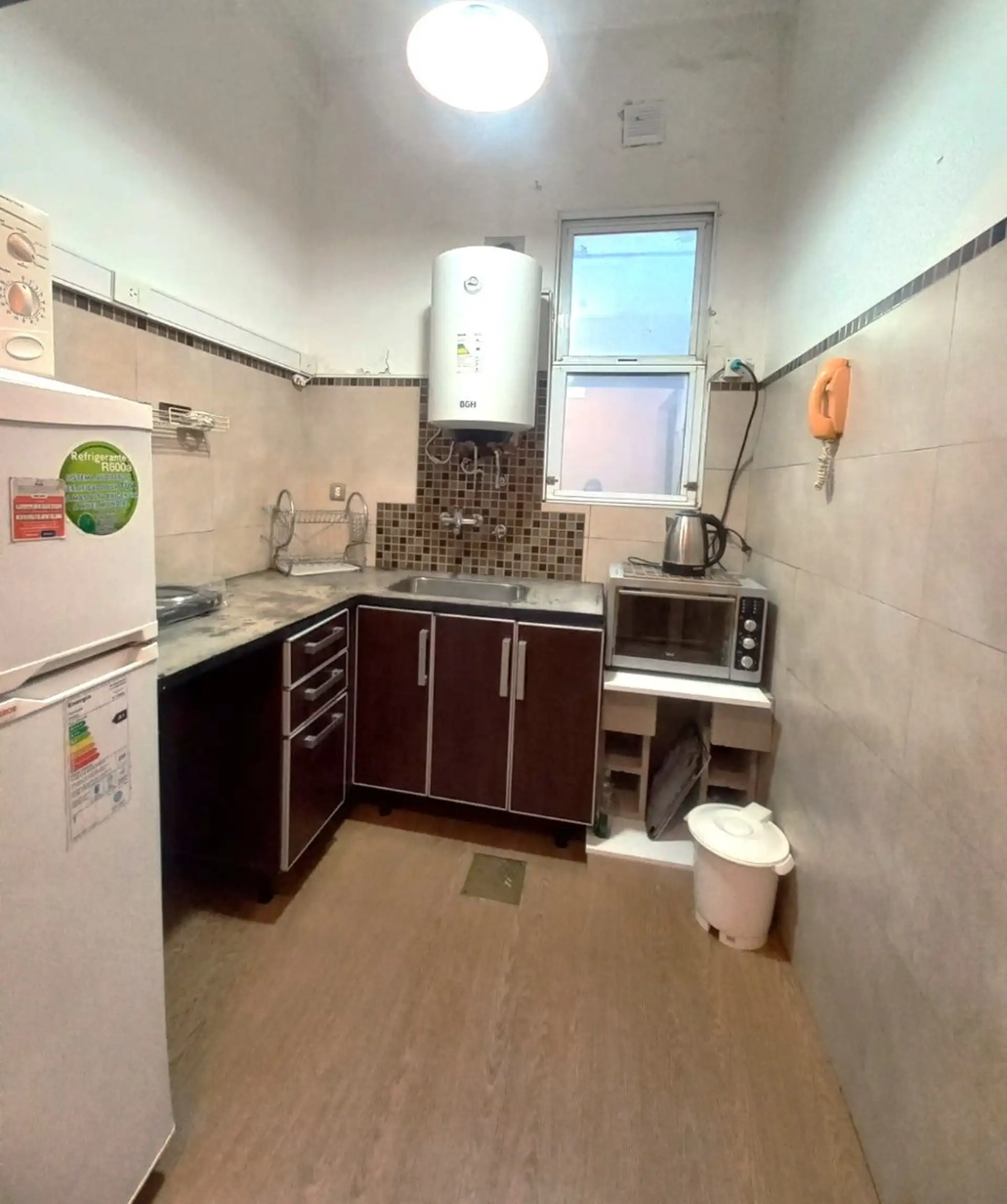 Квартира в аренду на временный срок в San Telmo, 45 m², 2-й этаж (без лифта), доступ по лестнице. Два помещения: гостиная-столовая с двухспальной кроватью и второй кроватью под ней, спальня с двуспальной кроватью и шкафом. Кухня оборудована холодильником с морозильной камерой, электрическим водонагревателем, электрической варочной панелью, электрической духовкой и микроволновой печью; ванная комната с ванной. В здании есть общая терраса; доступность с 3 июня 2026 года. Цена: USD 450 в месяц плюс