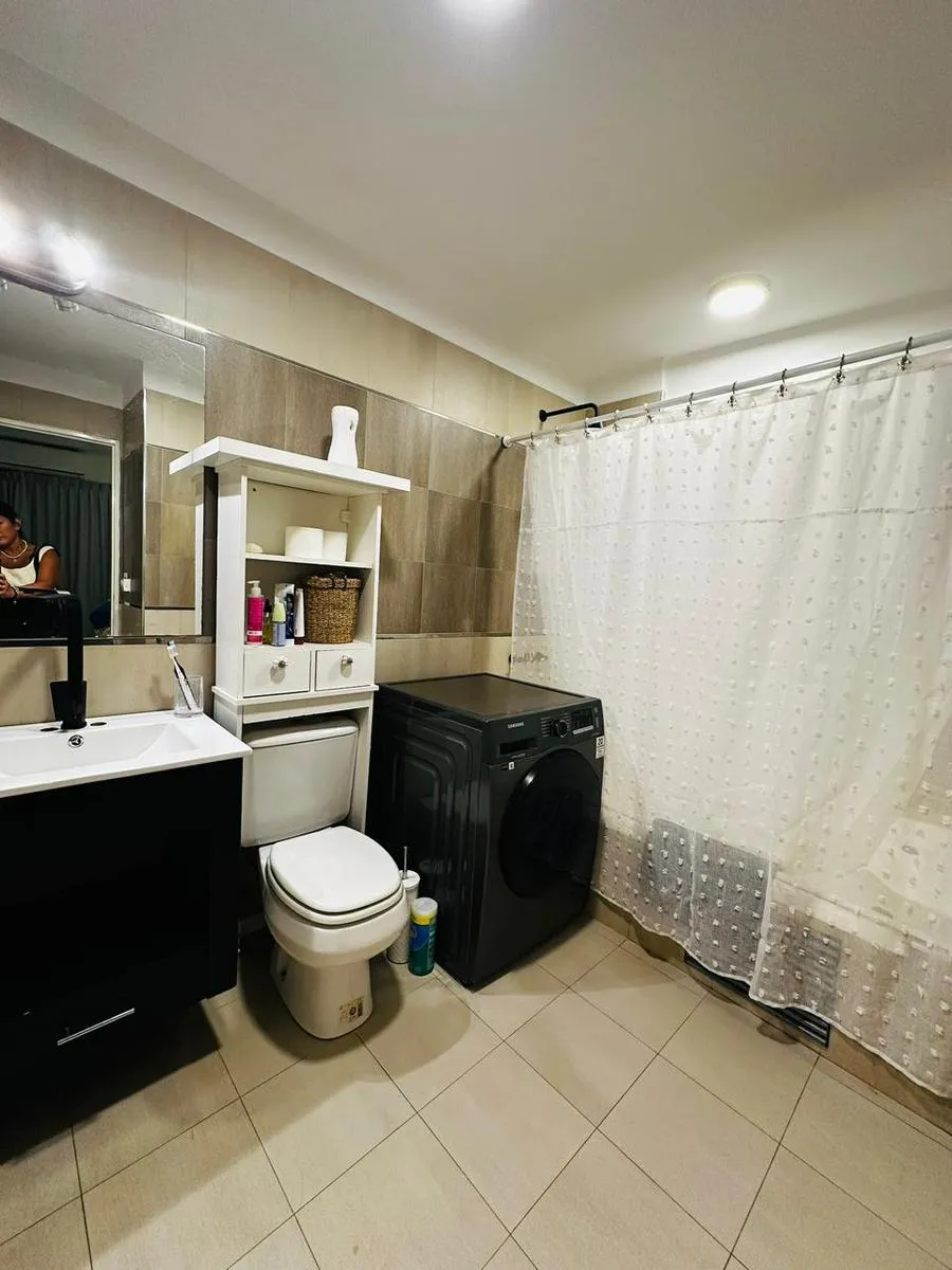Квартира в Vista Bahía de Nordelta, 2 ambientes, с балкон-террасой. В планировке: прихожая, гостевой туалет, объединённая кухня (после ремонта) с островом, гостиная-столовая с открытым видом, спальня в suite с гардеробной и отдельная полноценная ванная. Установлены система тёплых полов (losa radiante) и индивидуальный кондиционер. В комплексе предусмотрены (закреплённое) крытое парковочное место, охрана 24 часа, прачечная, крытый и открытый бассейны с подогревом для крытого, зона гриля и quincho