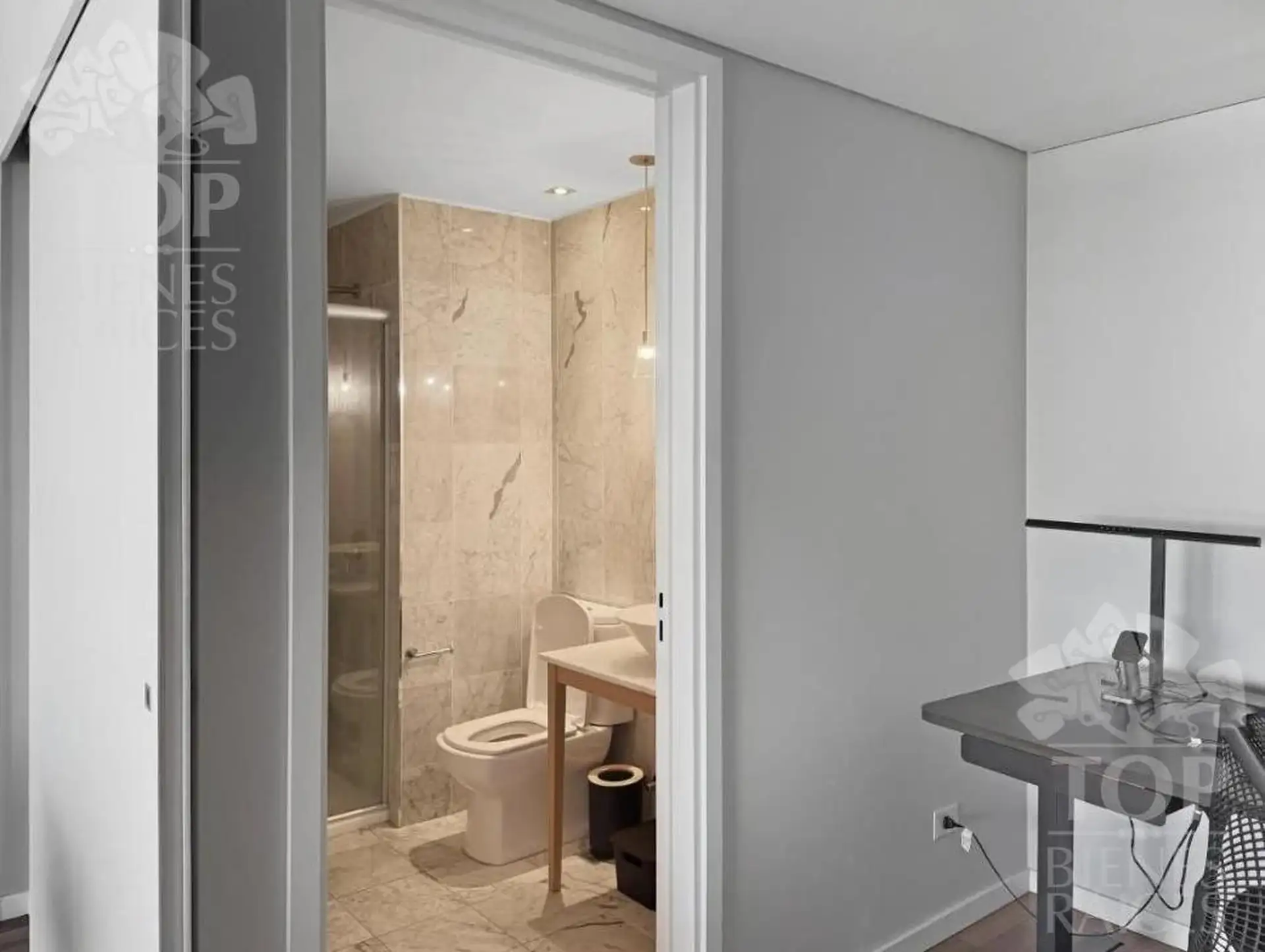 Меблированная квартира в Nordelta площадью 2,5 комнаты, в комплексе Yoo, Nordelta. В квартире гостиная-столовая с интегрированной кухней, приёмный холл с встроенным шкафом и отдельная полукомната, которую можно использовать как кабинет или второй спальню. Спальня с ванной комнатой в suite, также есть балкон с зоной гриля; предусмотрено (закрытое) парковочное место. Отопление — тёплый пол (losa radiante) во всех помещениях, кондиционеры холод/тепло — 2 шт. В комплексе: теннис/падел-корт, тренажёр