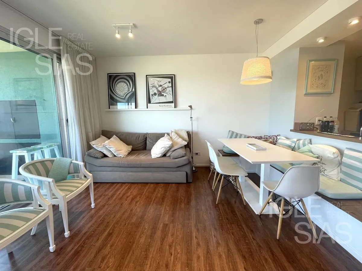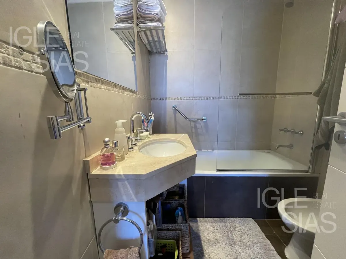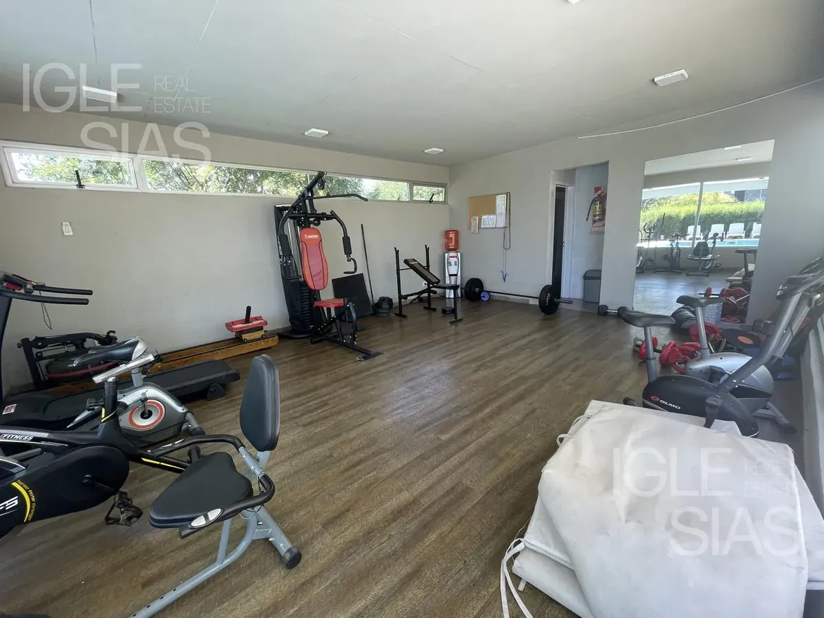 Квартира в Puerto Escondido, Nordelta, с планировкой 2 ambientes на Espigón Trece. Включает 1 спальню с гардеробной, 1 полностью оборудованную ванную и дополнительный туалет. Есть закрытый балкон с зоной гриля, кухня с местом под посудомоечную машину и отдельная зона для стирки, столовая-гостиная с встроенным мебельным решением и системой хранения, отопление тёплым полом и 2 кондиционера (холод/тепло). В здании предусмотрены лифт, круглосуточная охрана, (закреплённое) парковочное место, тренажёр
