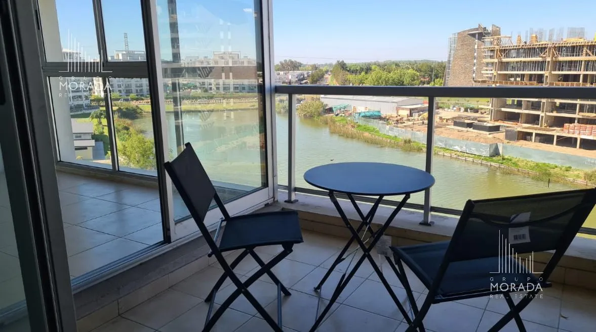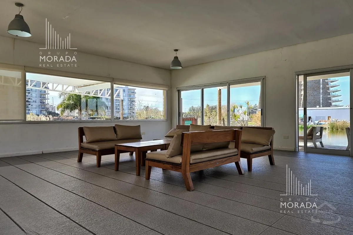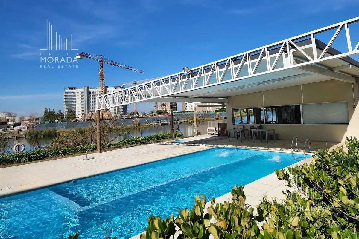 Квартира в Nordelta, Portezuelo, в здании Petrel, 5-й этаж, окна во всех помещениях с видом на Центральную лагуну. Площадь 59 m², в формате 2 ambientes: просторная гостиная-столовая с интегрированной кухней через бар для завтрака, 1 спальня с отдельным выходом на большой балкон-террасу с зоной гриля. В квартире установлены кондиционеры холод/тепло, полный санузел в хорошем состоянии. Есть большая кладовая и (закреплённое) парковочное место в подземном гараже с удобным доступом к лифту; в здании