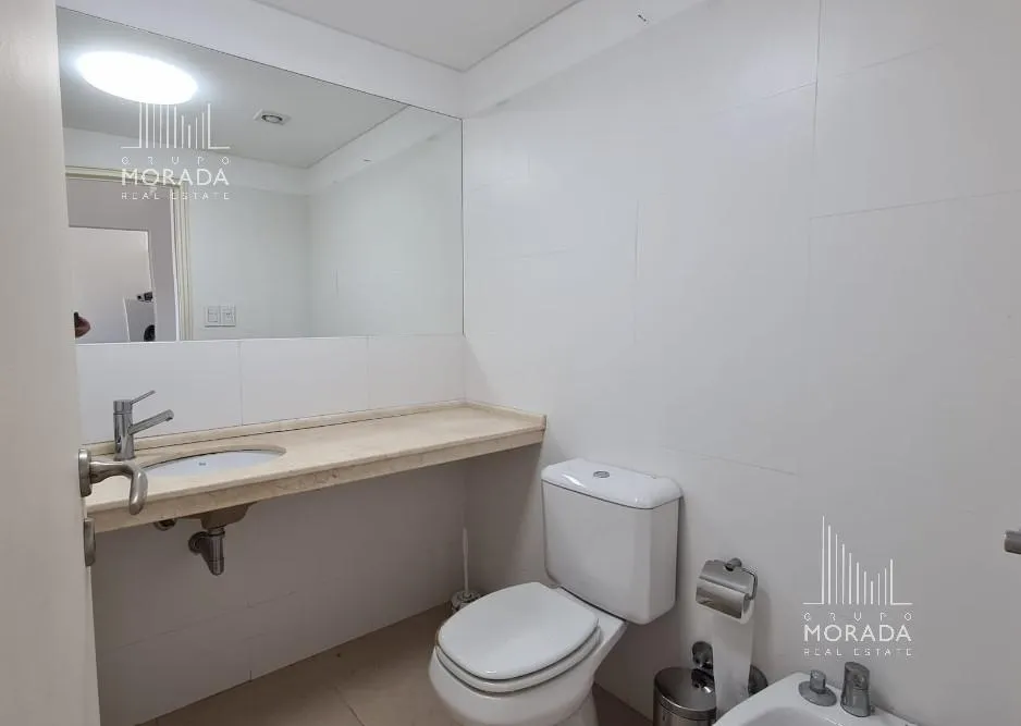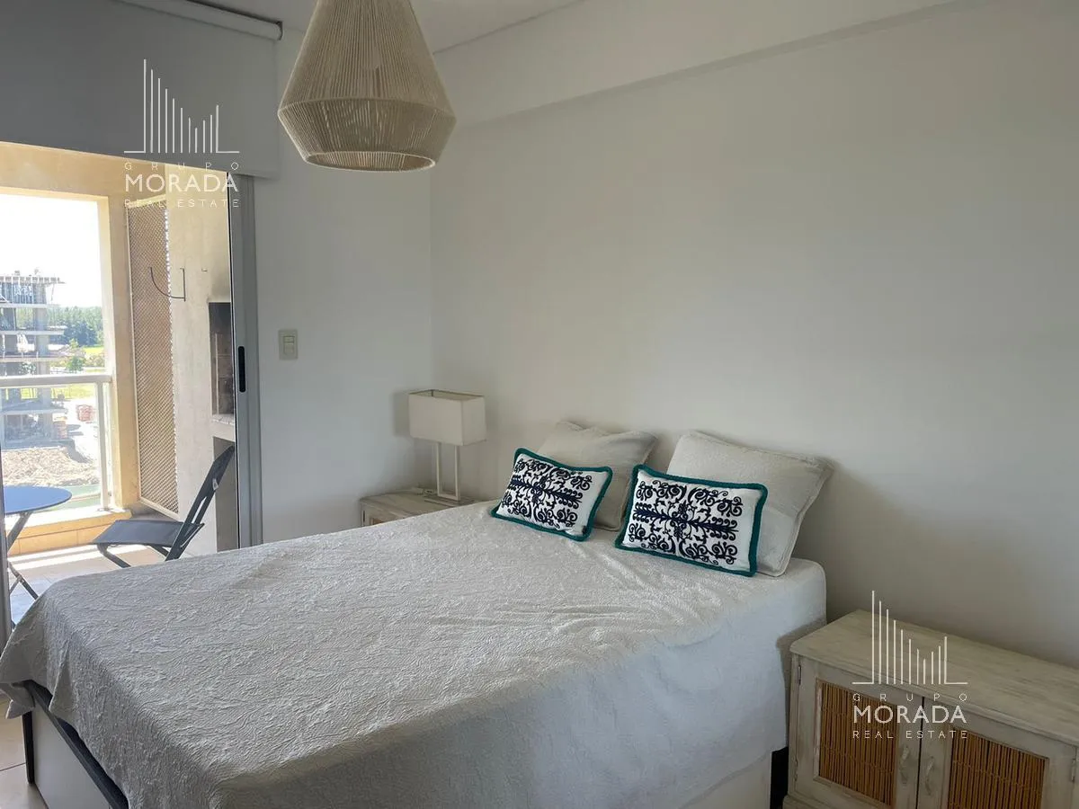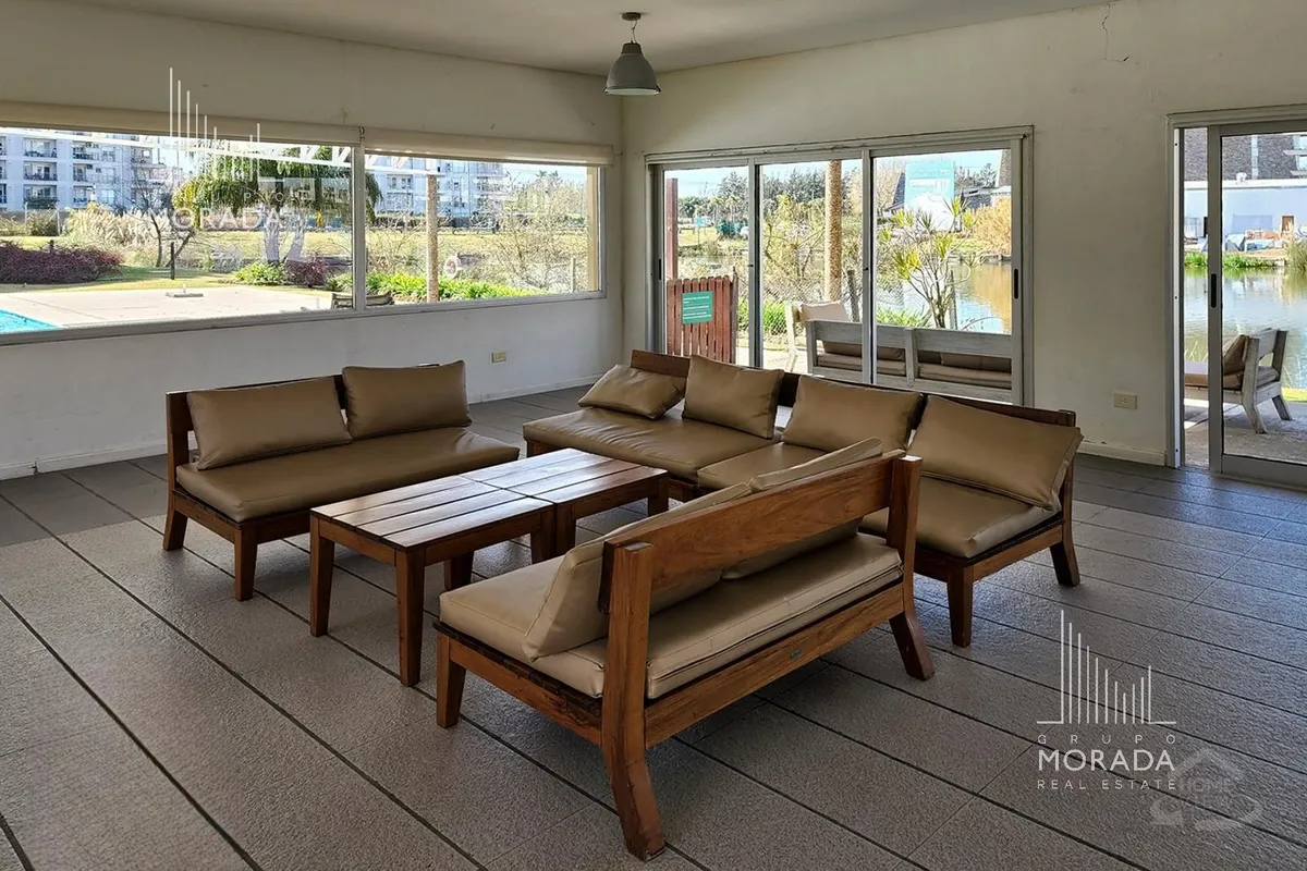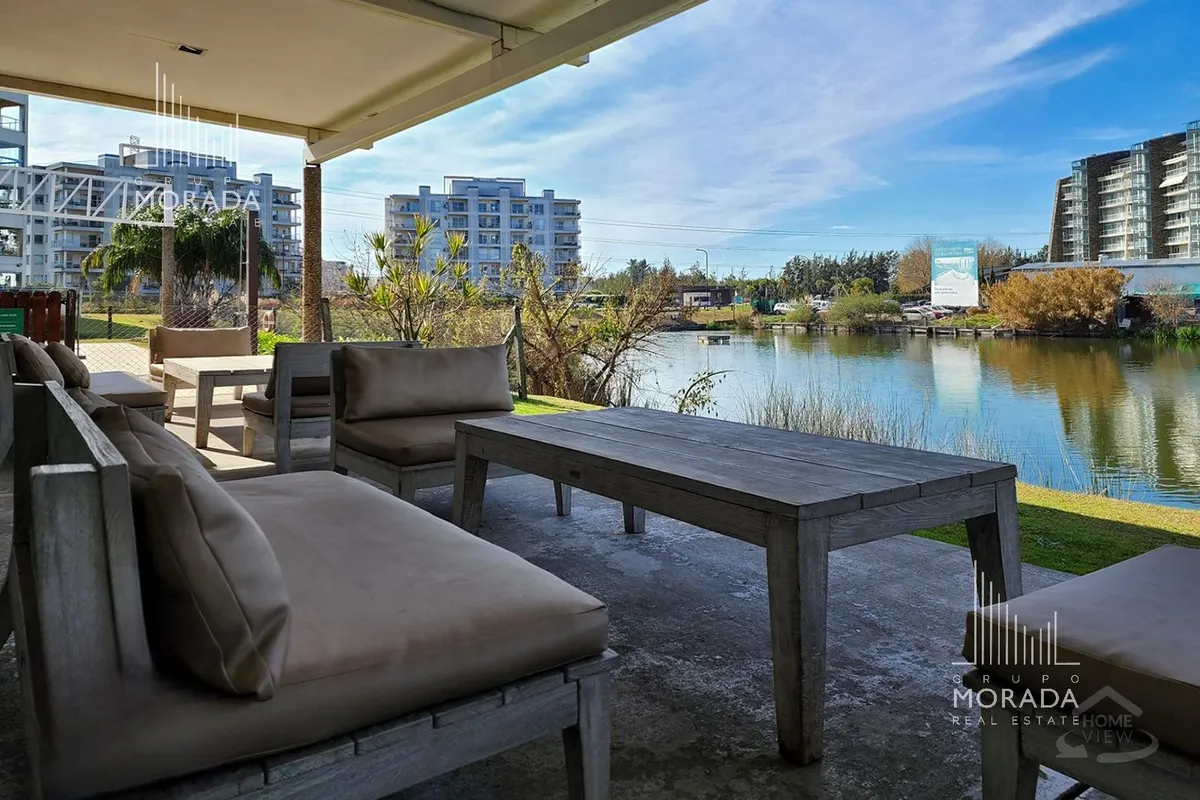 Квартира в Nordelta, Portezuelo, в здании Petrel, 5-й этаж, окна во всех помещениях с видом на Центральную лагуну. Площадь 59 m², в формате 2 ambientes: просторная гостиная-столовая с интегрированной кухней через бар для завтрака, 1 спальня с отдельным выходом на большой балкон-террасу с зоной гриля. В квартире установлены кондиционеры холод/тепло, полный санузел в хорошем состоянии. Есть большая кладовая и (закреплённое) парковочное место в подземном гараже с удобным доступом к лифту; в здании