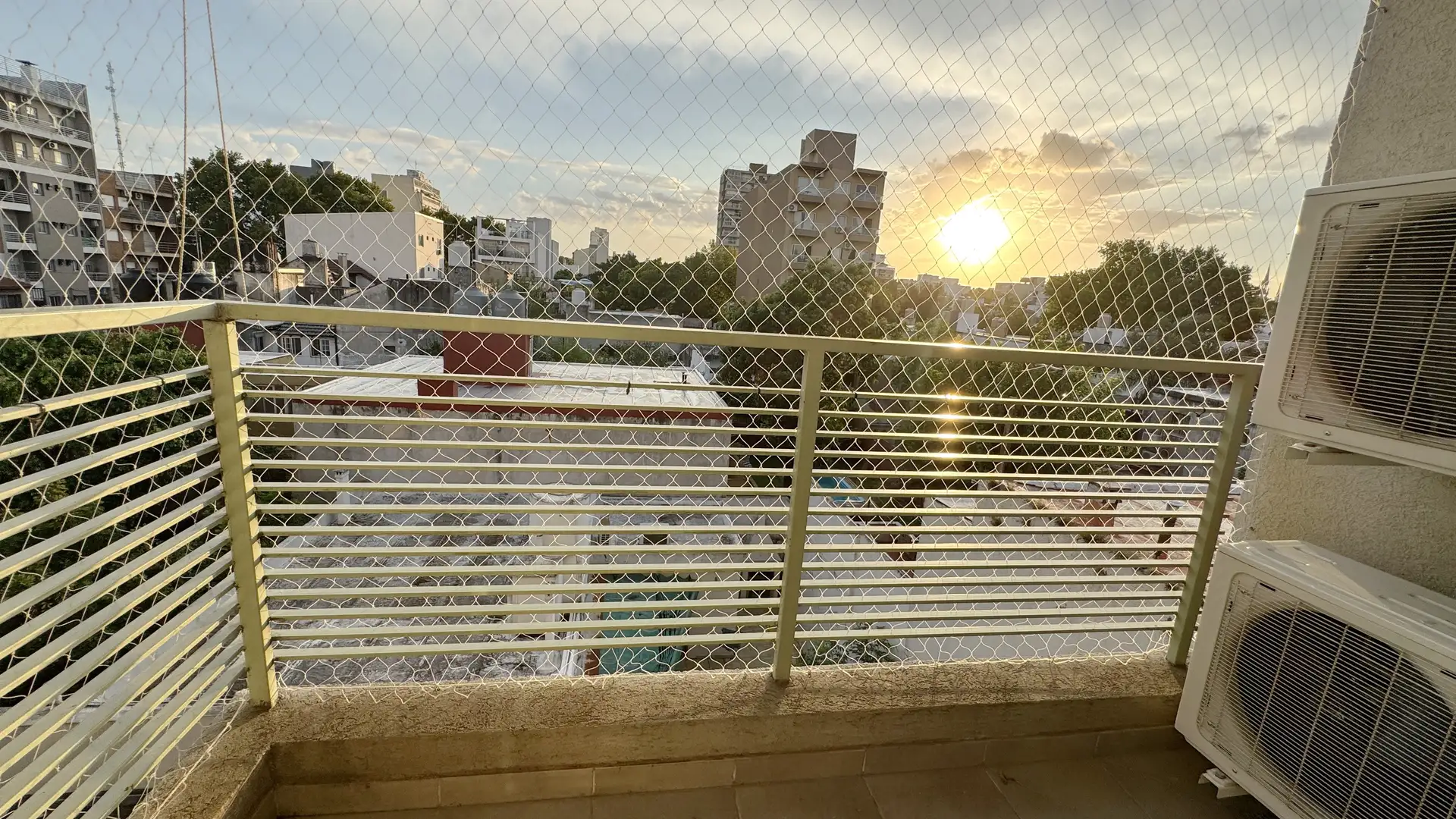 Квартира в Tres de Febrero на 2 комнаты, с окнами во двор (contrafrente) и балконом. В планировке кухня-гостиная, отдельная спальня с встроенным шкафом и полноценная ванная комната. Коммунальные платежи здания указаны как невысокие.