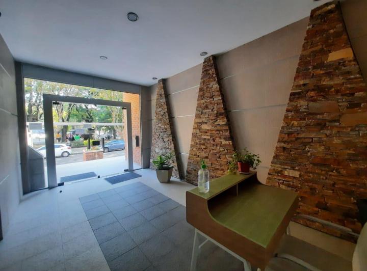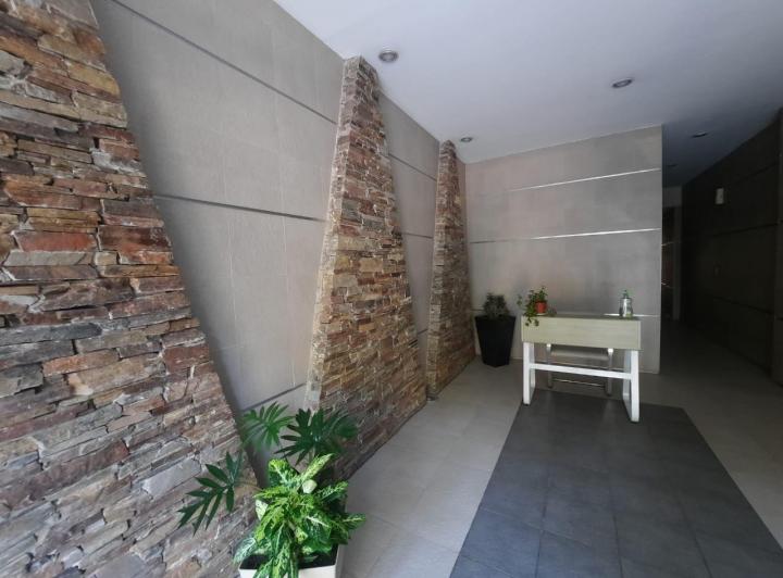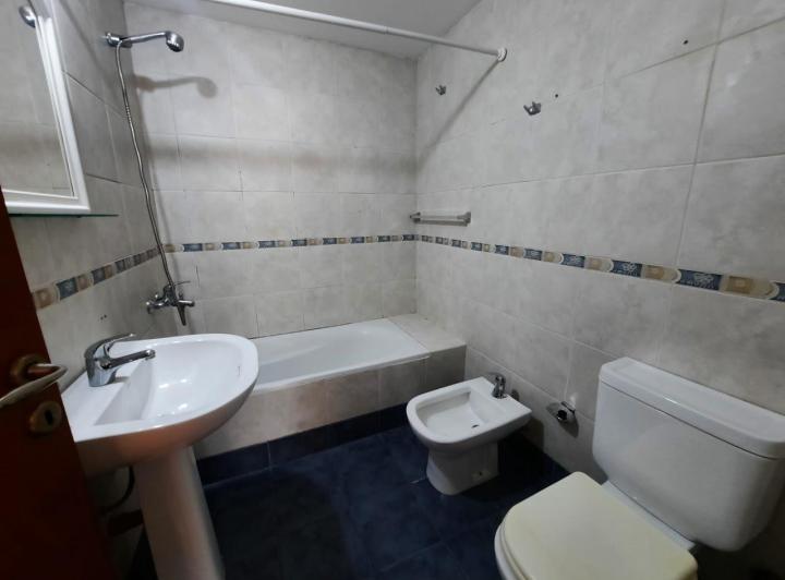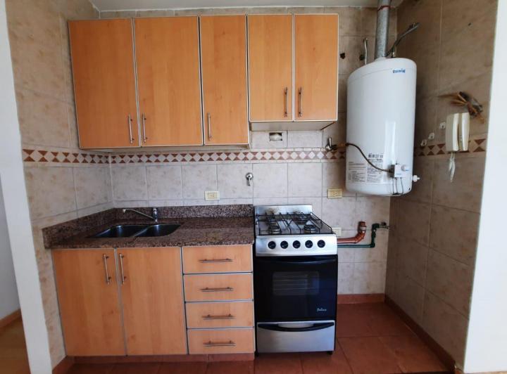 Квартира-«две комнаты» площадью 1 спальня в Santos Lugares, Tres de Febrero. Планировка включает гостиную-столовую, отдельную кухню с мебелью, плитой, тумбой под столешницей, навесным шкафом, двойной мойкой, однорычажным смесителем и бойлером на 80 литров. Ванная комната с ванной, спальня со встроенным шкафом с внутренним оснащением и системой «tiro balanceado». Балкона нет. Во втором корпусе есть общий зал для жильцов (SUM) с зоной гриля и laundry. В аренде: без животных и без детей, максимум 2