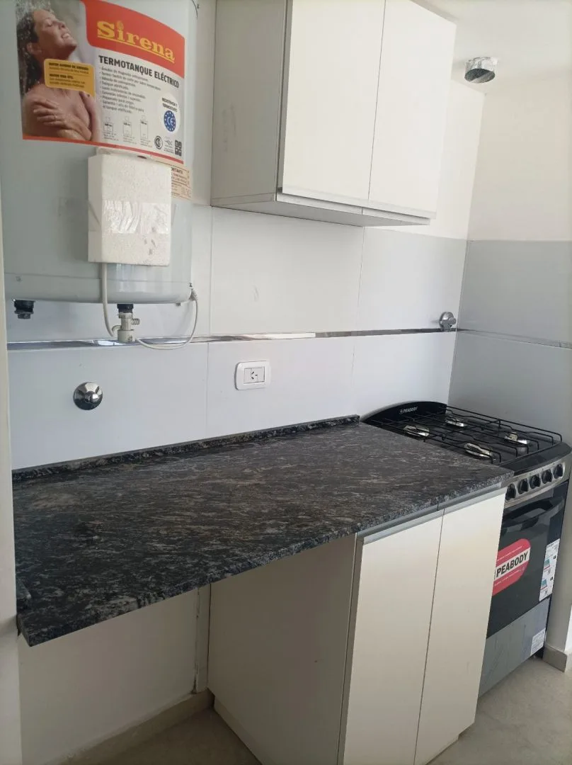 Квартира-студия в Santos Lugares, Partido de Tres de Febrero. Окна на улицу: двойное остекление и открытый вид. Кухня с барной стойкой, нижними шкафами и навесными секциями, предусмотрено место для стиральной машины; полный санузел. Дополнительно возможно (не включено в указанную цену) (незакреплённое) парковочное место на открытой площадке. В аренде не допускаются домашние животные, максимум один взрослый. Договор на 2 года с квартальным пересмотром по IPC. Доплачиваются муниципальный сбор, ком
