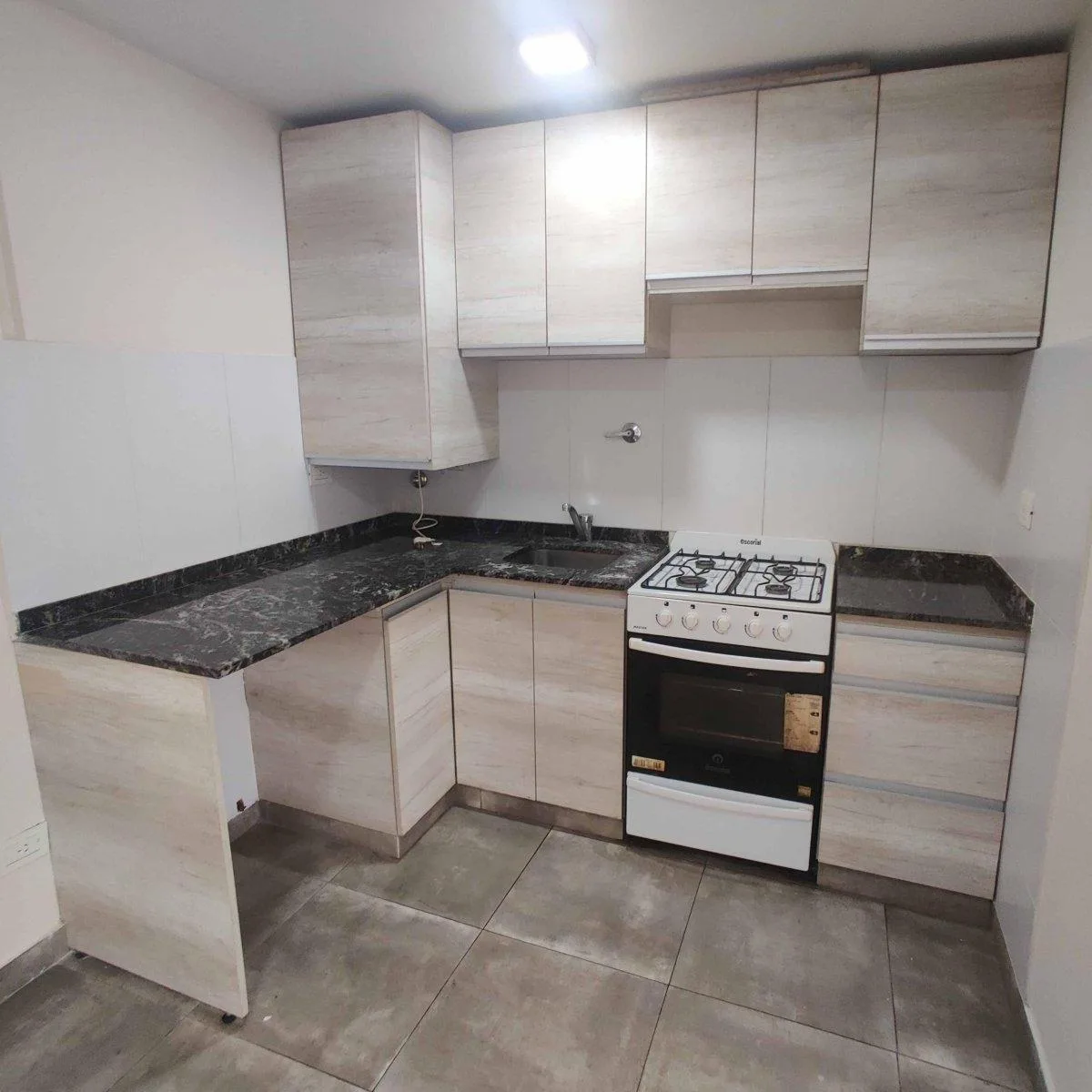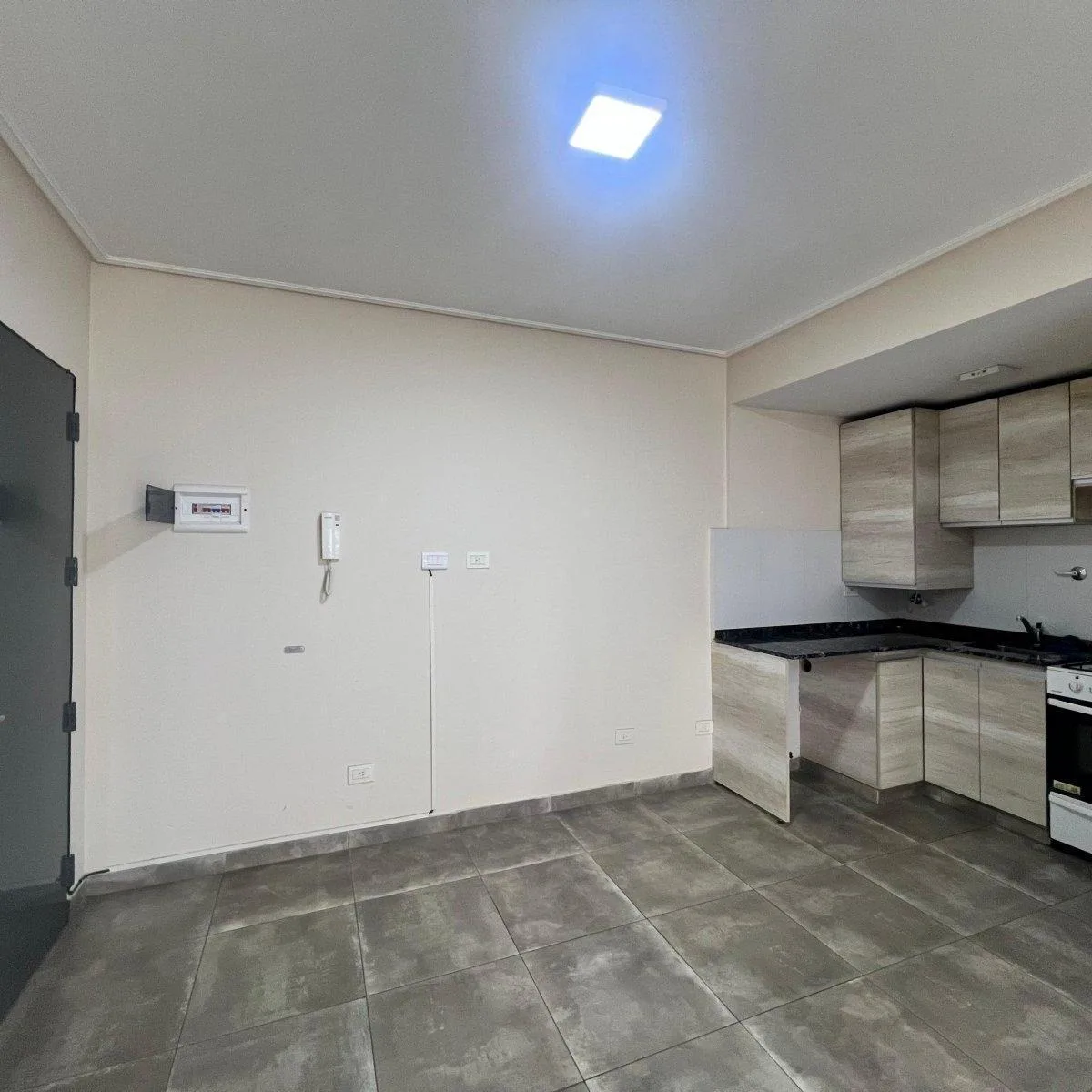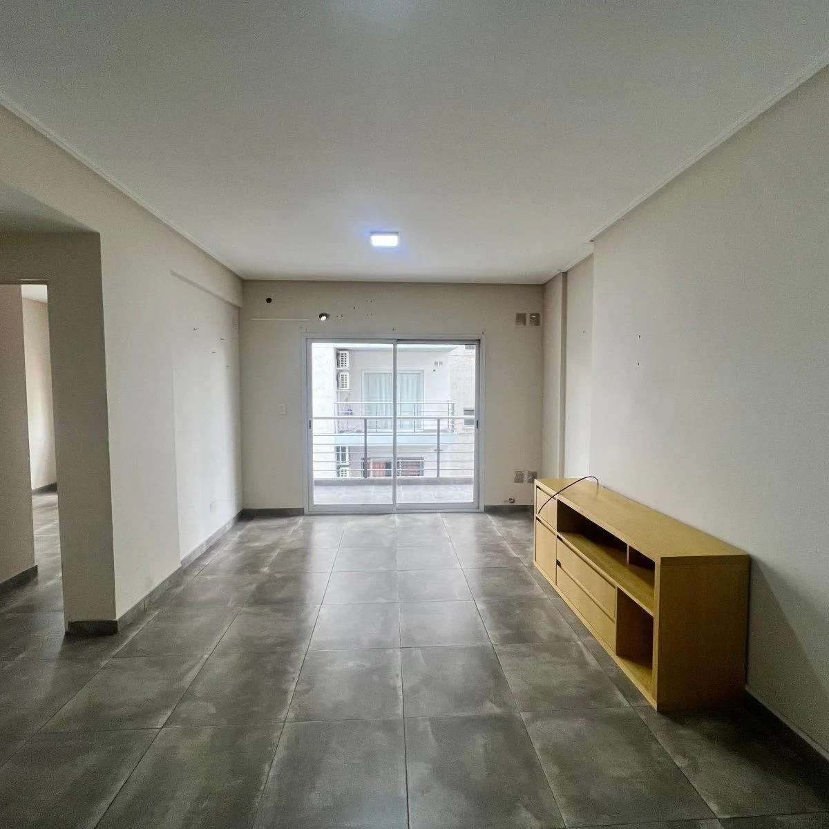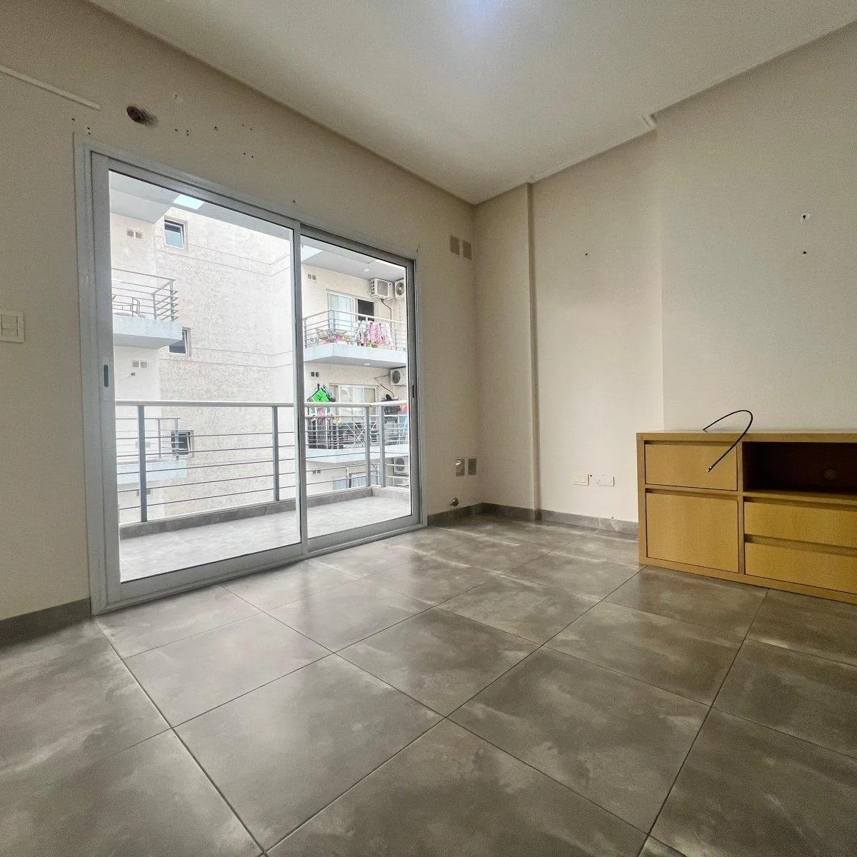 Квартира с двумя комнатами (1 спальня) площадью 2 ambientes с балконом, окна во двор. Есть полностью оборудованная кухня и установленная зона для стиральной машины, мебель на кухне. Спальня с встроенным шкафом, ванная комната с туалетным столиком и вентиляцией во внешнюю сторону. Балкон доступен через остеклённую дверь из гостиной-столовой; напольное покрытие — порцеланат. В доме предусмотрены бассейн, зона гриля и солярий. Коммунальные платежи здания указаны как примерно $60.000. Без домашних ж