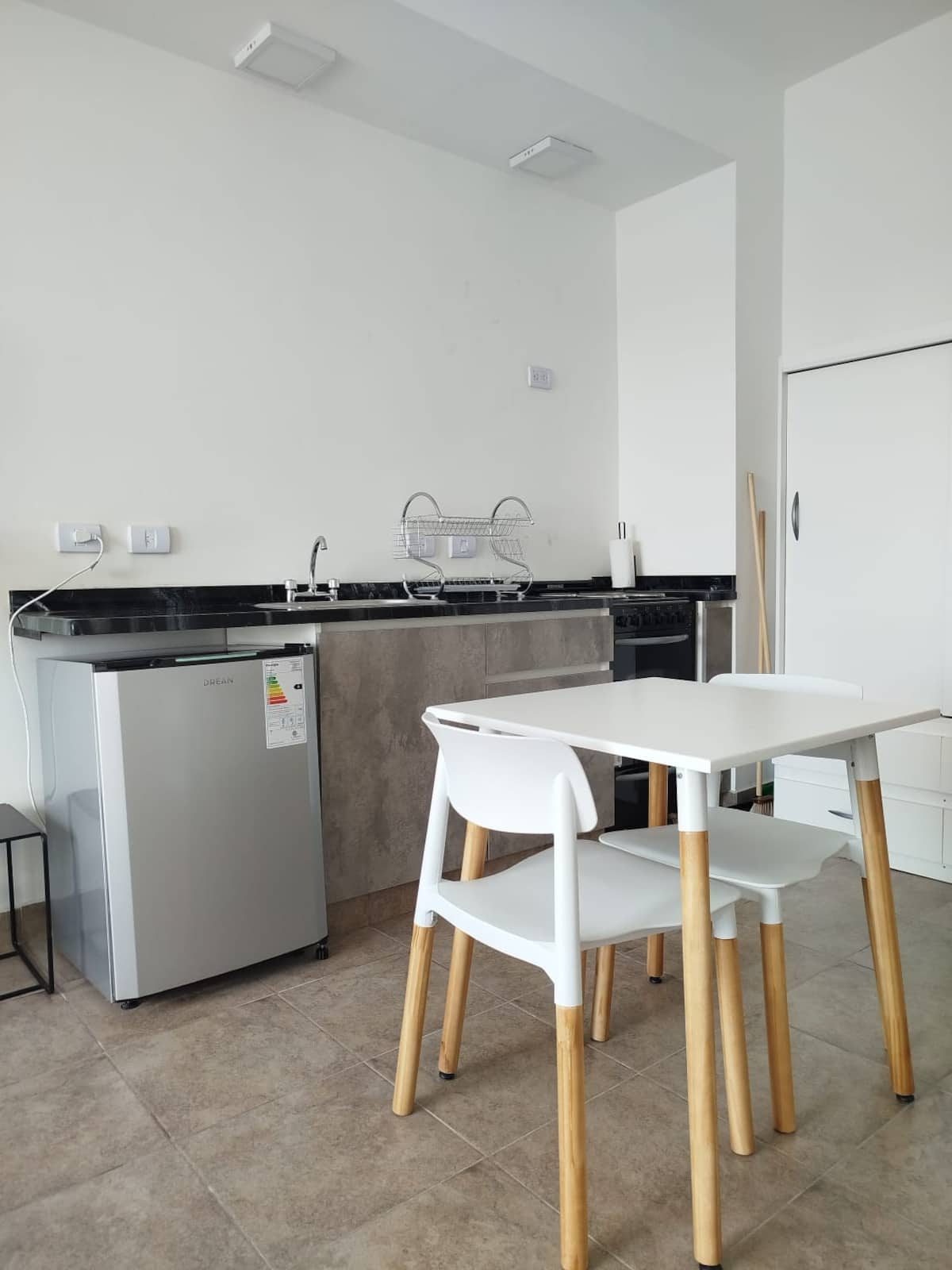 Квартира-студия с мебелью площадью не указана, с балконом в Tres de Febrero. Здание переоборудовано из бывшей фабрики чулочных изделий. В комплексе есть парковка, сад, круглосуточная охрана, зона гриля, тренажёрный зал и коворкинг. Указано, что объект расположен в 3 кварталах от Av. Rivadavia и в 5 кварталах от Acceso Oeste, Av. General Paz и станции пригородных поездов Ciudadela.