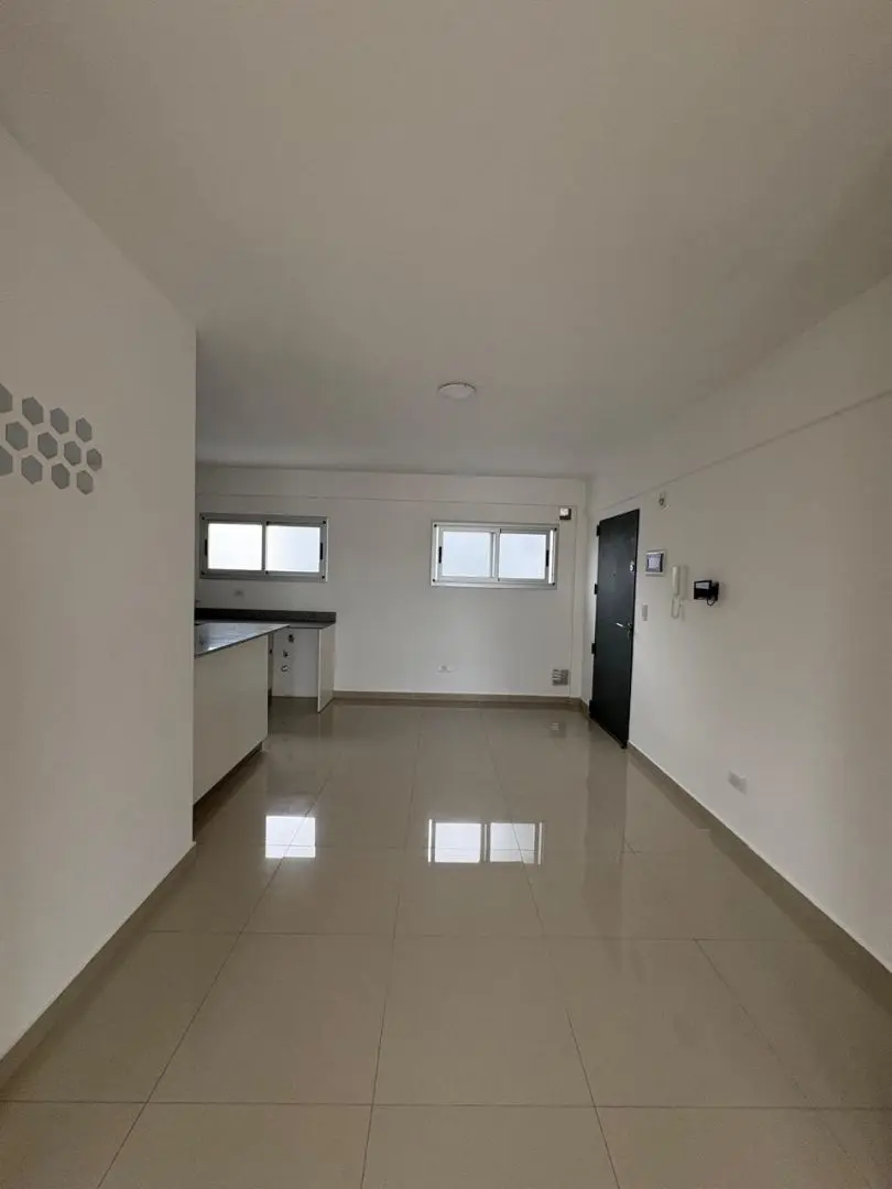 Квартира в Tres de Febrero, район Sáenz Peña, с 1 спальней. Площадь не указана; окна на балкон из спальни. В квартире есть гостиная-столовая с электрическим домофоном/портером, интегрированная кухня с барной стойкой, кухонная плита, верхние и нижние модули, подключение под стиральную машину и бойлер (calefón). Ванная с ванной, тумбой (vanitory) и зеркалом; есть отдельное освещение. В здании предусмотрена общая терраса. Аренда: $800.000 плюс коммунальные платежи здания, услуги, ABL и страхование