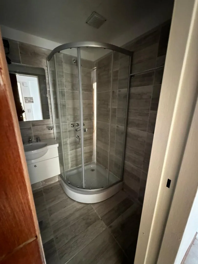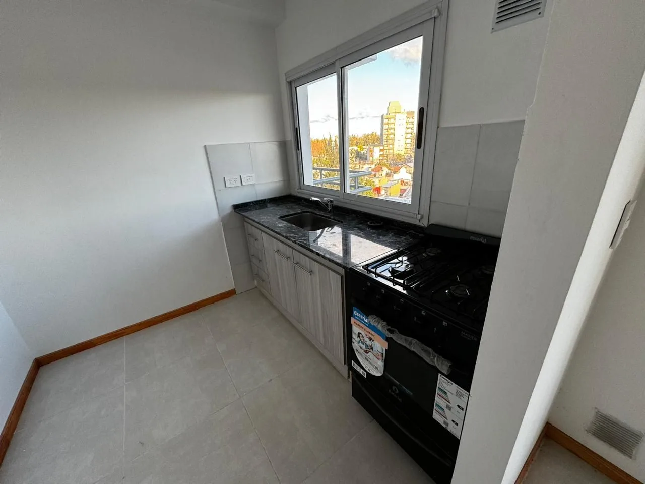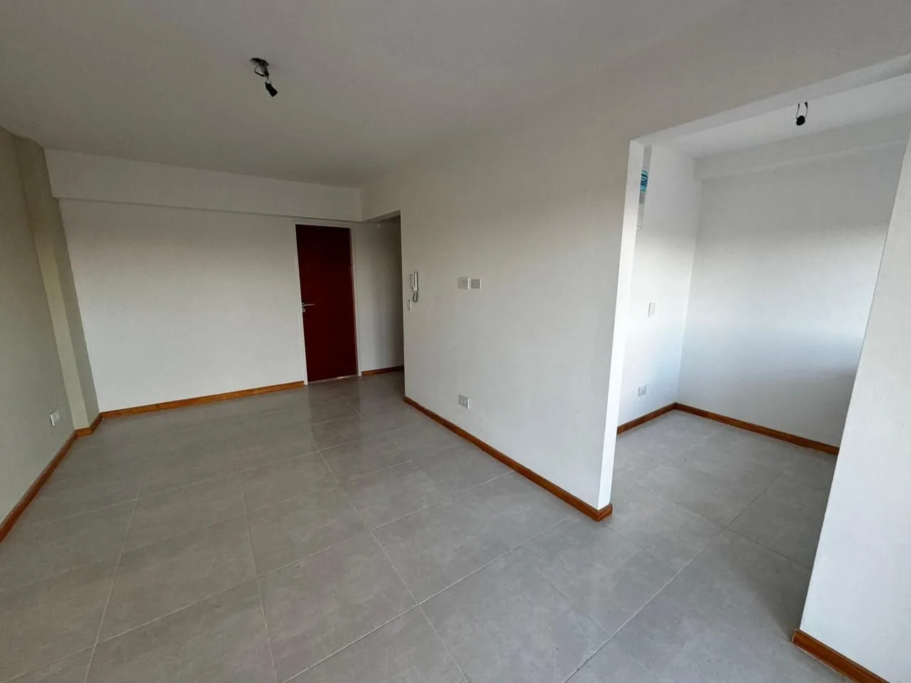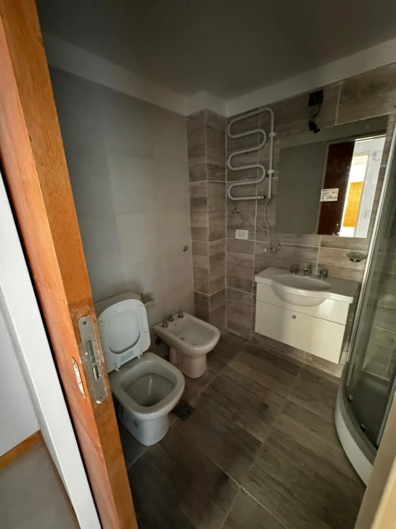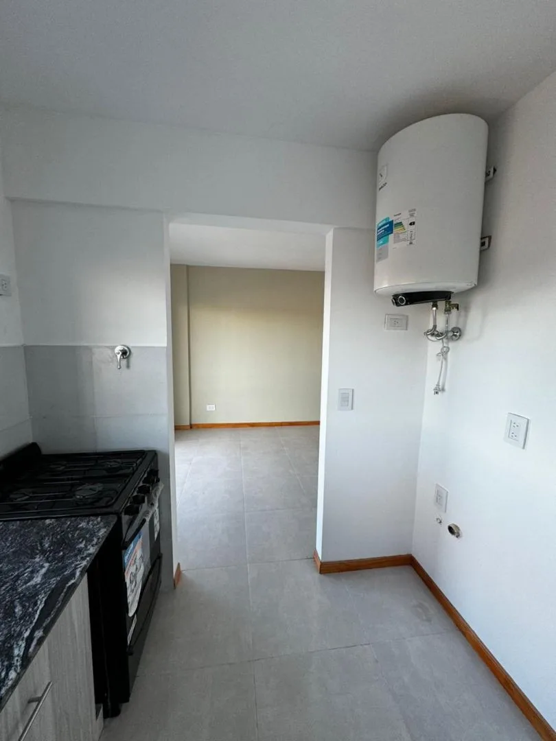 Квартира с 1 спальней, окна во двор, в Santos Lugares (Partido de Tres de Febrero). Планировка включает гостиную-столовую, кухню с плитой, мебелью верхнего и нижнего уровня, подключение для стиральной машины и электрический водонагреватель. Есть выход на балкон, санузел с тумбой (ванитори), зеркалом и душевой кабиной. В спальне встроенный шкаф с внутренним наполнением. Коммунальные платежи здания указаны ориентировочно и могут изменяться. Аренда: $630.000 + коммунальные платежи здания + ABL + ус