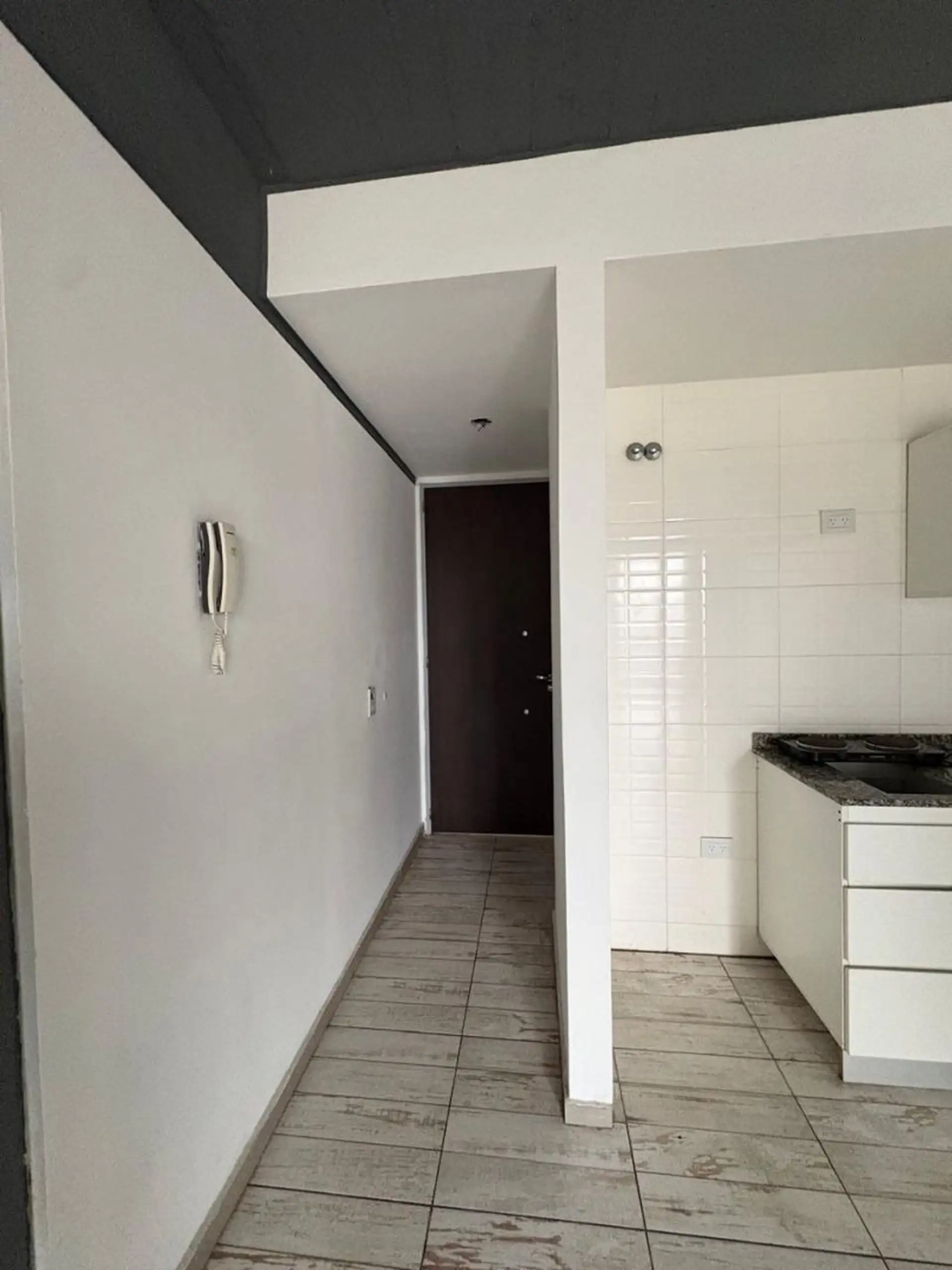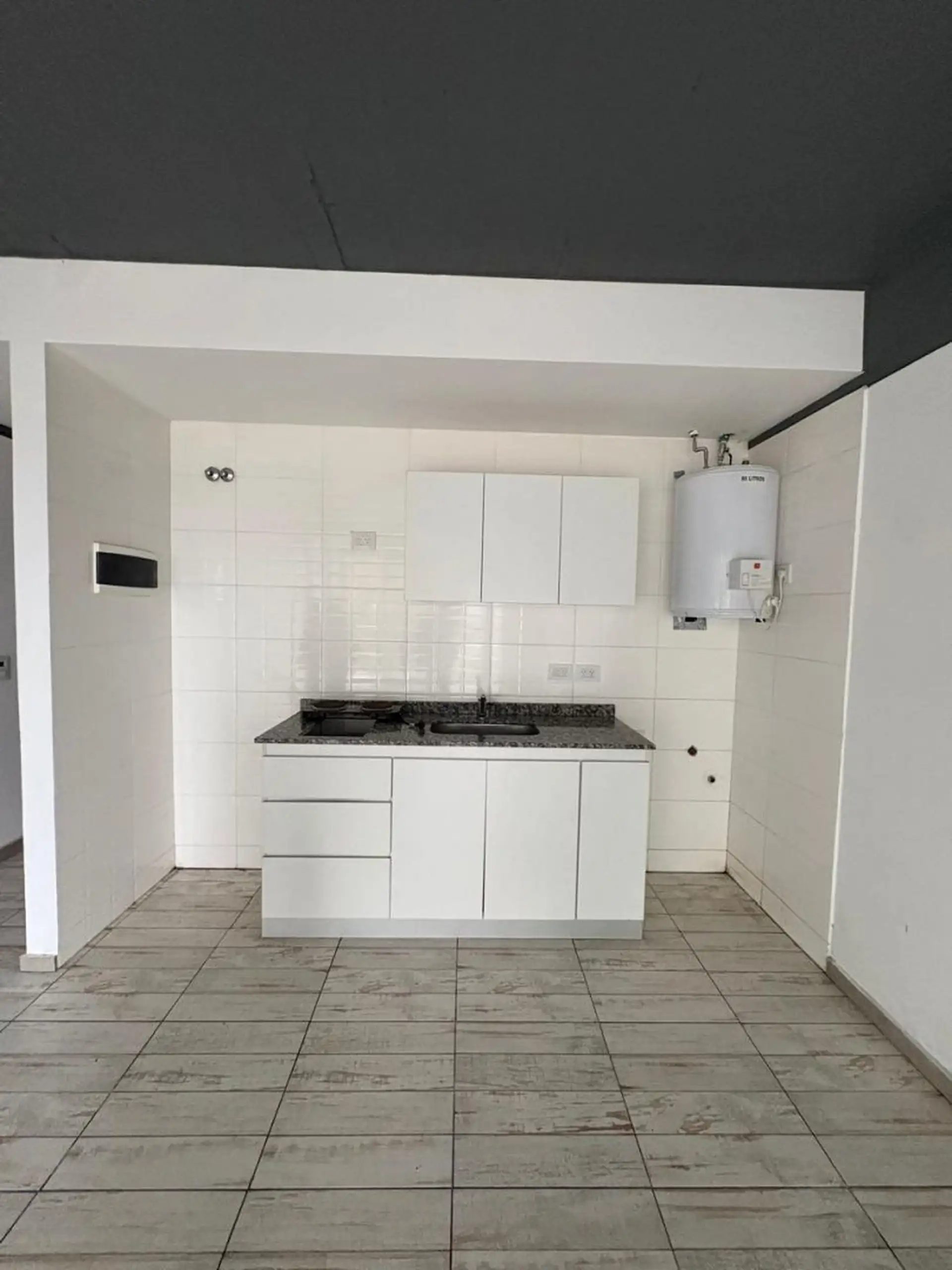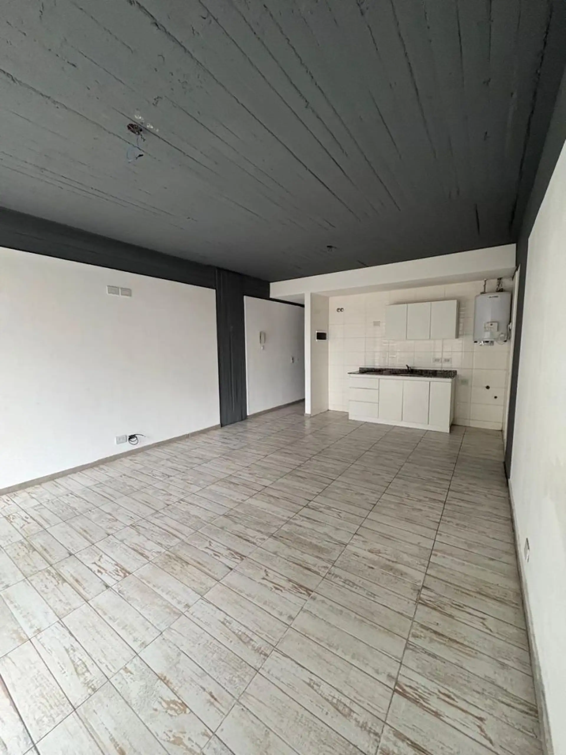 Квартира-студия в Caseros, Tres de Febrero, с балконом на улицу. В помещении есть прихожая с электрическим домофоном, гостиная-столовая с керамическим полом, ванная комната с тумбой под умывальник, зеркалом и ванной, а также кухня с электрической варочной панелью. Установлены верхние и нижние кухонные шкафы; предусмотрены подключения для стиральной машины и электрический бойлер. В здании есть общая доступная терраса. Коммунальные платежи здания указаны ориентировочно. Аренда: 430.000 ARS + услуг