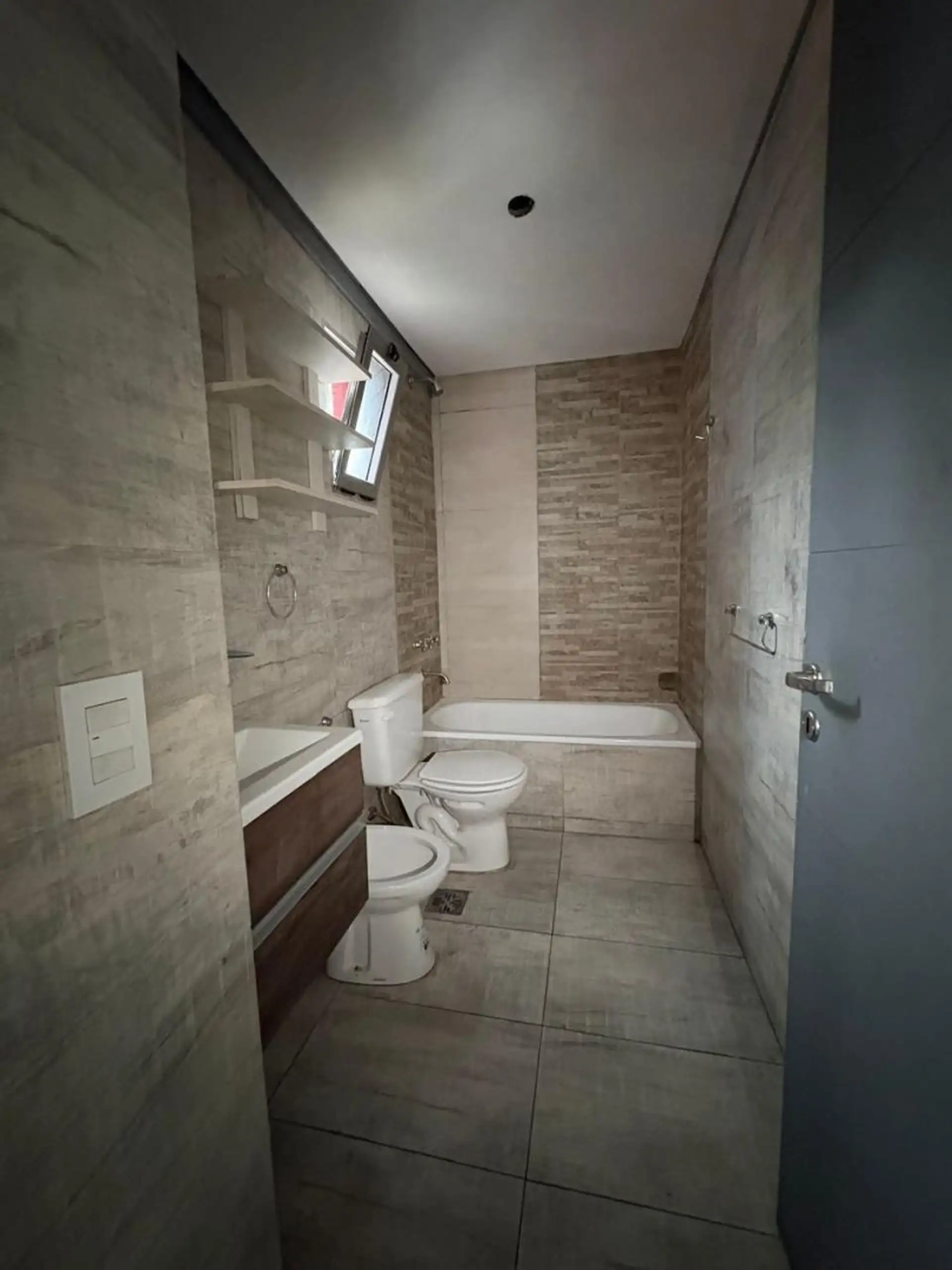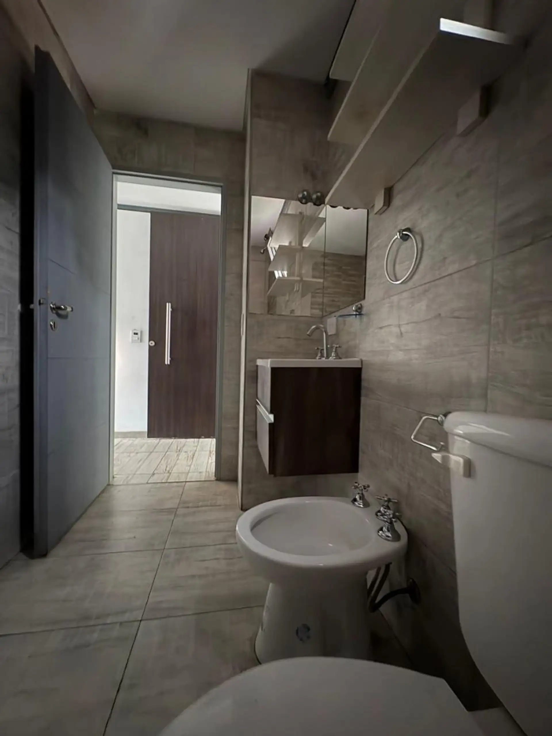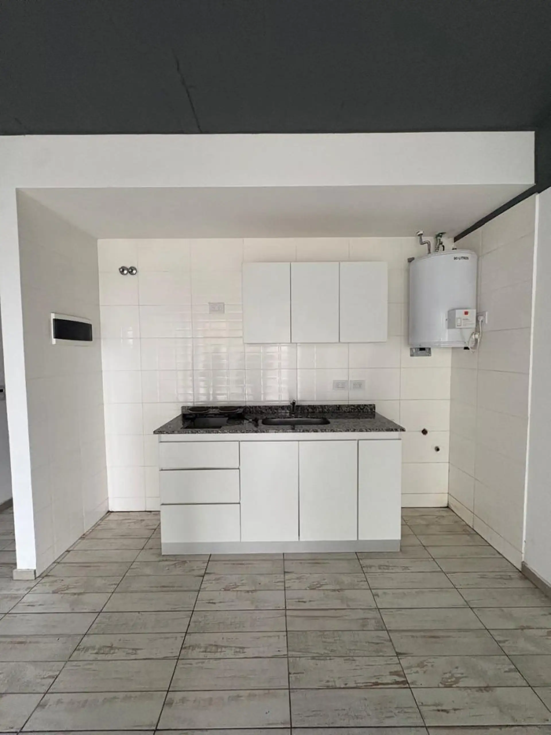Квартира-студия в Caseros, Tres de Febrero, с балконом на улицу. В помещении есть прихожая с электрическим домофоном, гостиная-столовая с керамическим полом, ванная комната с тумбой под умывальник, зеркалом и ванной, а также кухня с электрической варочной панелью. Установлены верхние и нижние кухонные шкафы; предусмотрены подключения для стиральной машины и электрический бойлер. В здании есть общая доступная терраса. Коммунальные платежи здания указаны ориентировочно. Аренда: 430.000 ARS + услуг