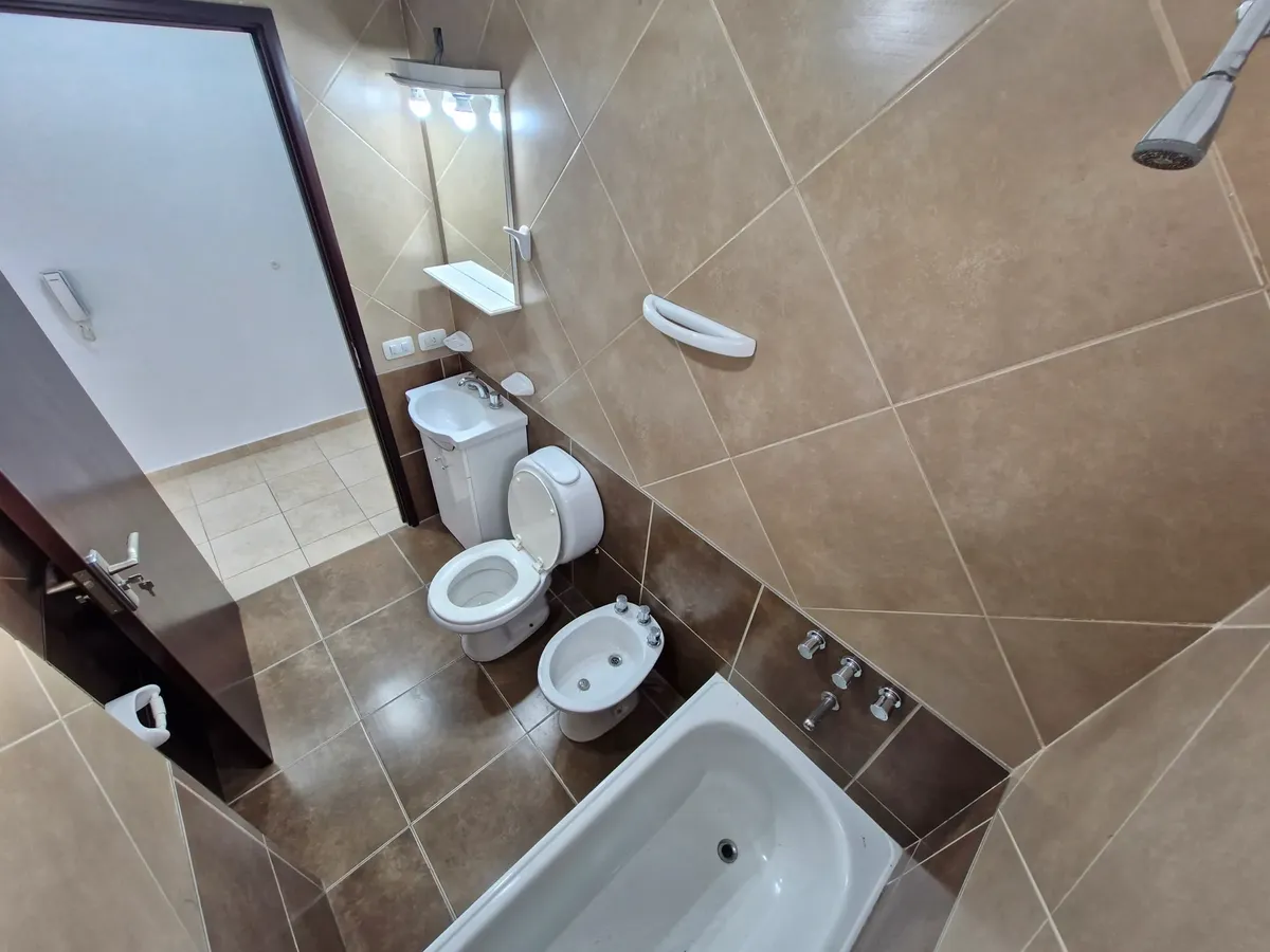 Квартира-студия площадью 31 m² в Vélez Sarsfield, 9-й этаж, окна на улицу. Крытая площадь 24 m², балкон/терраса 7 m². Балкон застеклён алюминиевыми рамами с рольставней. В студии совмещённая гостиная-кухня; газовая плита Volcán. В ванной комнате установлена ванна; смесители FV и сантехника Ferrum. Подготовлены подводы и отводы воды под кондиционер, горячая вода через центральный водонагреватель (термотанк). Коммунальные платежи здания включают AySA (вода) и MetroGas (газ) для центрального горяче