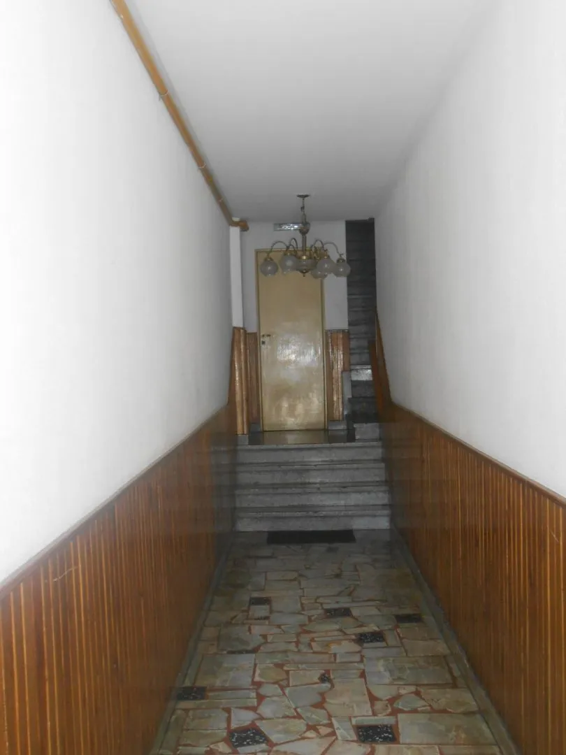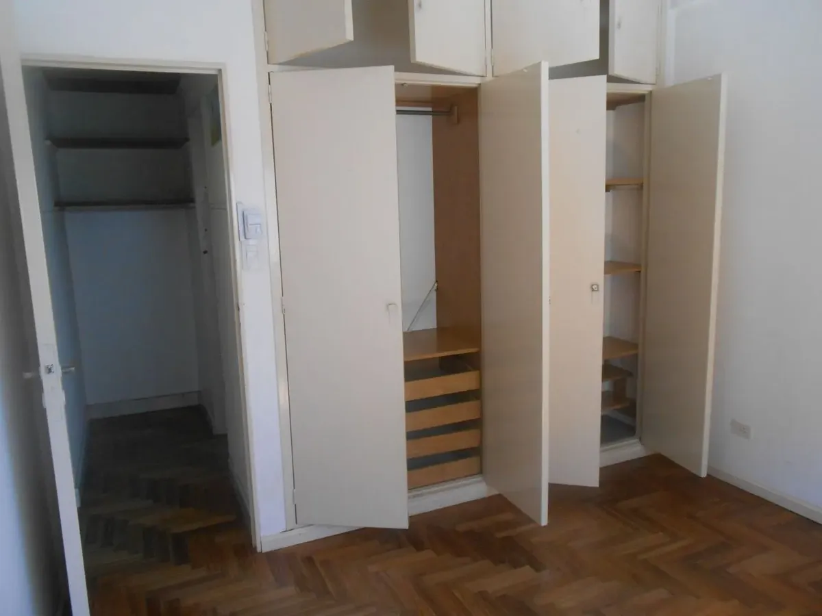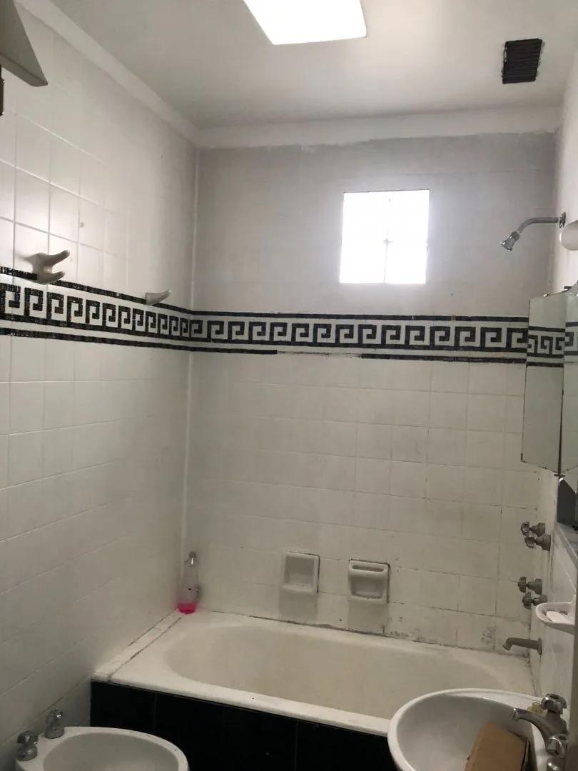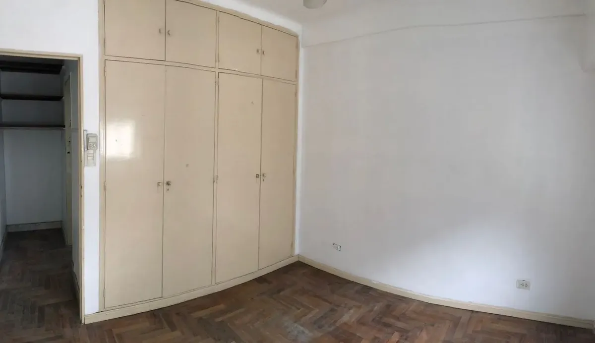 Квартира из 2 комнат на 1 спальню, внутренняя планировка, площадью не указана. Окна во внутренний двор, хорошее естественное освещение, открытая боковая перспектива. Установлен кондиционер. Отдельная кухня с зоной для стирки. Доступ по лестнице. Коммунальные платежи здания указаны как невысокие.