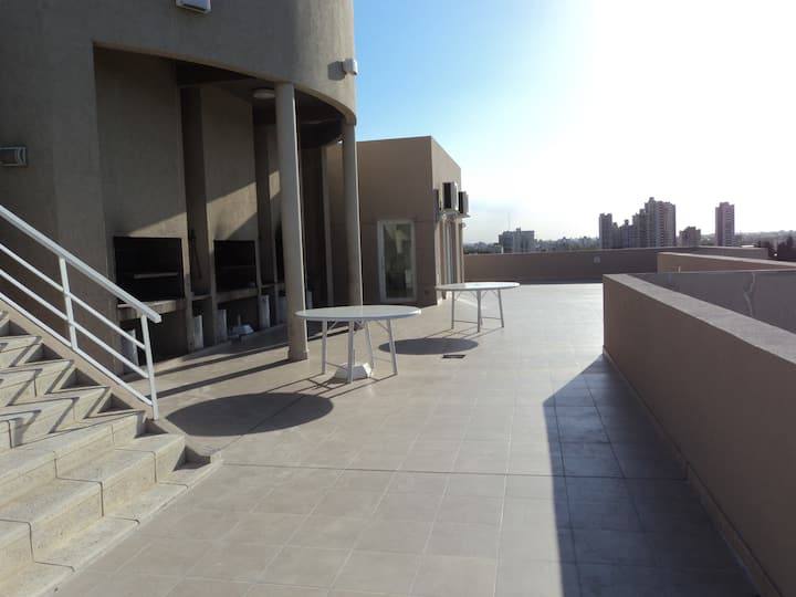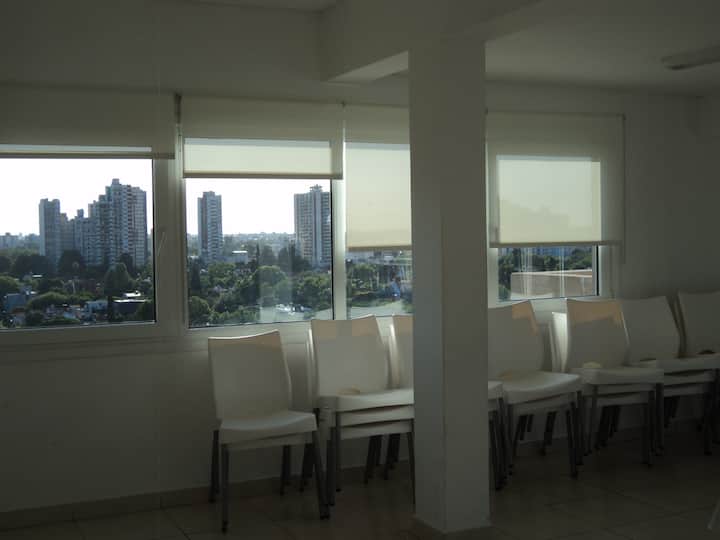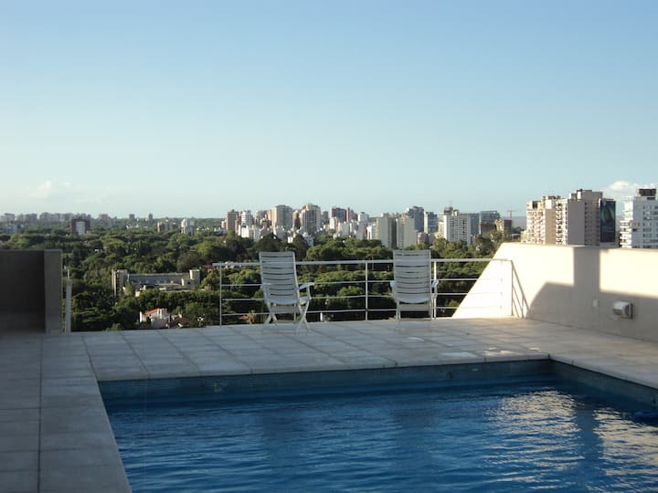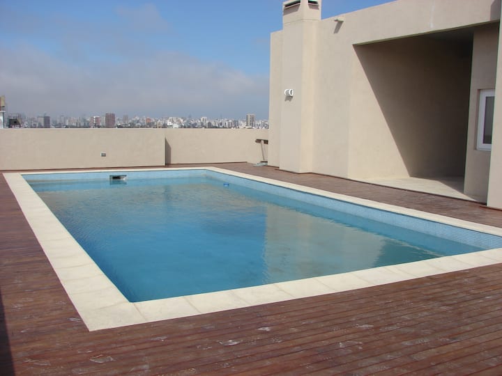 Квартира с 1 спальней в здании с круглосуточной охраной. Есть бассейн с видом на реку, зона гриля, солярий, фитнес-зал, сауна и тренажёрный зал. На 14-м этаже расположен зал для тренировок с панорамными видами на жилой район. Приведены доступы к бассейну с солярием и видом на реку, к зонам гриля и «quincho», а также к сауне и общей комнате для мероприятий.
