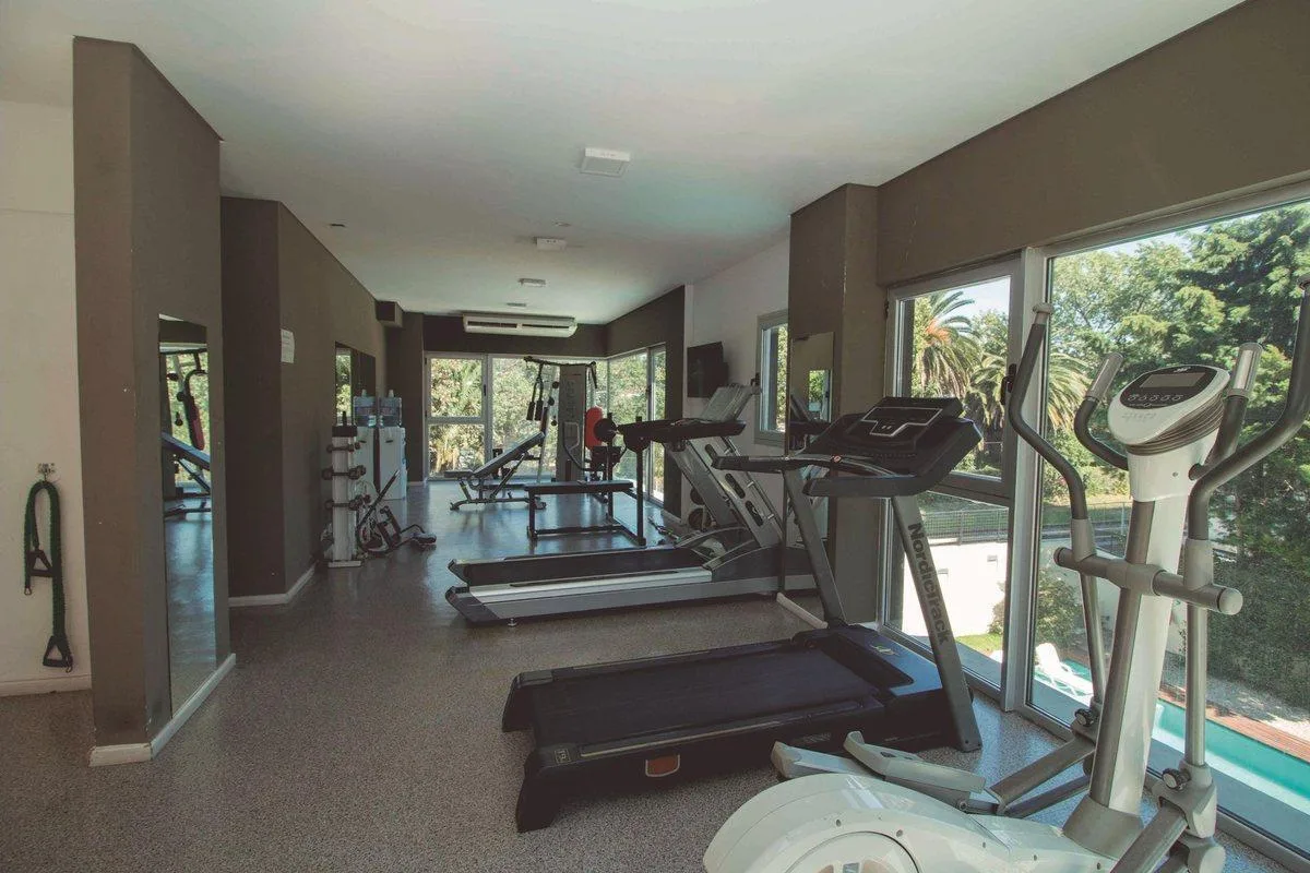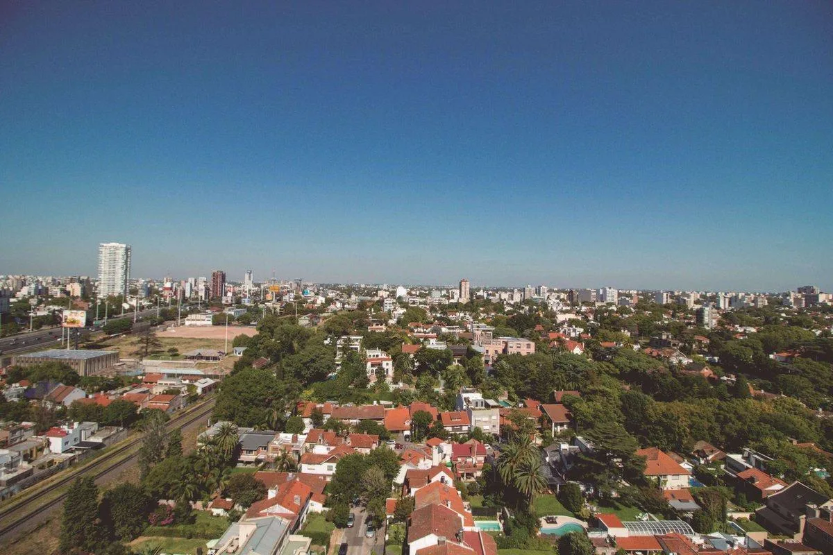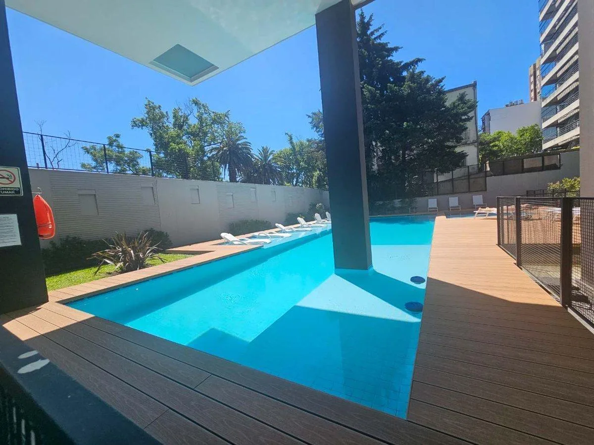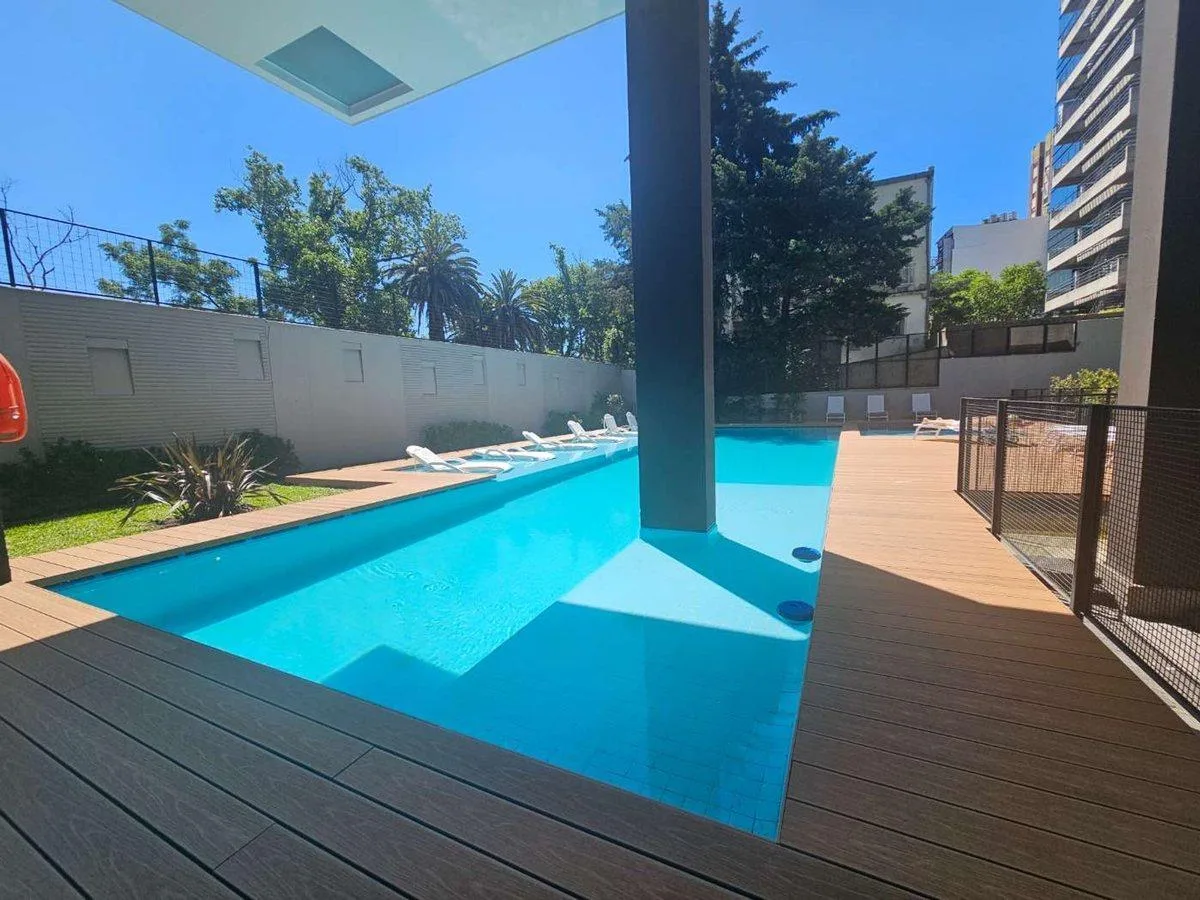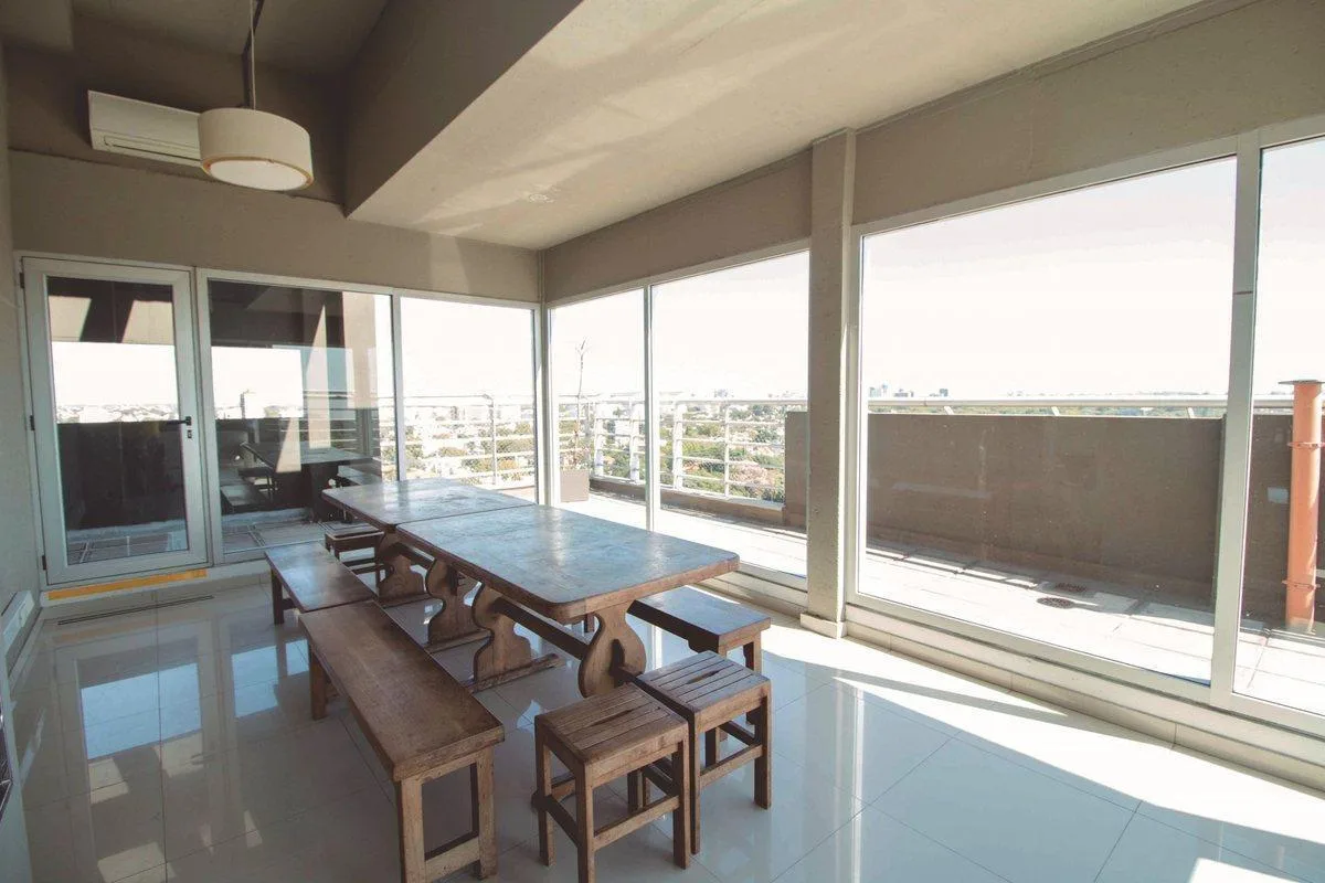 Квартира на 64 m² с планировкой 2 ambientes в Vicente López, с окнами на жилую зону и зелёные пространства. В квартире есть отдельная спальная зона с 1 ванной комнатой, душевая с перегородкой, гостевой туалет и совмещённая гостиная-обеденная зона с выходом на балкон-террасу в форме буквы L. Кухня интегрирована; установлены холодильные приборы не указаны, указаны электрическая варочная панель и электрическая духовка, есть подключение для стиральной машины и встроенная прачечная. Отопление и охлаж