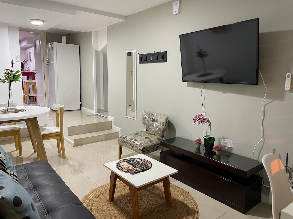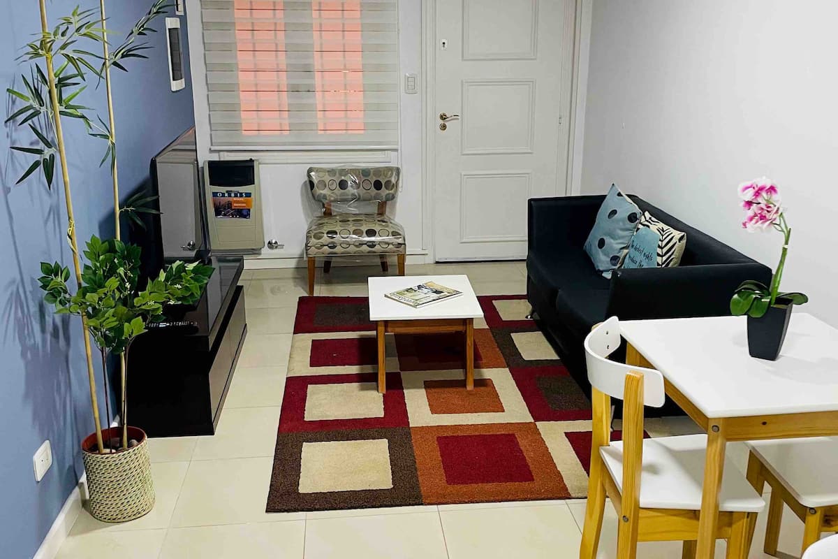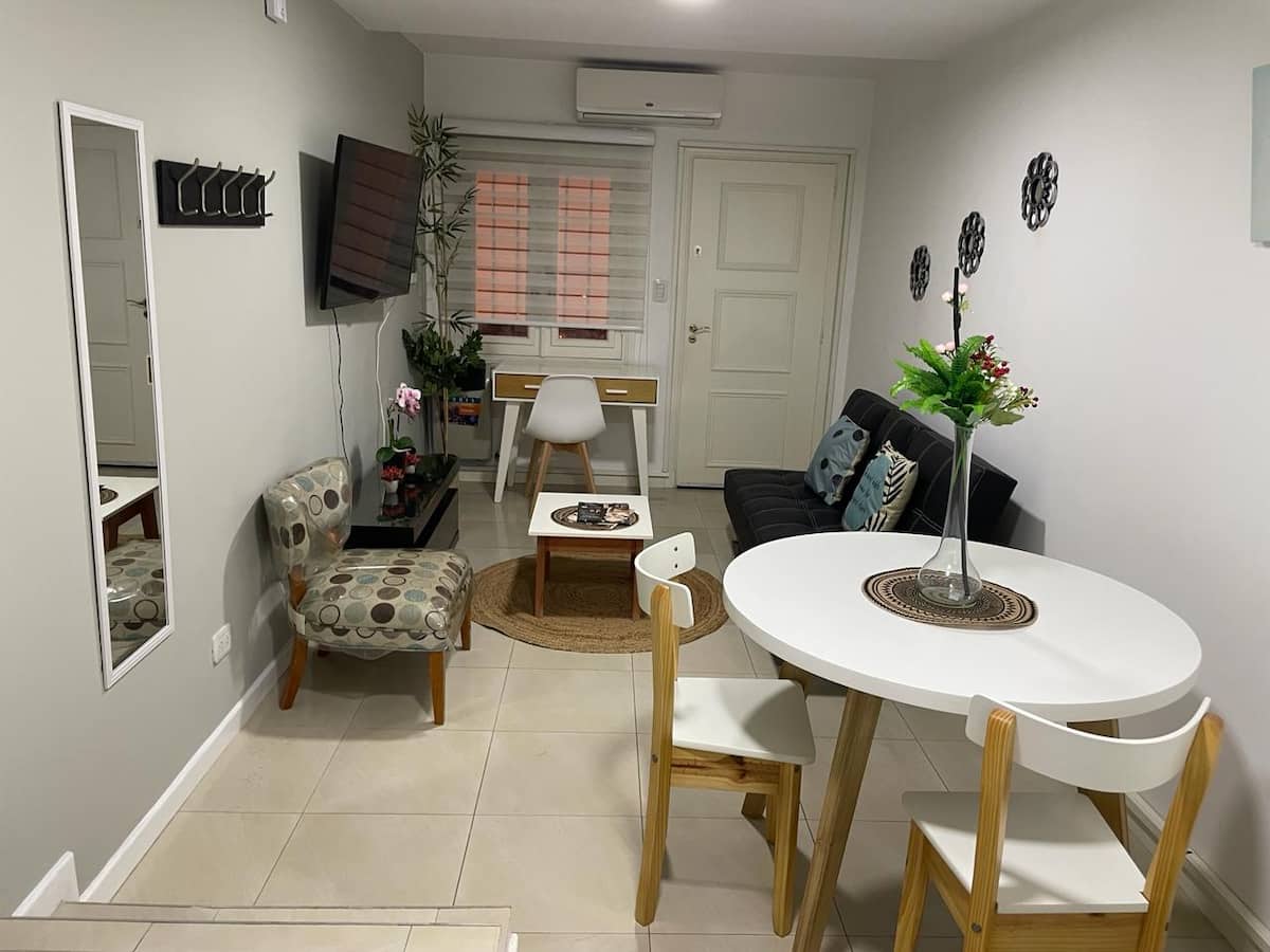 Арендная квартира в Victoria для 2 человек. Расположена рядом с аптеками, супермаркетами, ресторанами и кафе, а также с зонами с магазинами самообслуживания и спортом. В радиусе находятся тренажёрный зал и теннисные площадки, а также клубы Caya. Указано, что до Puerto Frutos 10 минут и рядом проходит La Plata River.
