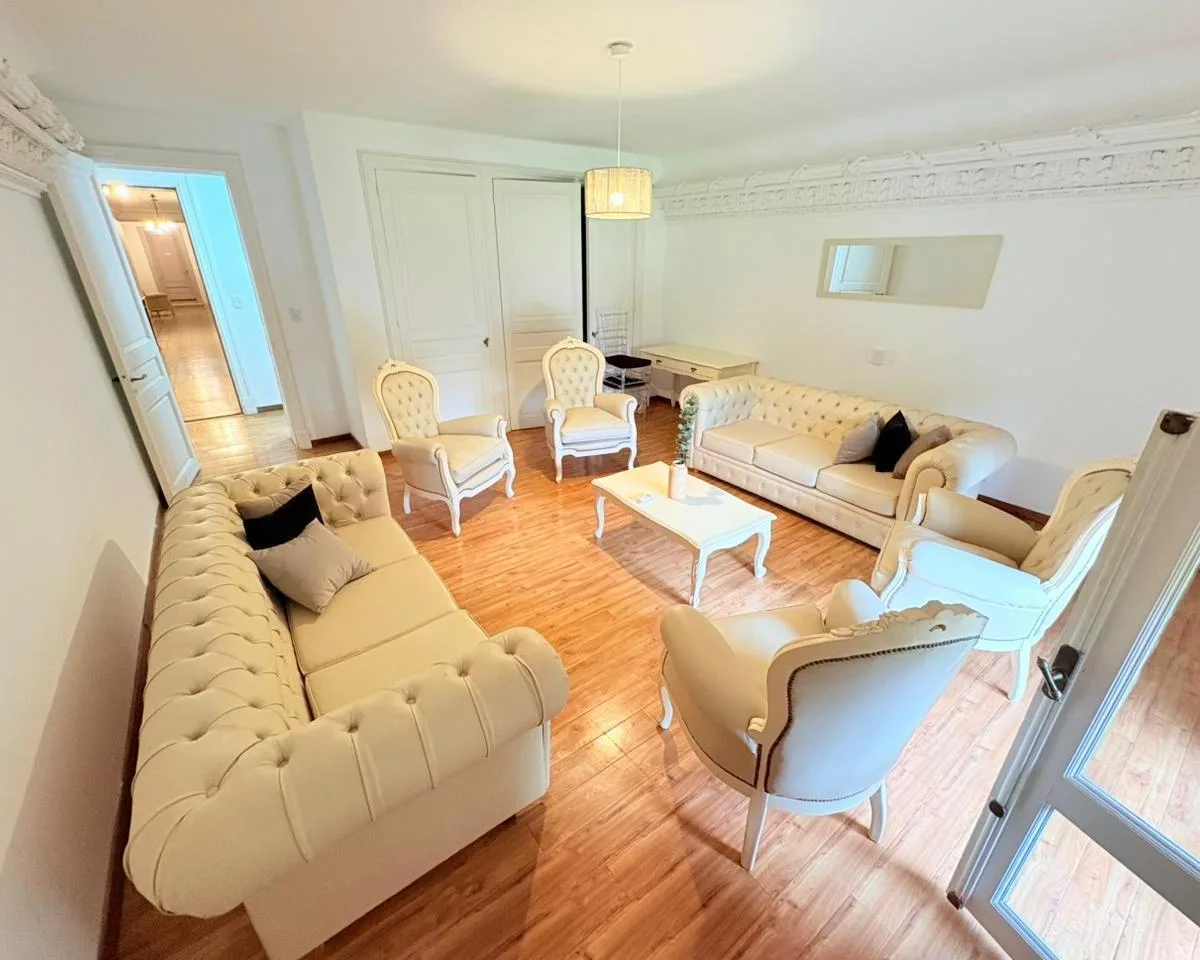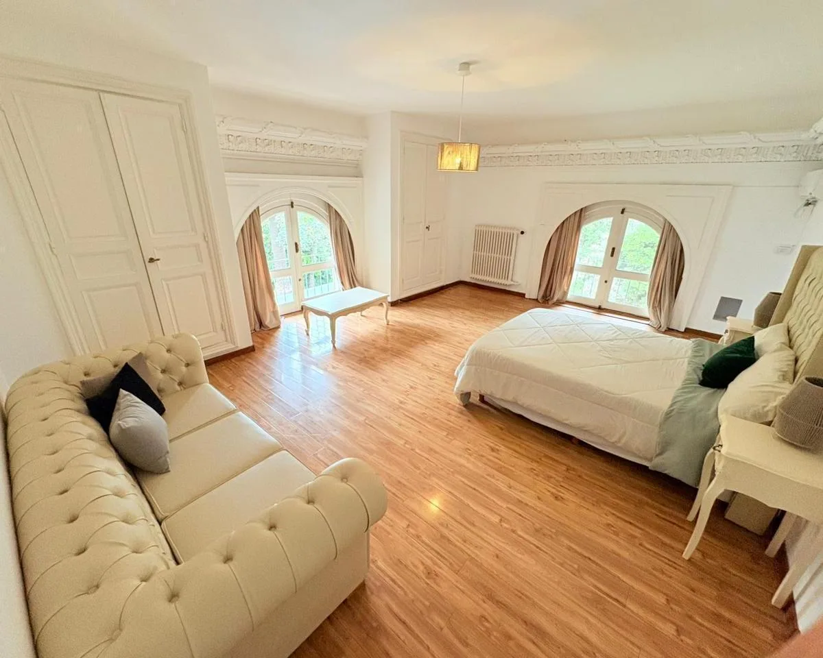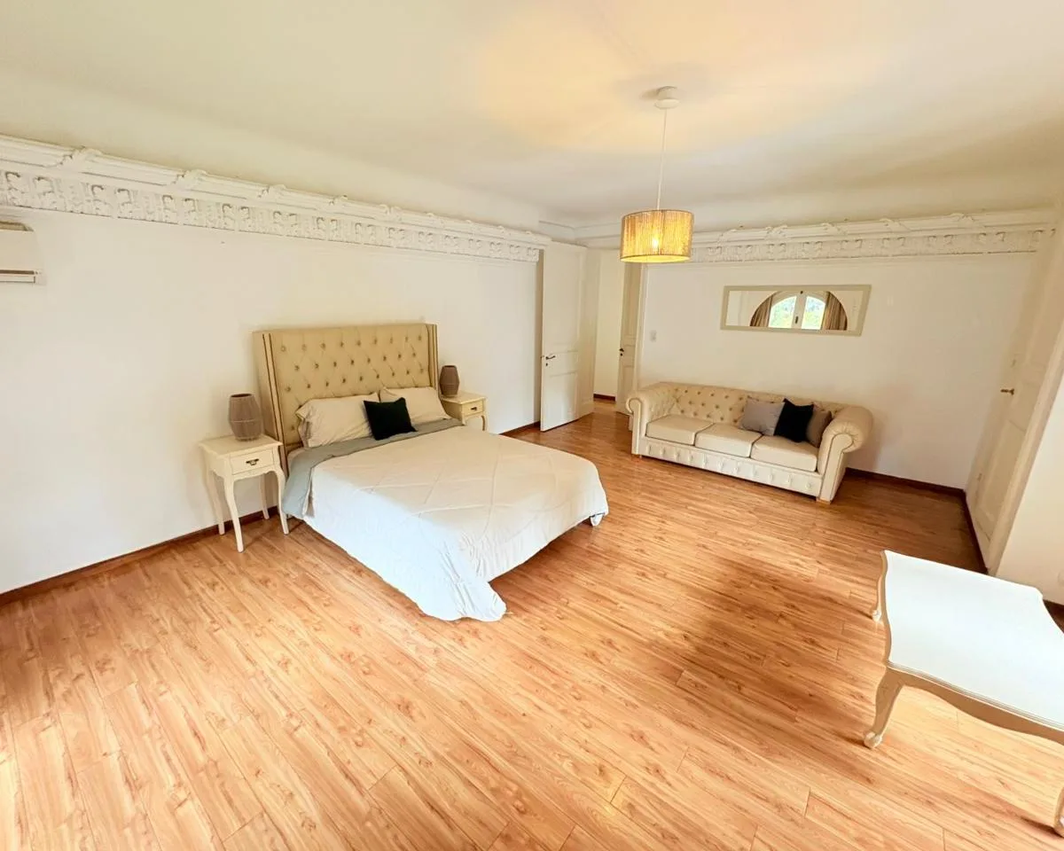 Квартира в аренду в Punta Chica, San Fernando, на 1-м этаже Palacio Sans Souci. Спальня с деревянными полами, высокими потолками с лепниной и арочными окнами с видом на зелёную территорию и бассейн дворца. В планировке 1 полностью оборудованная ванная с отделкой мрамором и естественной вентиляцией, а также туалет в классическом стиле. Отопление центральное, установлены сплит-кондиционеры. Предусмотрены открытое (не крытое) парковочное место на территории дворца и охрана 24 часа. Коммунальные пла