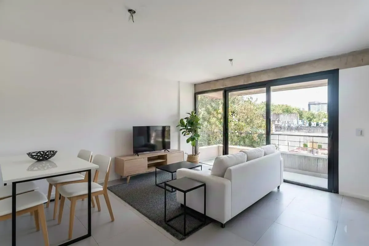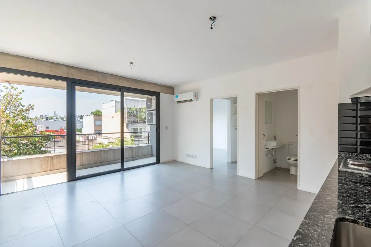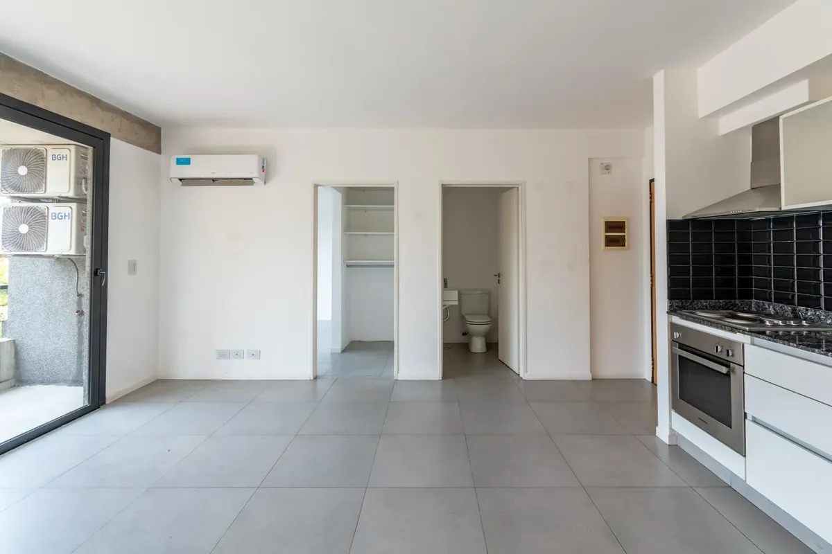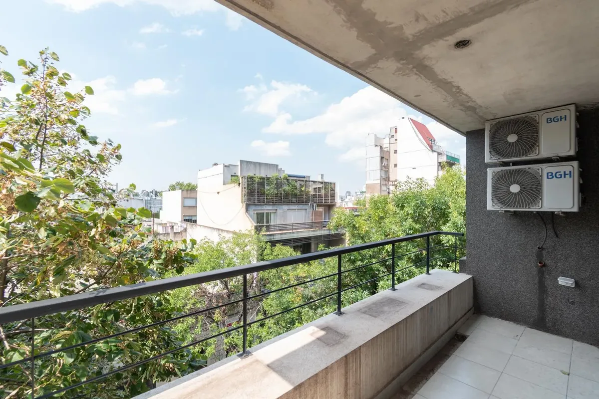 Квартира в Villa Crespo на 3-м этаже с окнами на улицу, 2 комнаты. Жилая зона с обеденной частью выходит на балкон; кухня объединена с гостиной и оснащена мебелью под столешницей и навесным шкафом. Спальня с окном, ванная в suite и место для хранения. Установлены 2 кондиционера сплит холод/тепло. В здании есть SUM с зоной гриля. Дом находится в 1 квартале от Av. Juan B (Metrobús), в 2 кварталах от Av. Corrientes и в 2 кварталах от зоны Outlet.