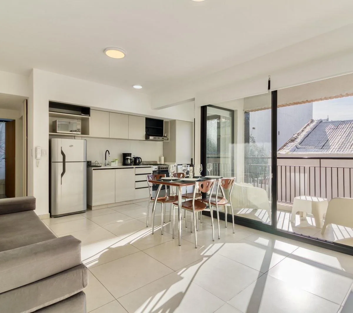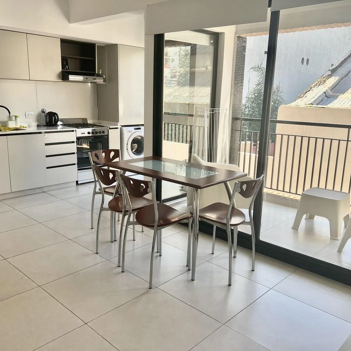 Квартира в 2 комнатах площадью и этаж не указаны, в Palermo Hollywood, окна во внутренний двор квартала. Квартира полностью оборудована. Указано, что рядом есть транспортные маршруты.