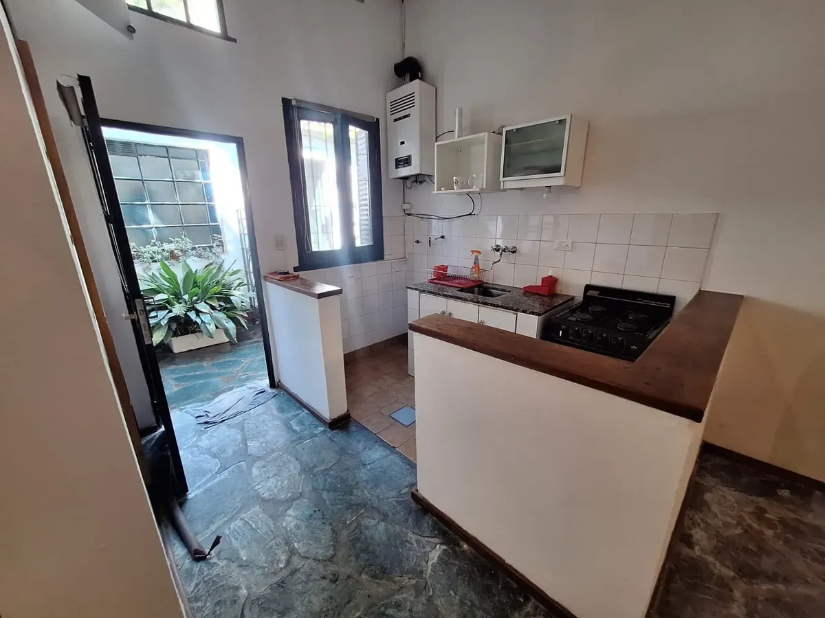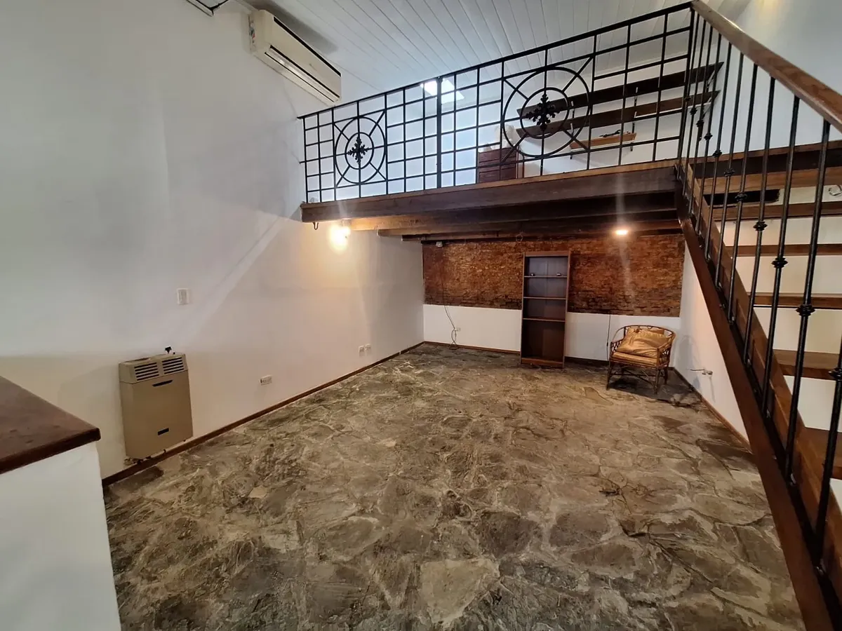 Квартира-студия PH в формате loft, без коммунальных платежей здания (sin expensas). Вход через общий коридор. Внутри: гостиная-столовая с интегрированной кухней и барной стойкой, газовая плита и газовый водонагреватель (calefón), деревянный антресольный уровень. Полная ванная, система отопления с тягой и кондиционер, отдельная прачечная. Квартира будет сдана после покраски, домашних животных не принимают. Точные размеры не указаны, указаны ориентировочно. Район: доступ к Av. Juan B Justo, Av. Co