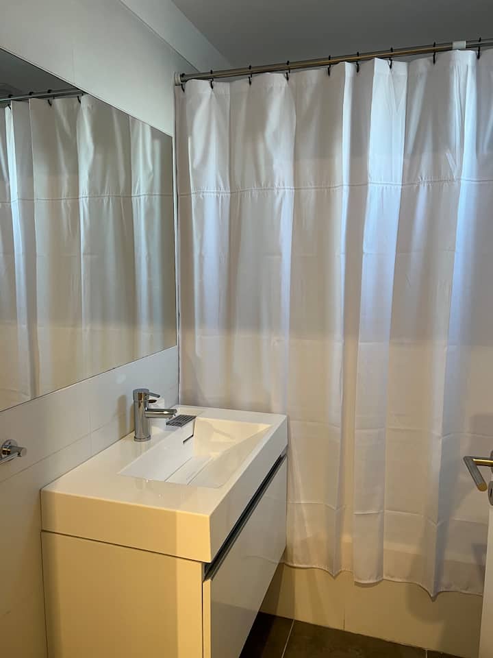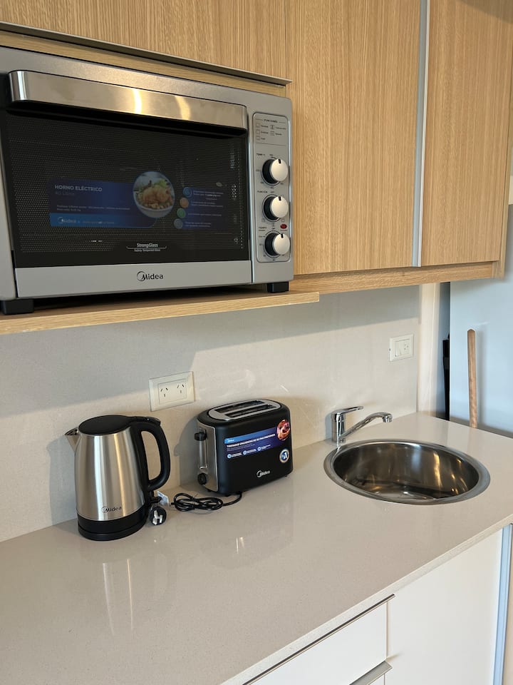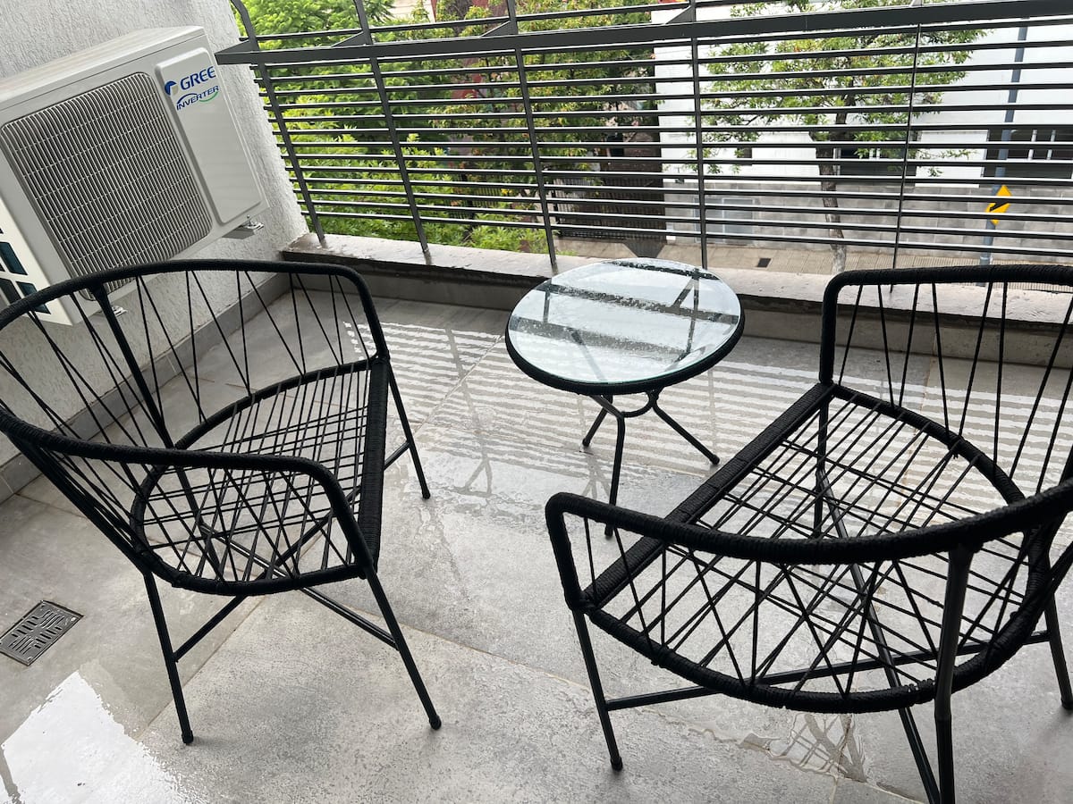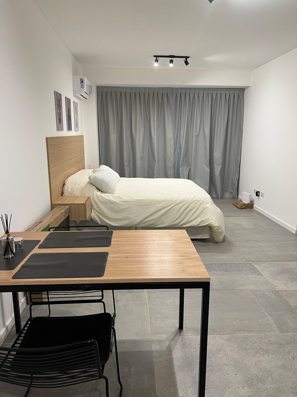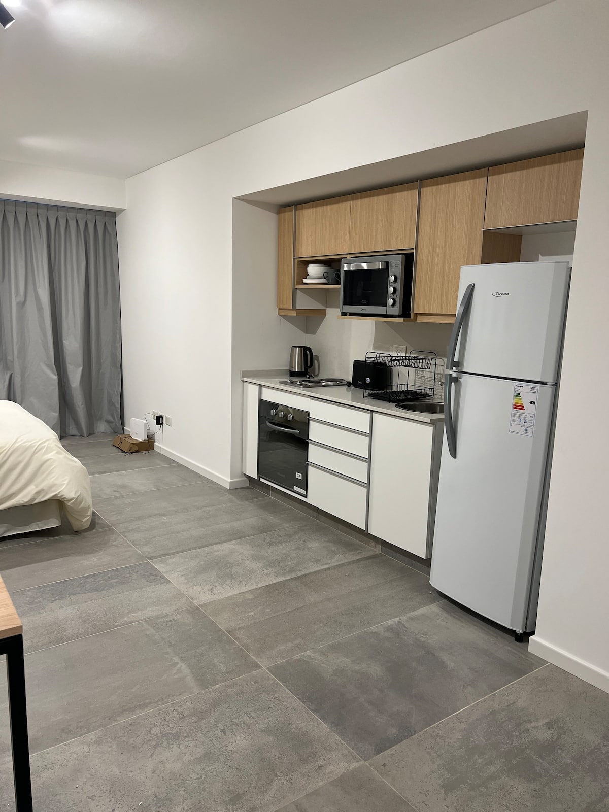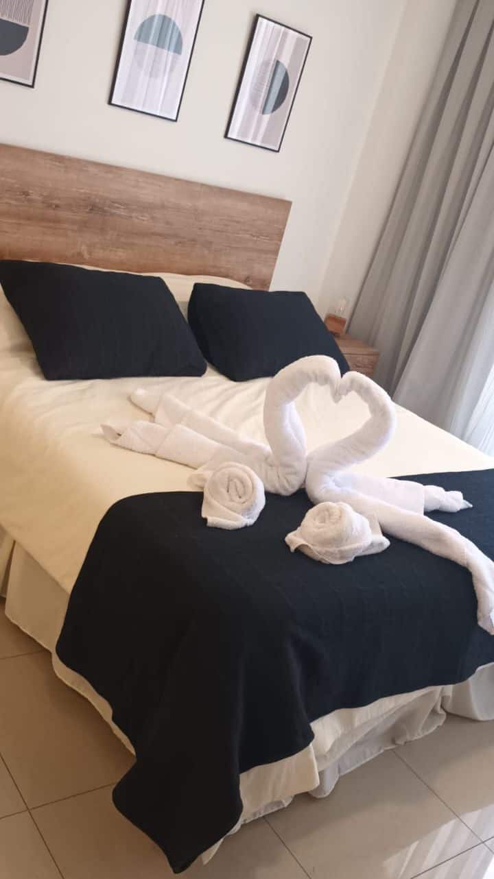Новая квартира-студия в Villa Crespo на 3-м этаже, окна на улицу Calle Serrano. В здании есть лифт. В квартире установлена новая кухня, холодильник, электрическая плита, посуда и кухонная утварь. Есть двуспальная кровать (160 см), кондиционер, пледы и полотенца, фен, встроенный шкаф, а также 45-дюймовый Smart TV (для просмотра Netflix и других приложений). На студии имеется балкон, а также есть микроволновая печь. В описании указано, что здание находится примерно в 100 м от Av. Córdoba, в пешей