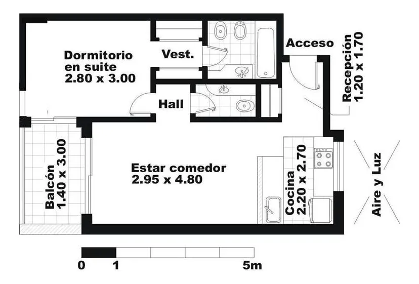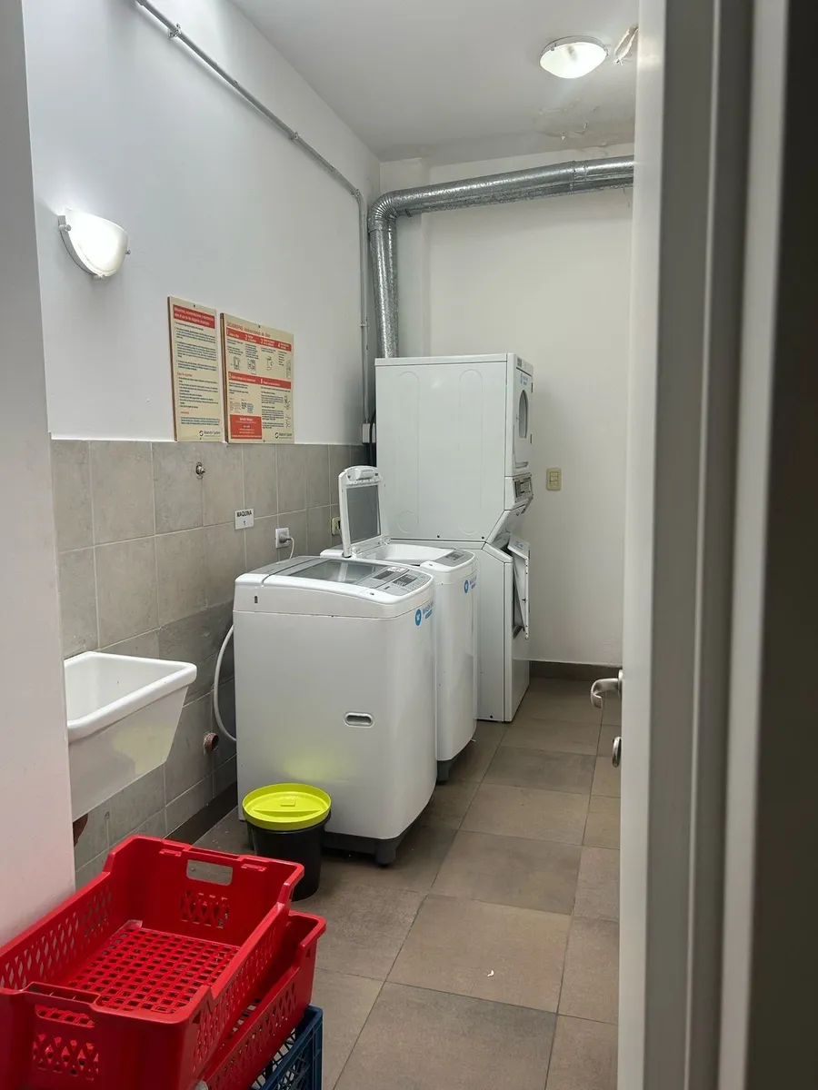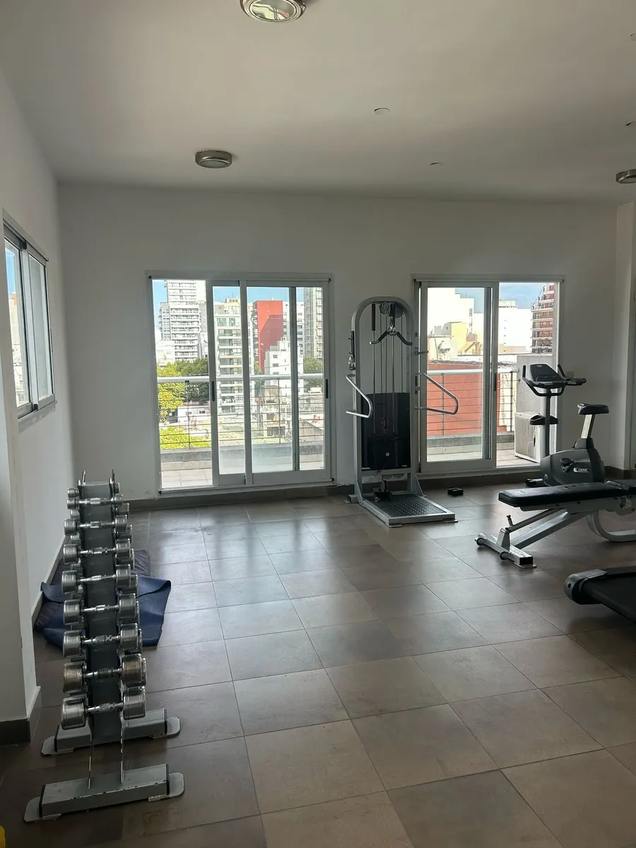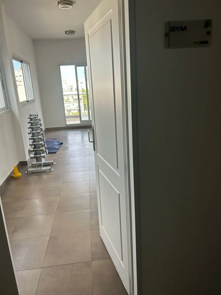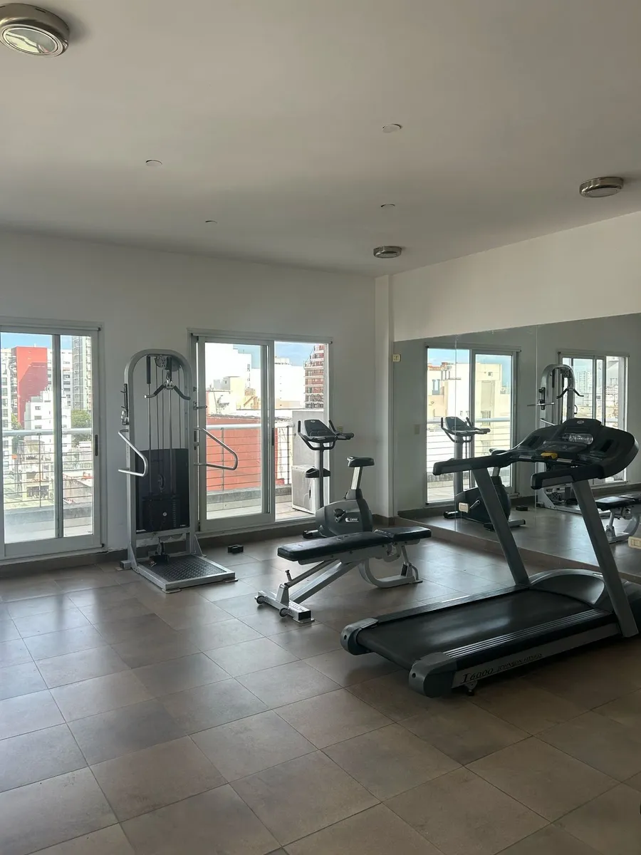 Квартира в здании с amenities в Villa Crespo, 45 m². Две комнаты: гостиная с кухней-гостиной, спальня с гардеробной, ванная с ванной/туалетным блоком и отдельный гостевой туалет, балкон. Все оборудование электрическое, система напольного отопления (пола с подогревом), кондиционер холод/тепло. В здании есть прачечная, бассейн, общая гостиная для жильцов, тренажёрный зал и сауна, ночная охрана. Аренда корректируется раз в квартал по IPC, доступна с мая 2026.