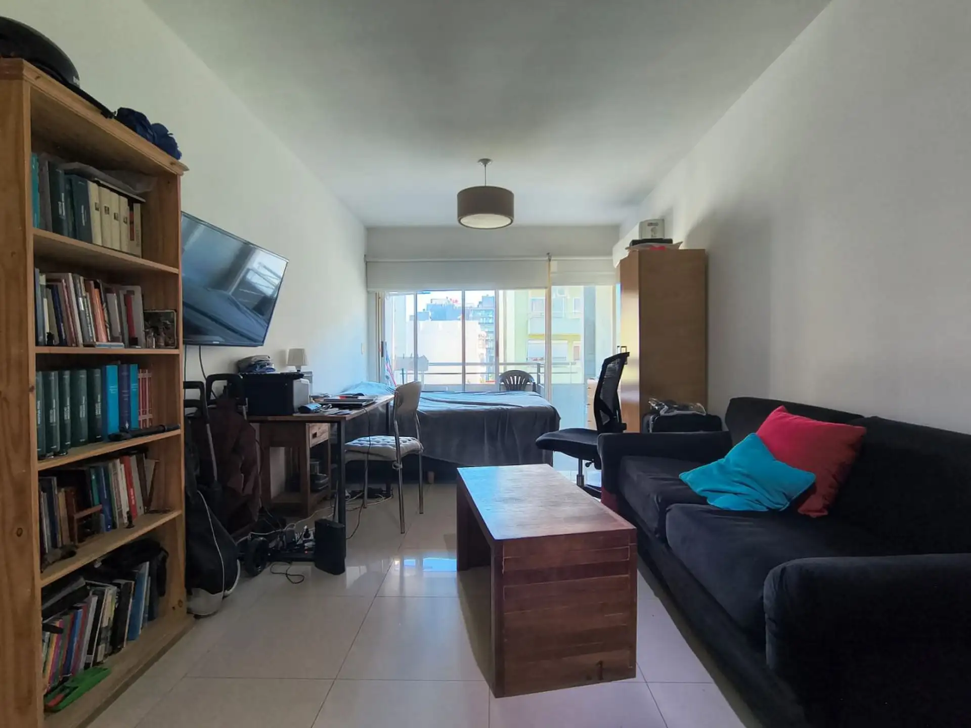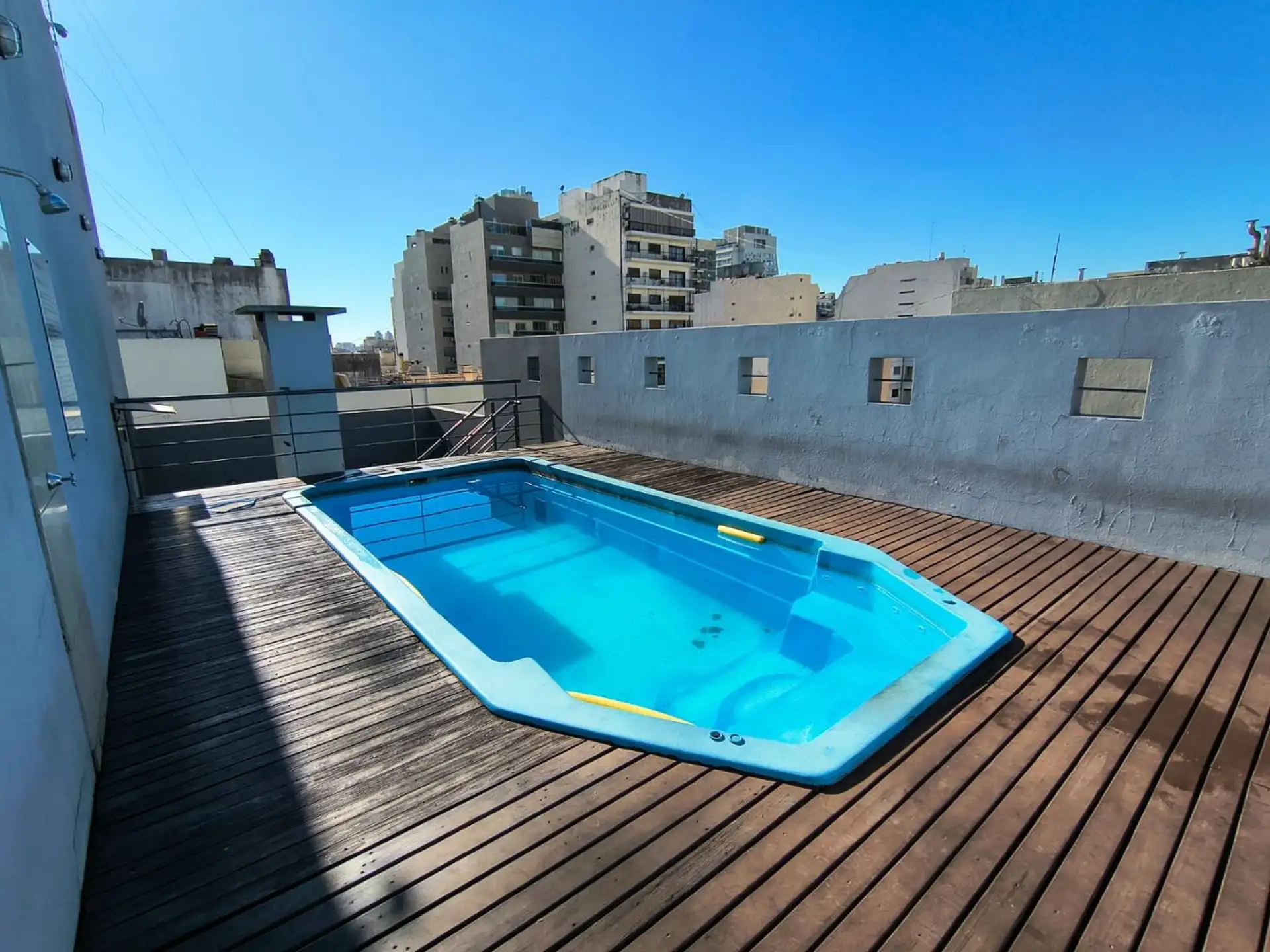 Квартира-студия с балконом на улицу в Villa Crespo. Площадь не указана; балкон размером 2,2 x 1,1. Кухня интегрирована с мебелью под мойкой, ниша (аласена) и электрическая кухонная плита с барной стойкой. Ванная комната полностью оборудована. В помещении керамические полы, горячая вода от электрического термотанка. В здании есть терраса, бассейн, laundry, зона гриля и ночная охрана. В 3 кварталах от Av. S. Ortiz, в 3 кварталах от Av. Juan B. Justo и в 1 квартале от Av. Corrientes (линия B субте)