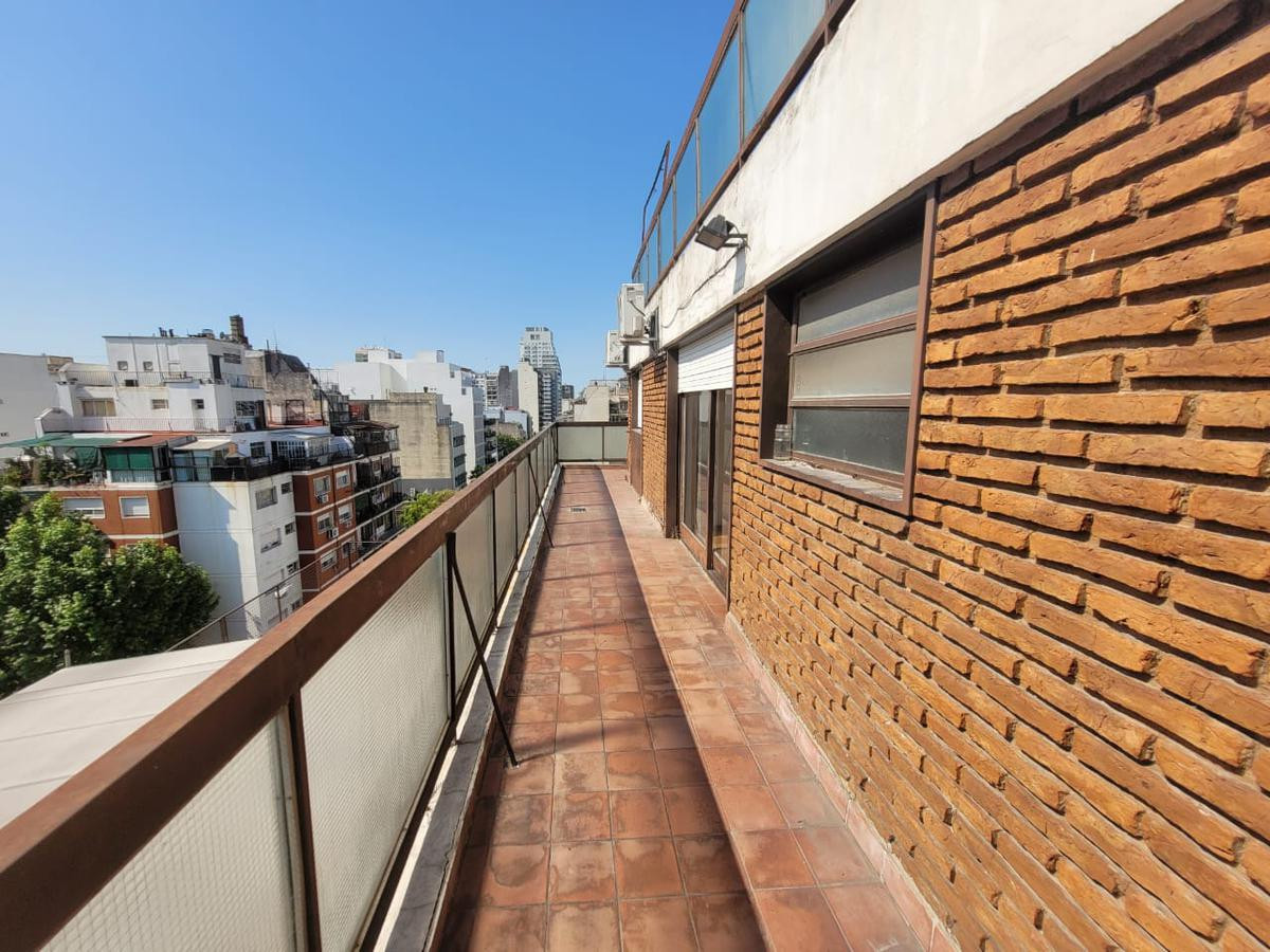 Квартира в Villa Crespo, 2 комнаты, с просторной террасой-балконом. Окна на улицу, отдельная прачечная (lavadero independiente). Полная ванная и отдельная кухня. Срок договора 2 года. Аванс 1 месяц и депозит 1 месяц, корректировки каждые 3 месяца по IPC. В объявлении указано, что условия заселения не предусмотрены для людей с ограниченной способностью к передвижению. Коммунальные платежи (expensas) в тексте не уточнены.