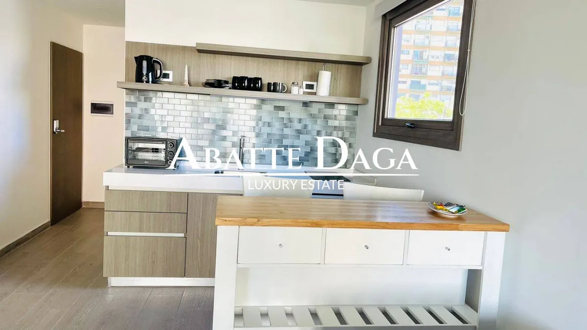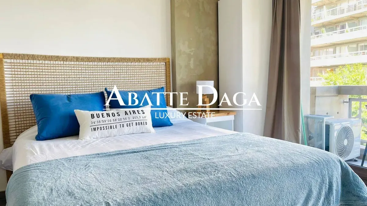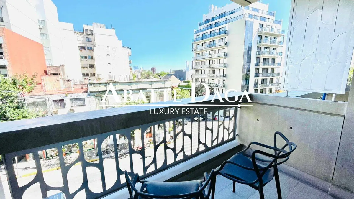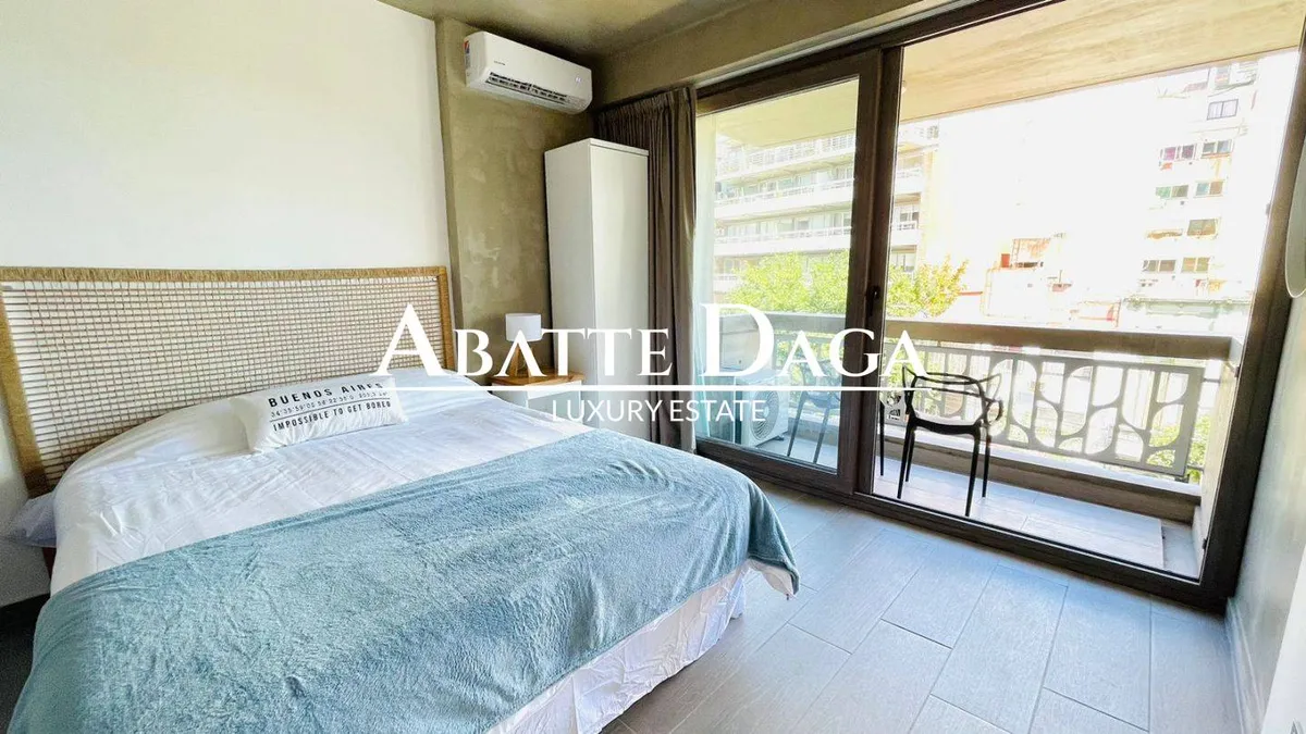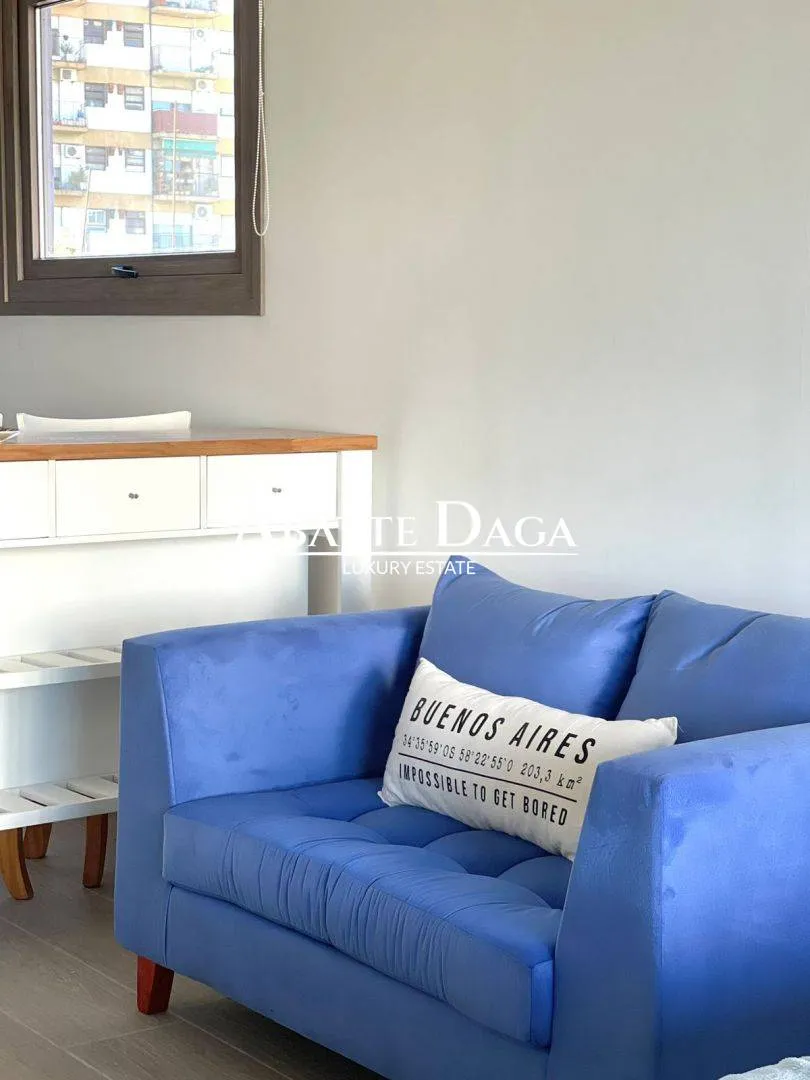 Квартира-студия в аренду в Palermo Soho, меблирована. Кухня с электрическим анфе и электрической духовкой, фригобар с морозильной камерой, Smart TV 50", кондиционер (охлаждение/обогрев). В комнате двухместная кровать с возможностью трансформации в 2 раздельных спальных места, диван на 2 места, окна со стеклопакетами и шторами black out; есть полноценная ванная с душем. В здании предусмотрены внутреннее видеонаблюдение, открытие дверей с электронным замком, ночная охрана, терраса с зоной гриля, c