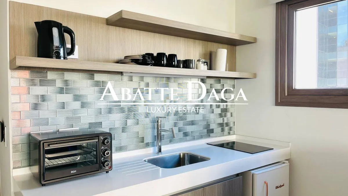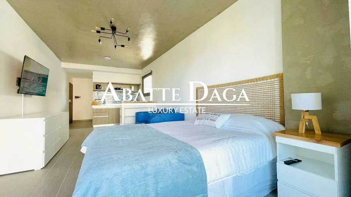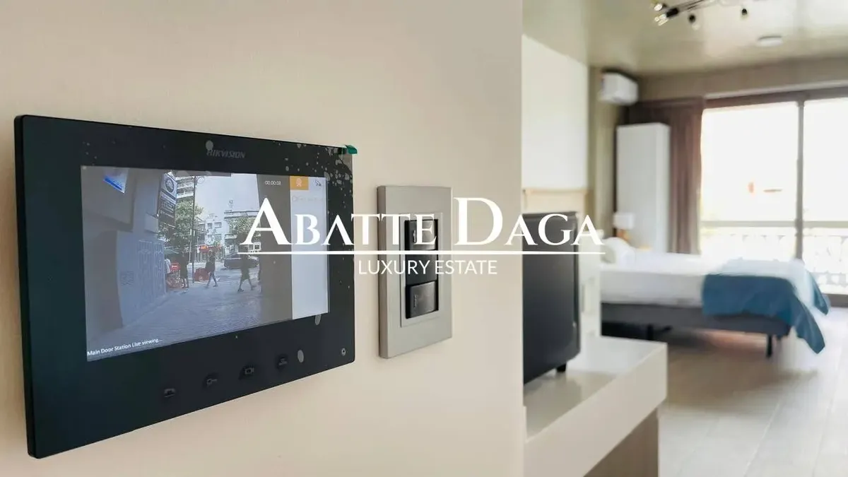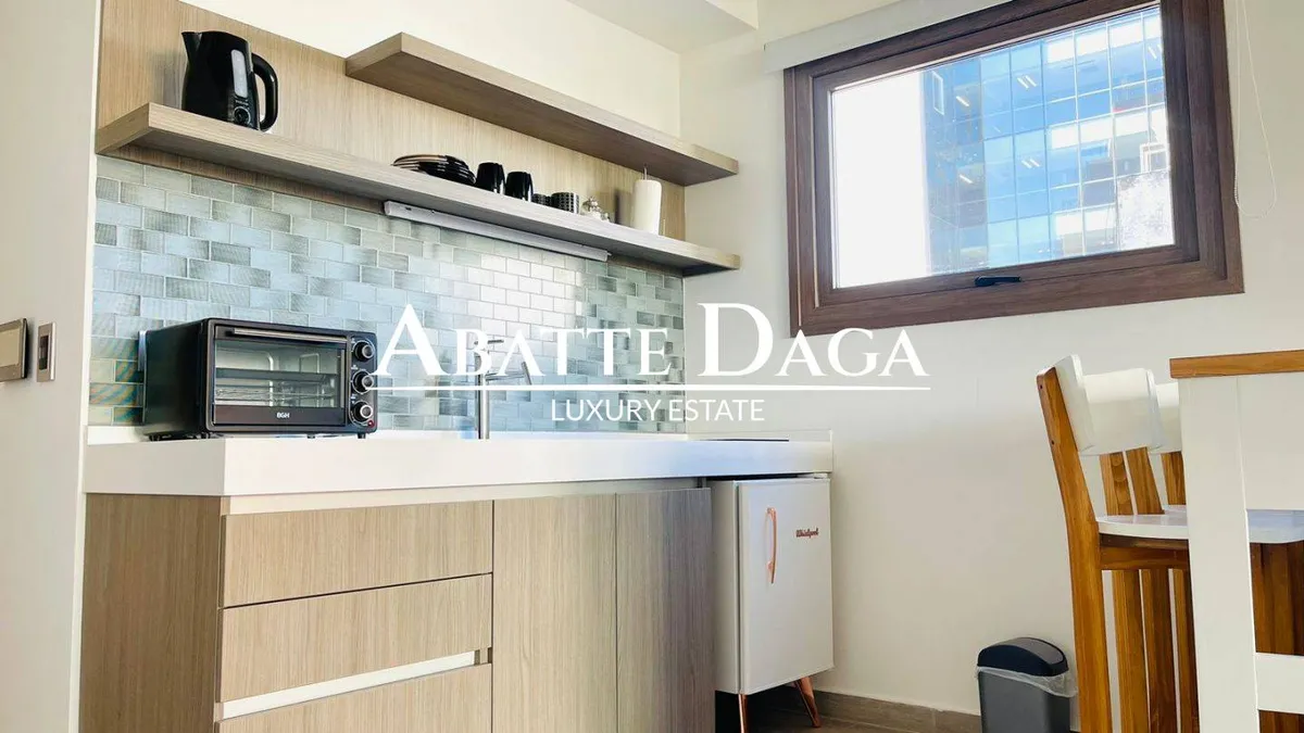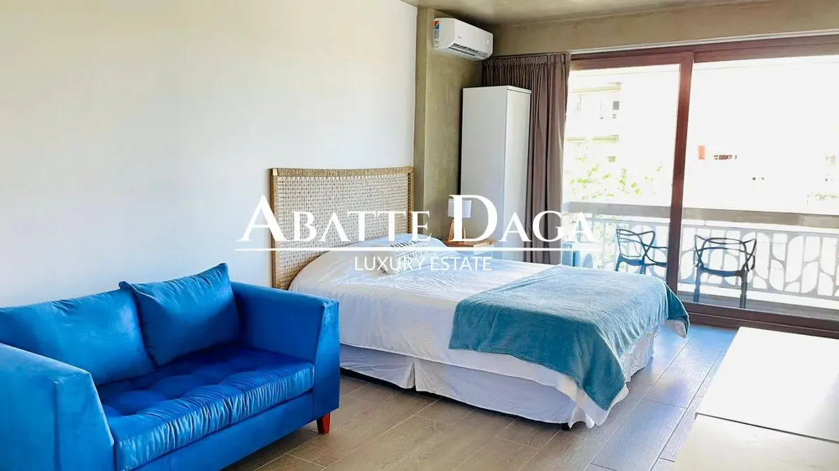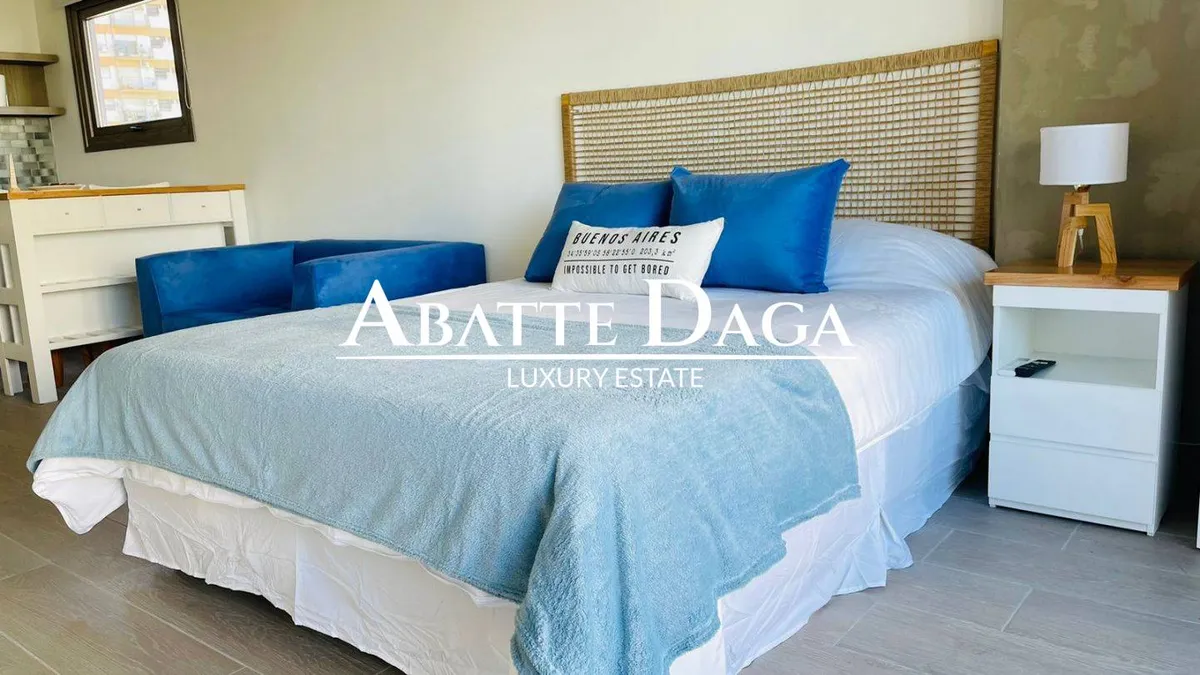 Квартира-студия в аренду в Palermo Soho, меблирована. Кухня с электрическим анфе и электрической духовкой, фригобар с морозильной камерой, Smart TV 50", кондиционер (охлаждение/обогрев). В комнате двухместная кровать с возможностью трансформации в 2 раздельных спальных места, диван на 2 места, окна со стеклопакетами и шторами black out; есть полноценная ванная с душем. В здании предусмотрены внутреннее видеонаблюдение, открытие дверей с электронным замком, ночная охрана, терраса с зоной гриля, c