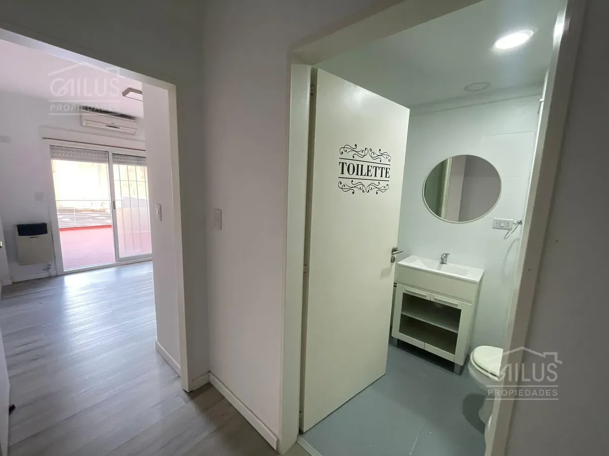Квартира в Villa del Parque площадью 2 комнаты, с окнами на улицу. В квартире предусмотрен балкон и внутренний двор площадью 15 m². Кухня-гостиная объединены; в спальне есть встроенный шкаф и выход на частный двор размером 5 x 2,75 м. Также есть дополнительный шкаф в коридоре и отдельная зона под рабочий стол. Рассматривается проживание с животными (уточняется). Коммунальные платежи здания указаны за февраль 2026. Условия аренды: 1 месяц вперёд и 1 месяц залог-страховка, гарантия CABA или страхо