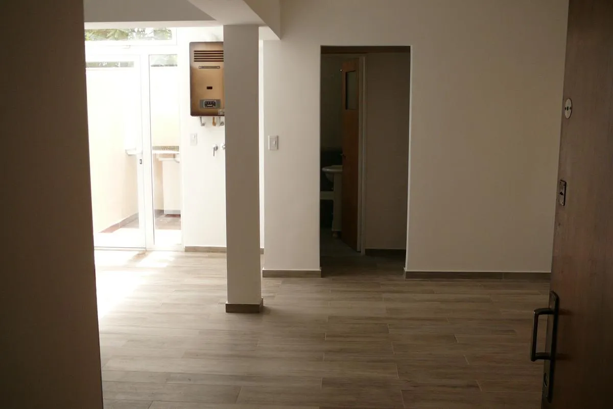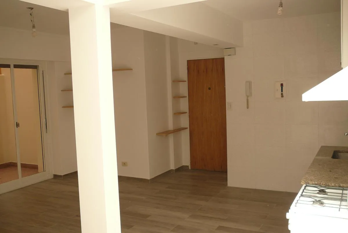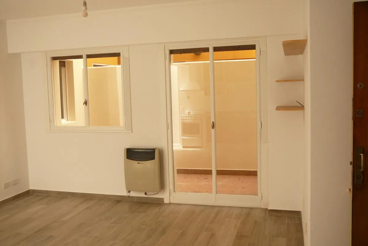 Квартира в Villa Devoto, 2 ambientes, на первом этаже, после ремонта. Площадь включает гостиную-столовую с кухней открытого типа и два патио, а также отдельную зону для стирки. Окна оснащены стеклопакетами DVH с остеклённой крышей и деревянными жалюзи. В гостиной установлено отопление с балансированной тягой 5000 kcal. В кухне газовая плита с столешницей, верхними и нижними шкафами; из зоны кухня-столовая выход на патио с керамическим полом, столешницей, мойкой, подключением для стиральной машин