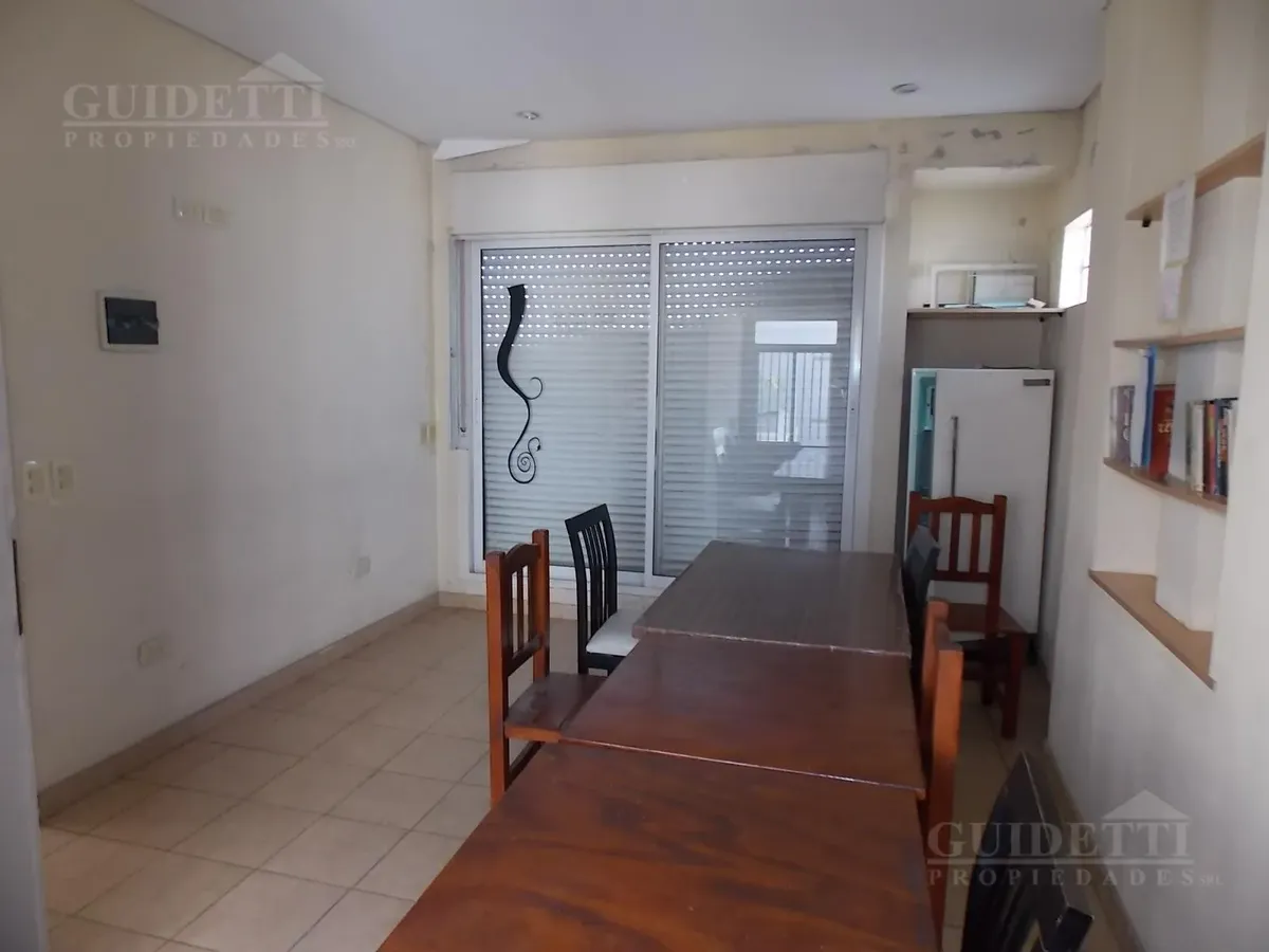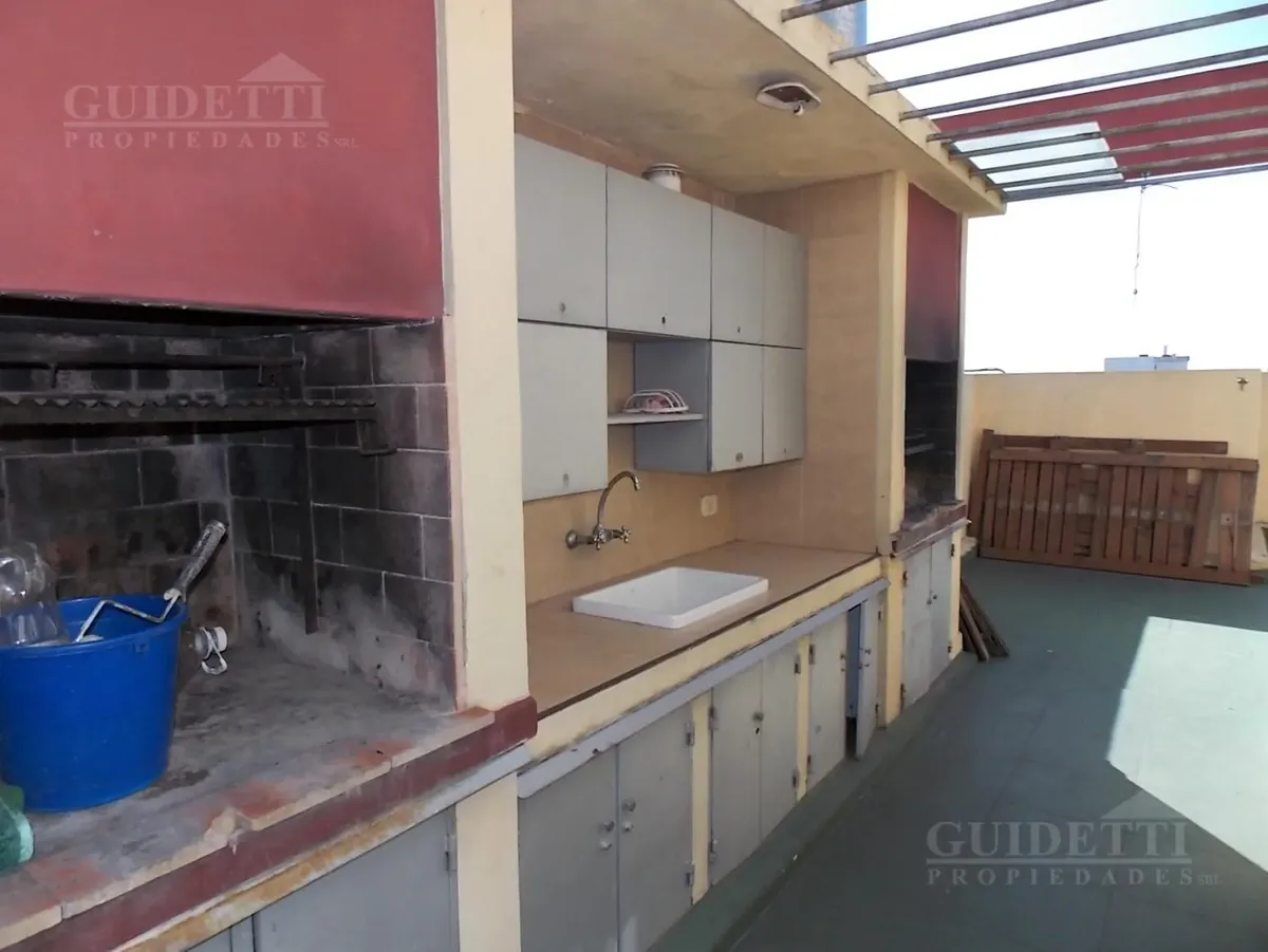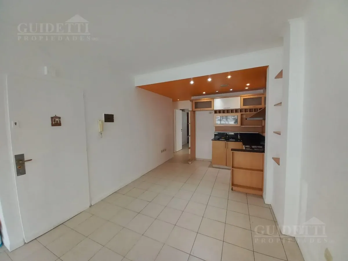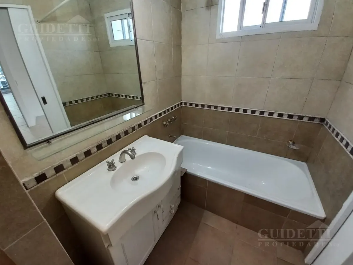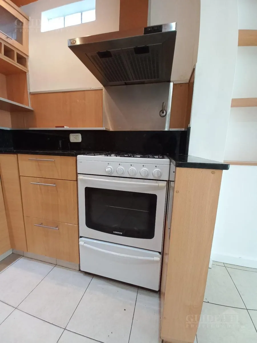 Квартира в Villa Devoto на 2 комнаты: 1 спальня, окна на улицу. Площадь и этаж не указаны. Балкон во всю длину, есть отдельное помещение для стирки. Основное помещение с интегрированной кухней с верхними и нижними шкафами, спальня с встроенным шкафом и ванной в suite. Также предусмотрен гостевой санузел (toilette). Тёплая вода через бойлер (calefón), отопление — печью (estufa). В здании есть SUM и зона гриля (parrilla). Коммунальные платежи здания (expensas) — 98.000 ARS, ABL — 15.200 ARS; AySA