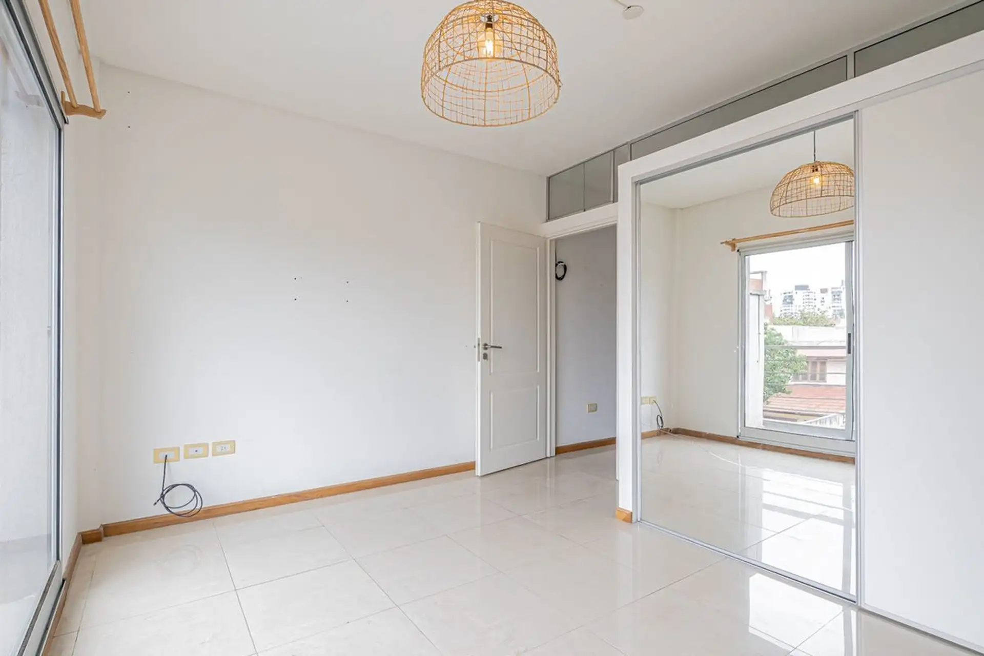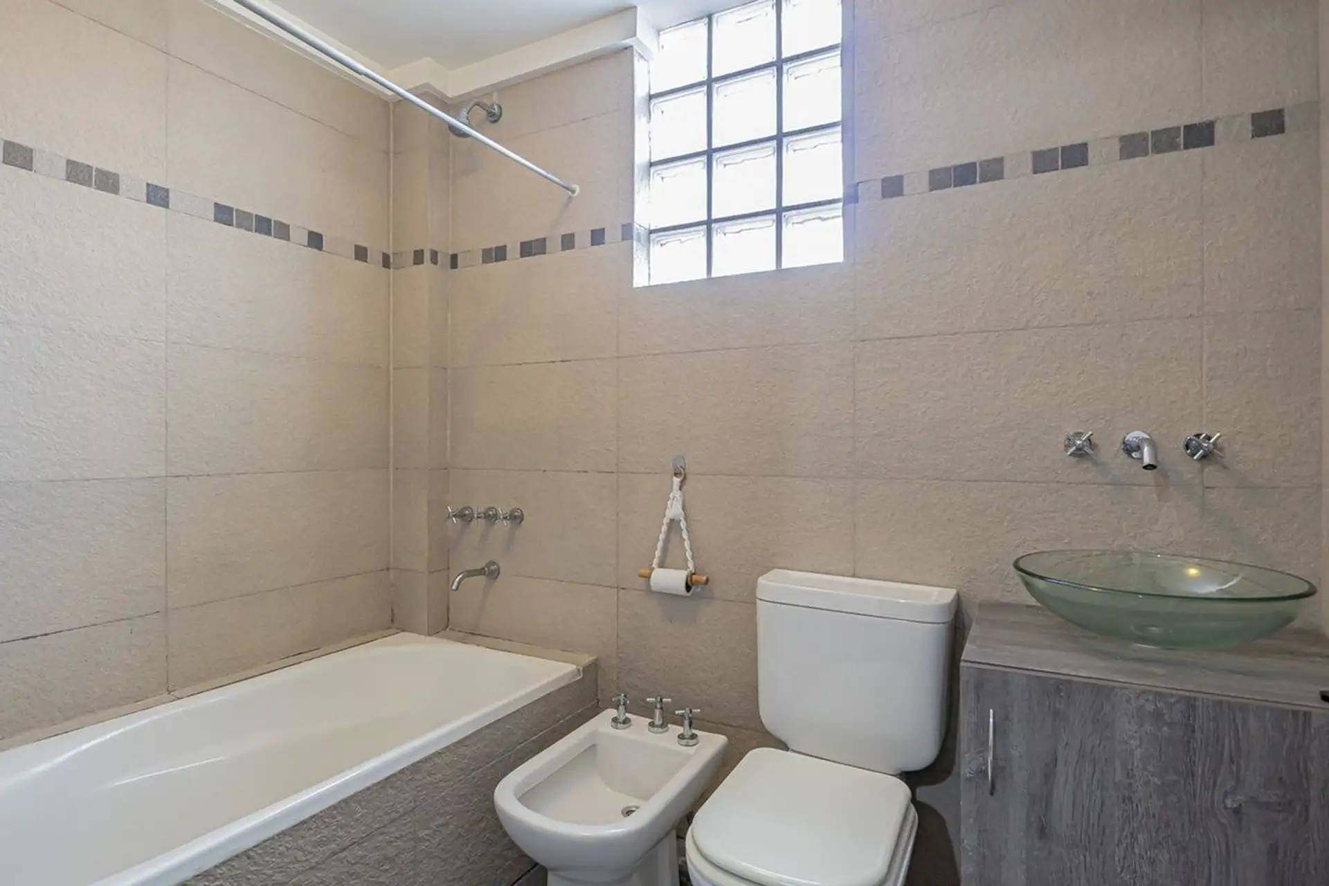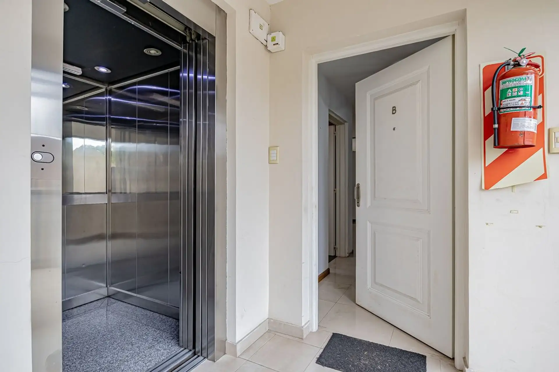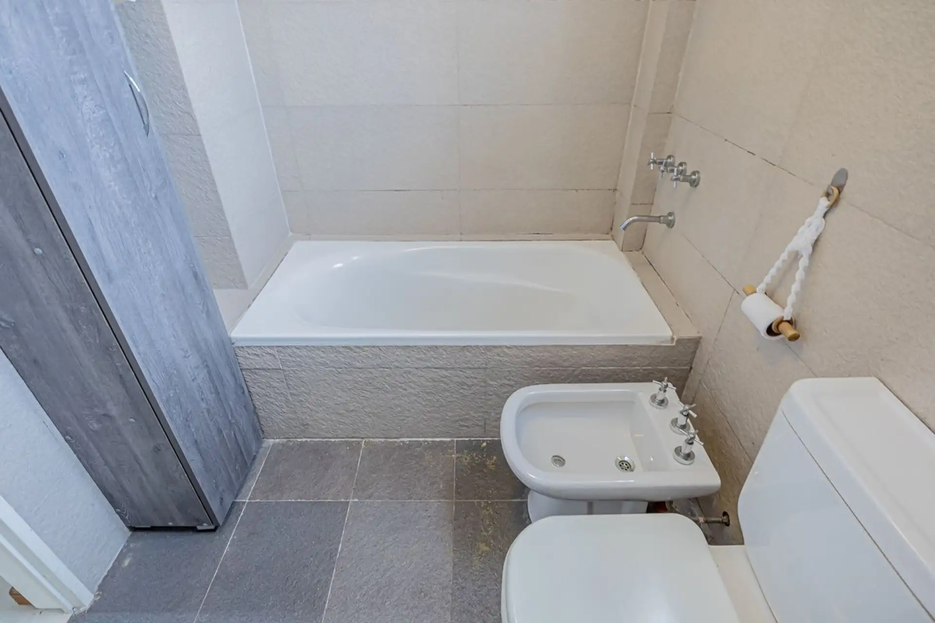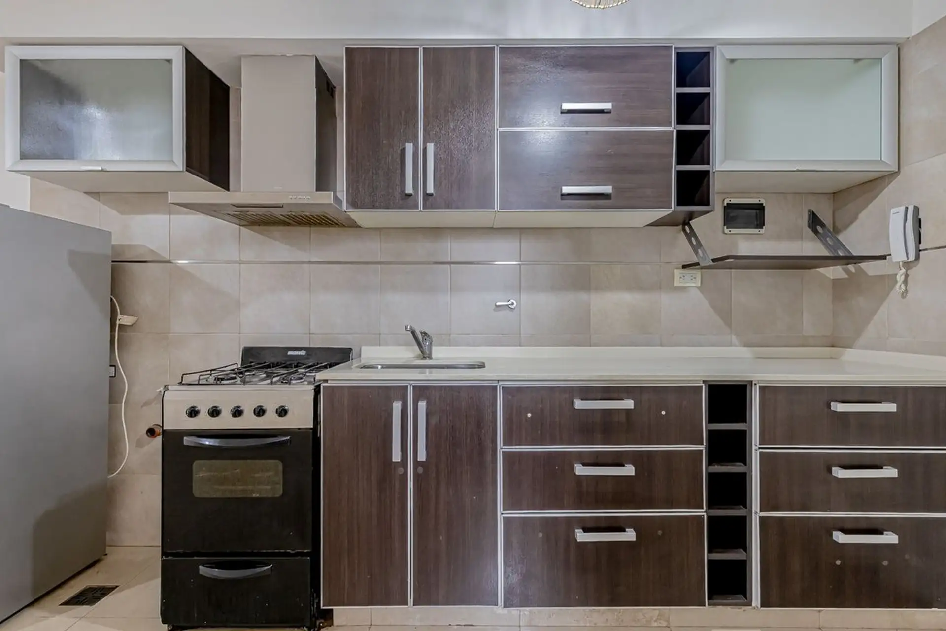 Квартира в Villa Devoto, 2 комнаты (1 спальня) с балконом. В квартире гостиная с интегрированной кухней, в кухне указаны мебель и отделка из меламина и алюминия. Спальня с выходом на балкон через большое окно; предусмотрен шкаф для хранения и зеркало. Ванная комната полностью укомплектована, указаны ванна и сантехника. Коммунальные платежи здания и другие расходы в объявлении не уточнены. Указаны расстояния: 2 квартала до Av. Gral. Paz, 2 квартала до Lope de Vega, 4 квартала до Av. Francisco Bei