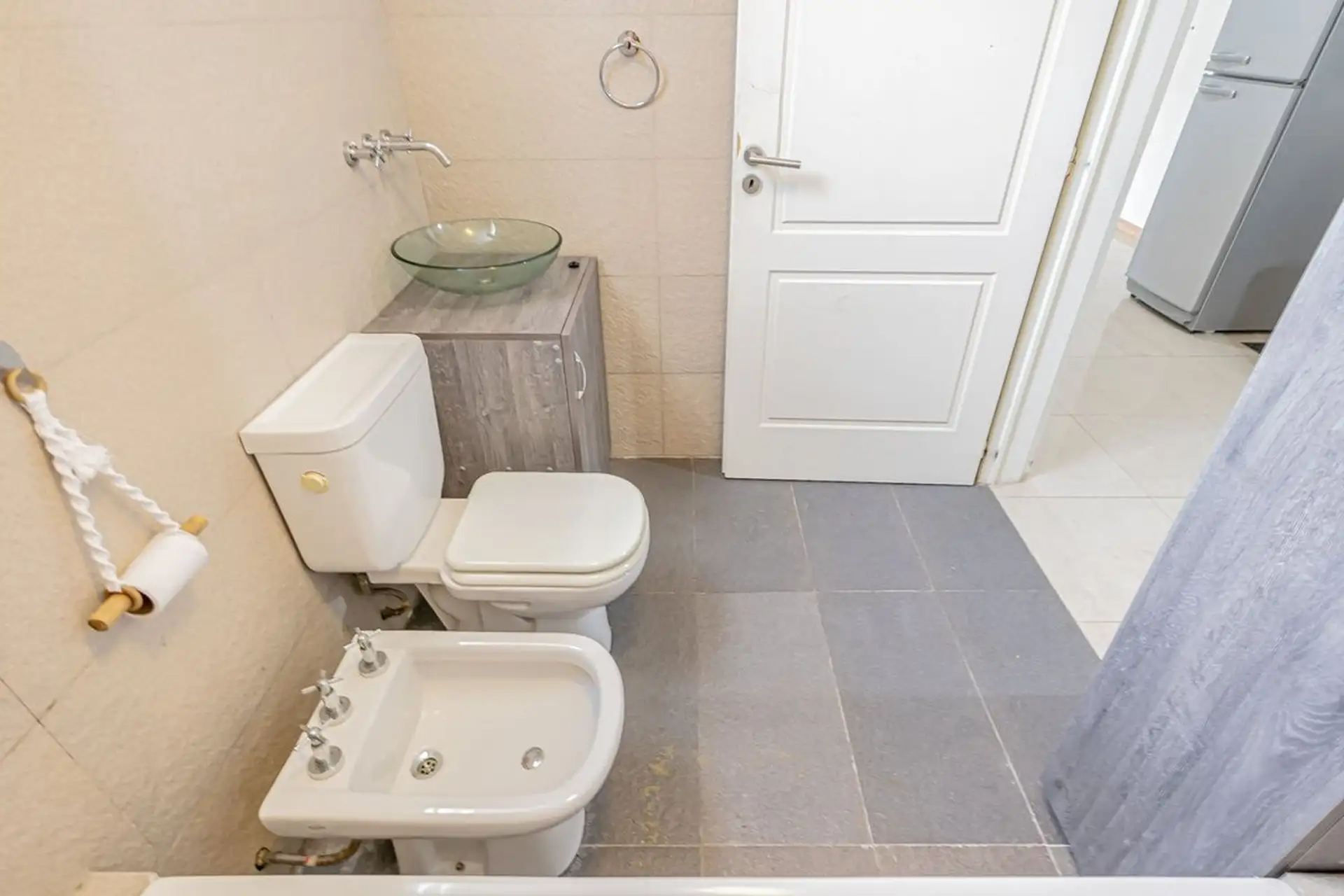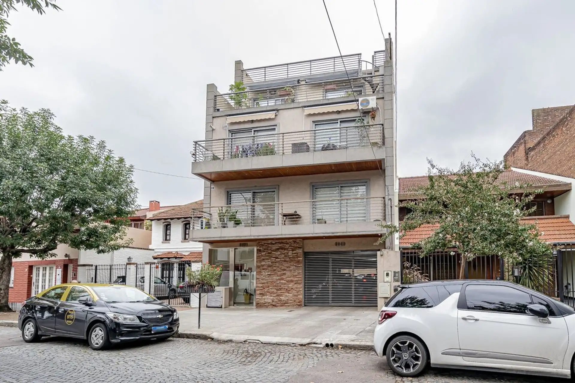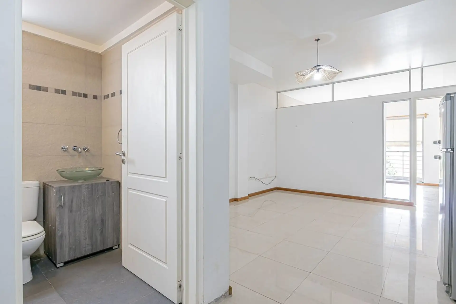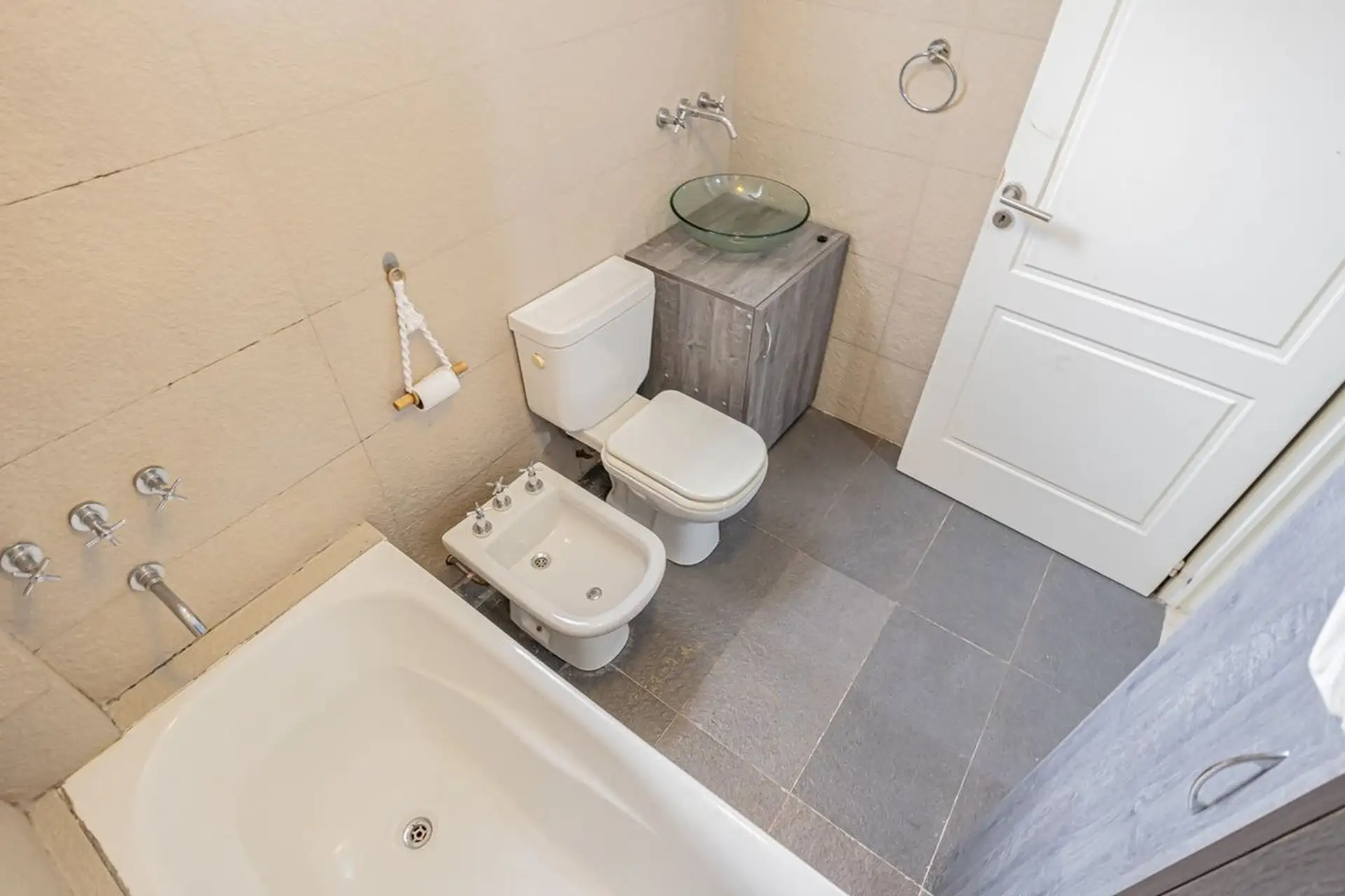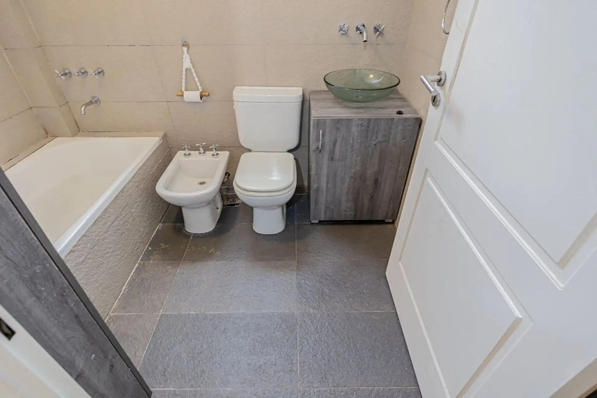Квартира в Villa Devoto, 2 комнаты (1 спальня) с балконом. В квартире гостиная с интегрированной кухней, в кухне указаны мебель и отделка из меламина и алюминия. Спальня с выходом на балкон через большое окно; предусмотрен шкаф для хранения и зеркало. Ванная комната полностью укомплектована, указаны ванна и сантехника. Коммунальные платежи здания и другие расходы в объявлении не уточнены. Указаны расстояния: 2 квартала до Av. Gral. Paz, 2 квартала до Lope de Vega, 4 квартала до Av. Francisco Bei