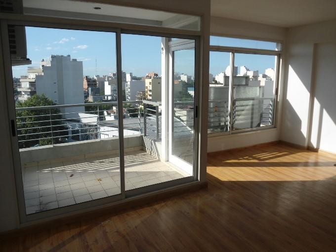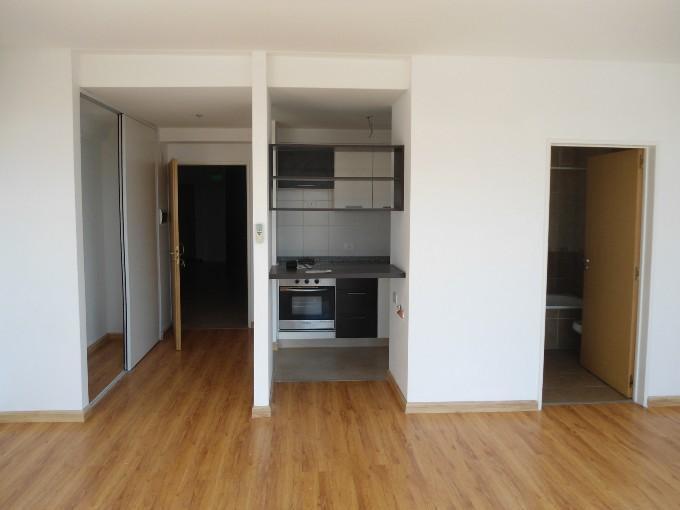 Квартира-студия в Villa Devoto, окна на Av. Santa Fe, на 1 «комнату». Есть балкон, душевая с полным санузлом и интегрированная кухня. Установлены электрическая духовка и электроплита (anafe), кондиционер split (холод/тепло). Покрытие пола — плавающий пол, центральный котёл. Ближайшая остановка указана как рядом с Estación del Libertador del FGU.