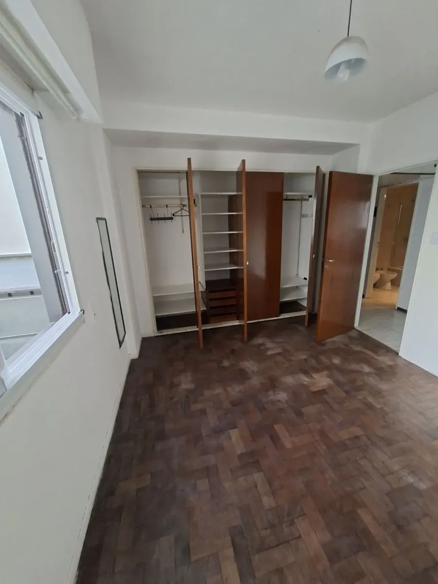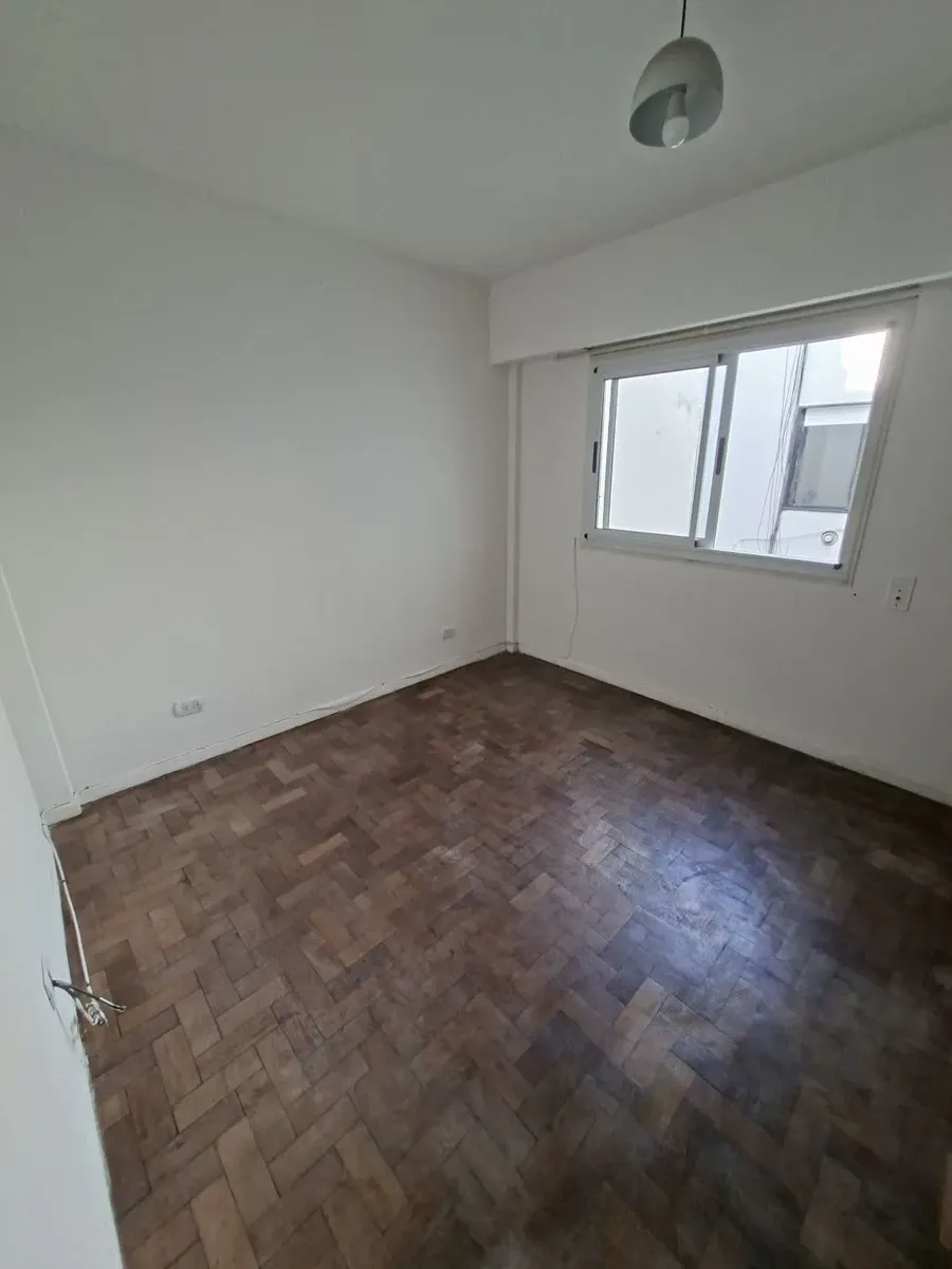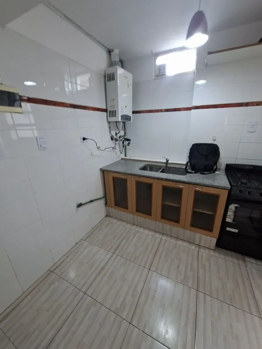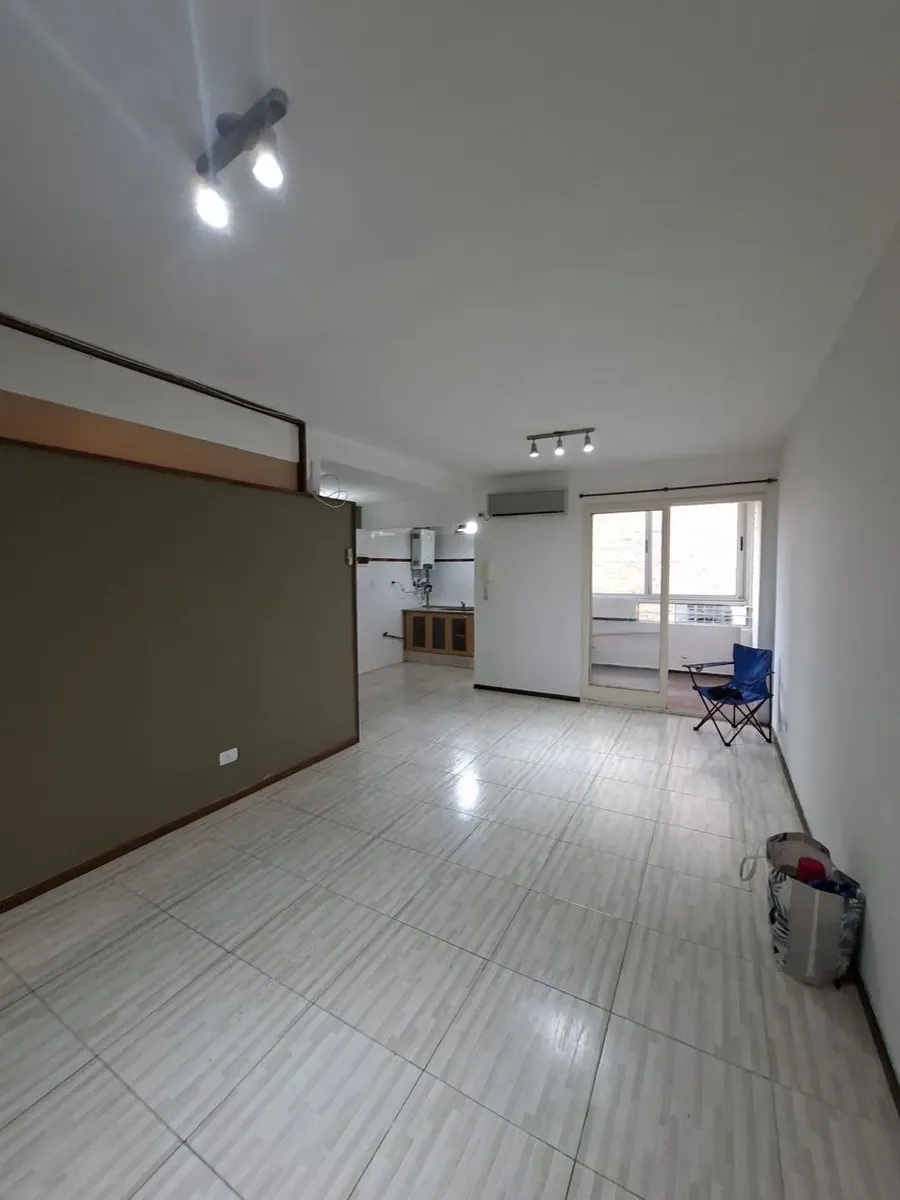 Квартира в Villa Devoto, 2 комнаты (1 спальня) без лифта, вход по лестнице. Площадь в описании не указана. Из прихожей вход в гостиную-столовую с керамическими полами, встроенным шкафом и выходом на балкон с остеклением; вид сбоку. Кухня полностью оборудована, частично объединена с гостиной и имеет отдельный выход на балкон. Ванная комната с ванной, душевой перегородкой и тумбой; спальня с паркетным полом, видом сбоку и большим встроенным шкафом. Квартира недавно окрашена, указано «в хорошем сос