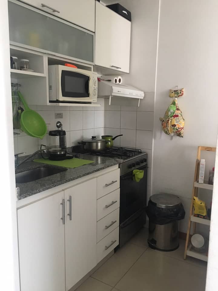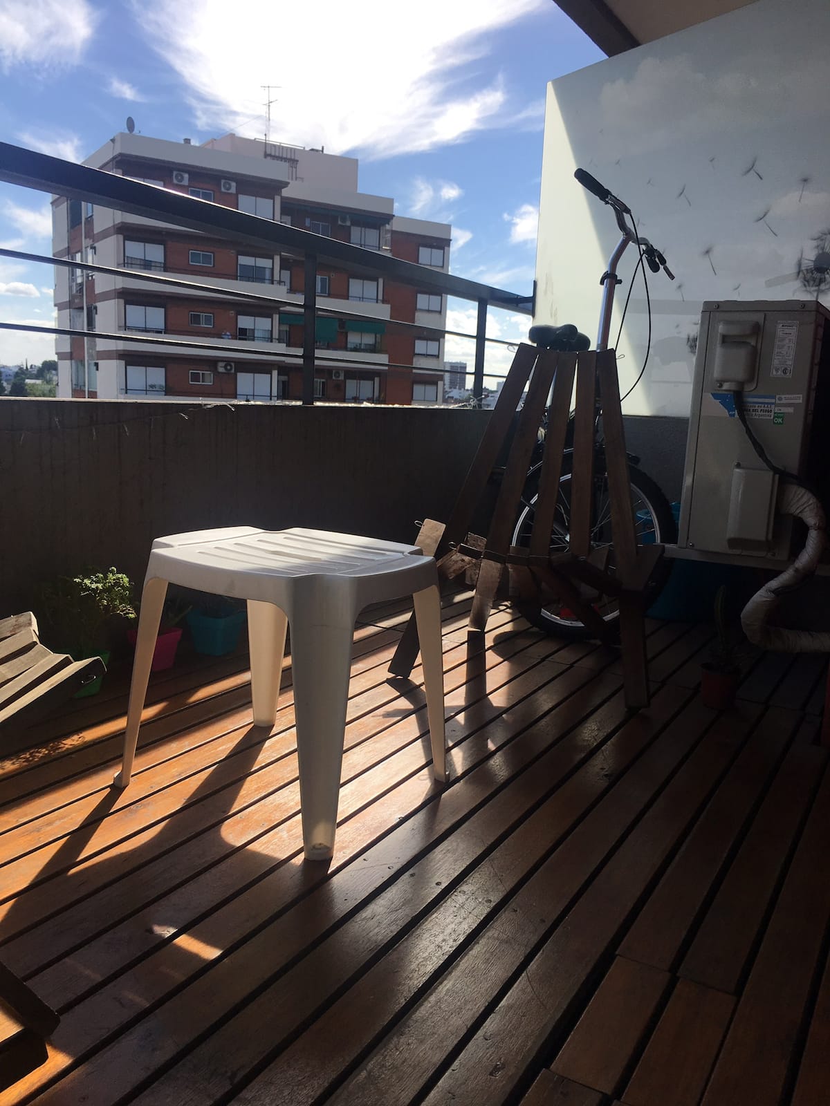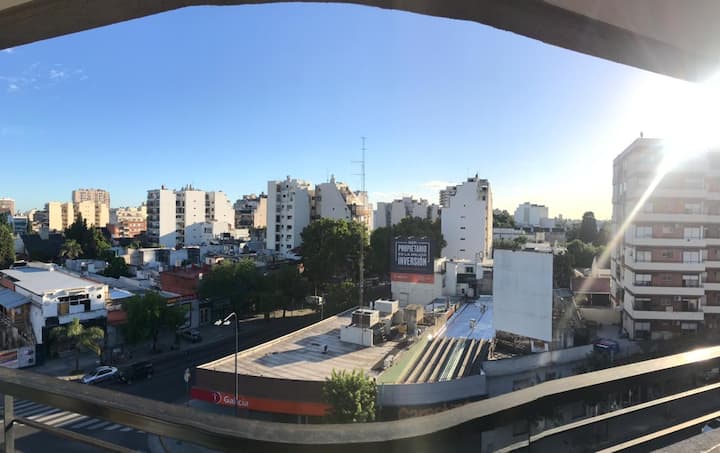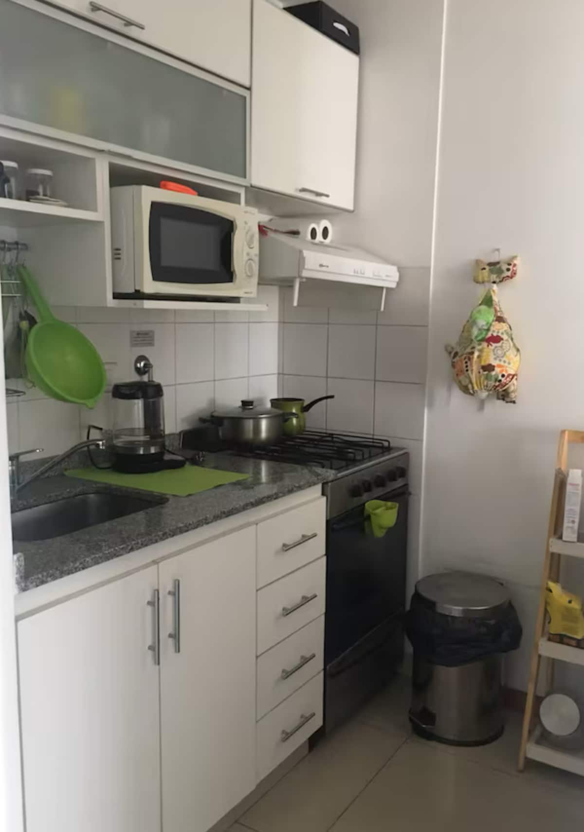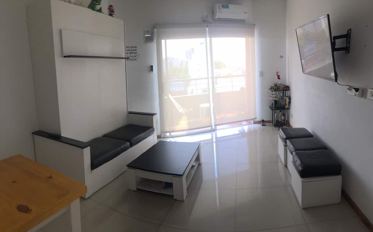 Квартира-студия в Villa Devoto. В помещении установлен двуспальный раскладной диван-кровать, который превращает пространство в гостиную. Площадь не указана, есть большой балкон с настилом. В студии отдельная кухня с холодильником, духовкой, электрической духовкой, электрическим чайником и микроволновой печью, а также кондиционер (холод/тепло). Предусмотрены Wi‑Fi и телевизор, обеденный стол на 2 места. Минимальный срок бронирования — 4 ночи. Транспорт: в 1 квартале от станции Subte Línea B, Inca