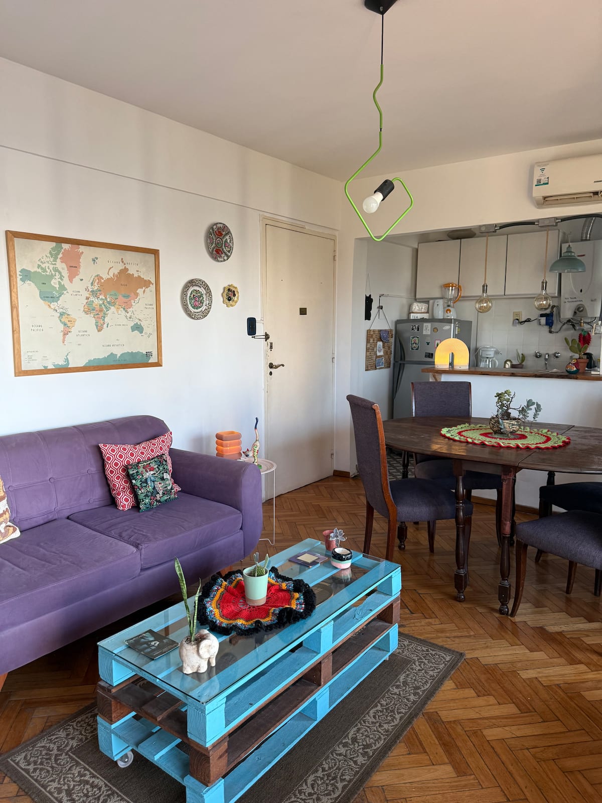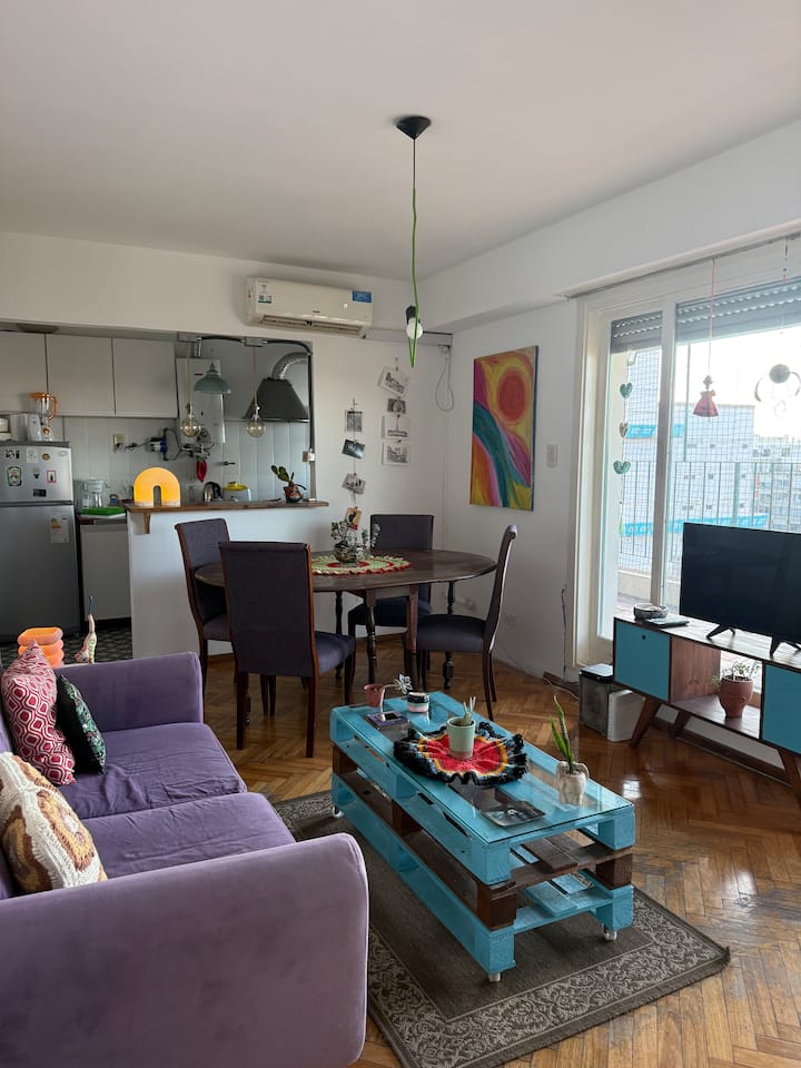 Квартира в Villa Devoto, в нескольких кварталах от Plaza Arenales. В ней есть ванная с ванной и биде, горячая вода, кондиционер Cold/Heat и электрическая плита. В спальне предусмотрены постельное бельё и большой шкаф; есть рабочий стол для ноутбука, микроволновая печь, холодильник и электрическая кофеварка. Также указаны Wi‑Fi, обеденный стол и посуда, а) частный внутренний двор/балкон с панорамным видом. В здании 2 лифта; платная парковка находится в 1 квартале. Курение не разрешено. Заселение
