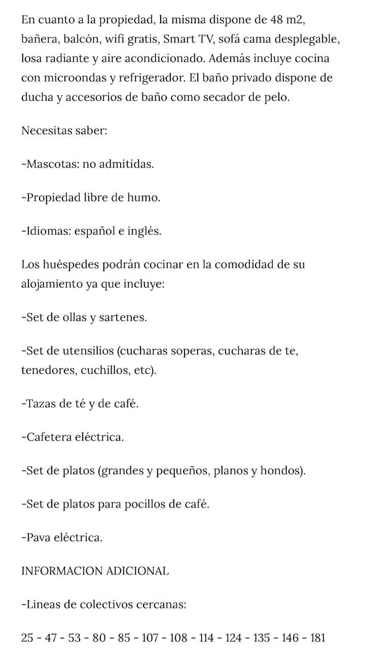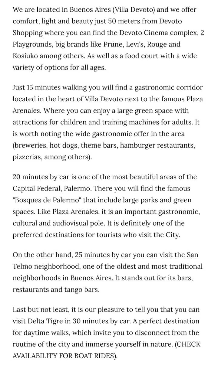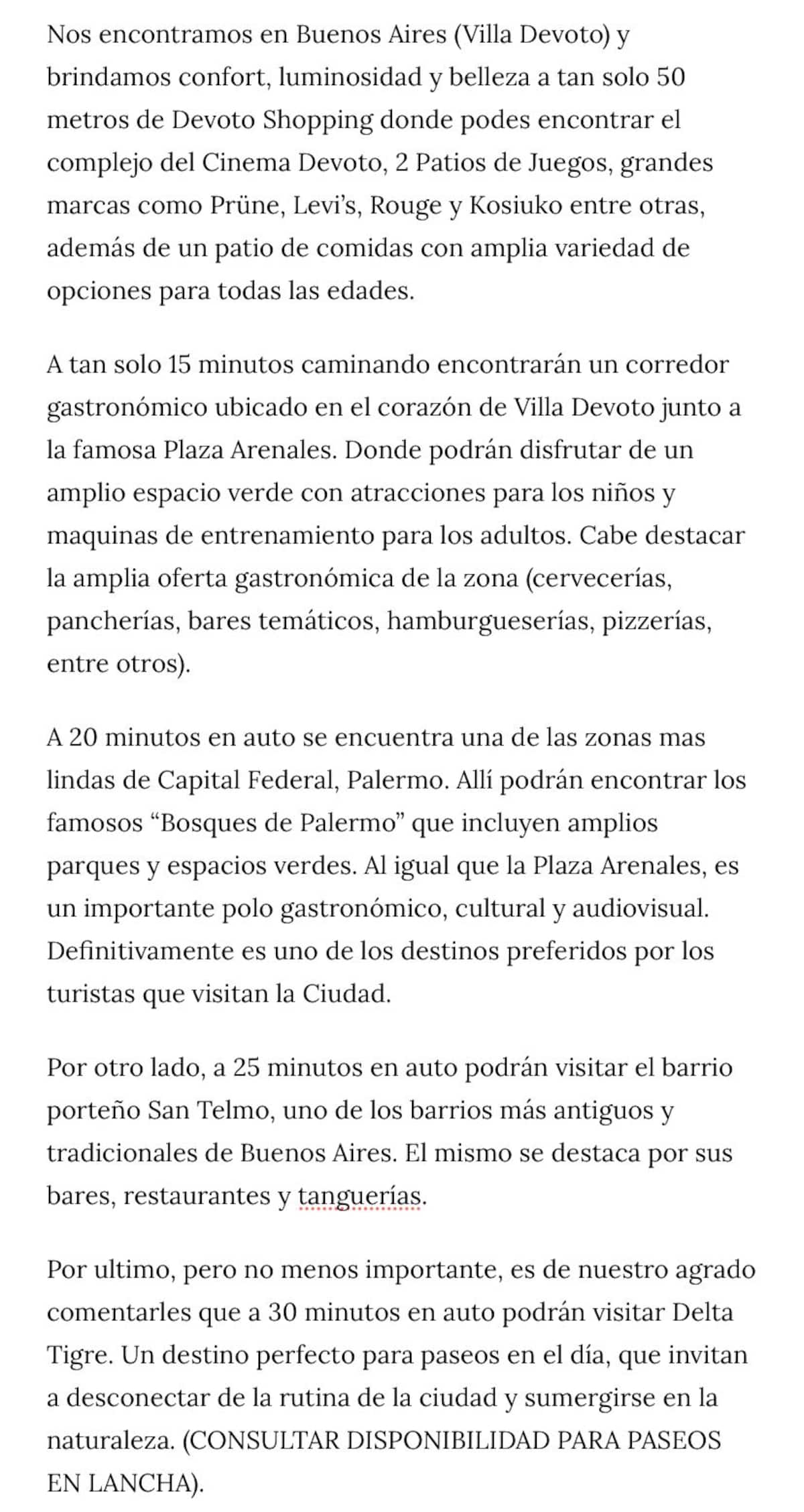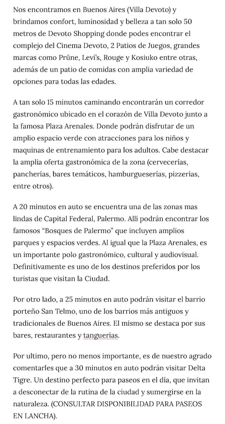 В описании указано только местоположение и планировку. Квартира в Villa Devoto, 1 спальня. Дополнительные характеристики перечислены в последних фотографиях.