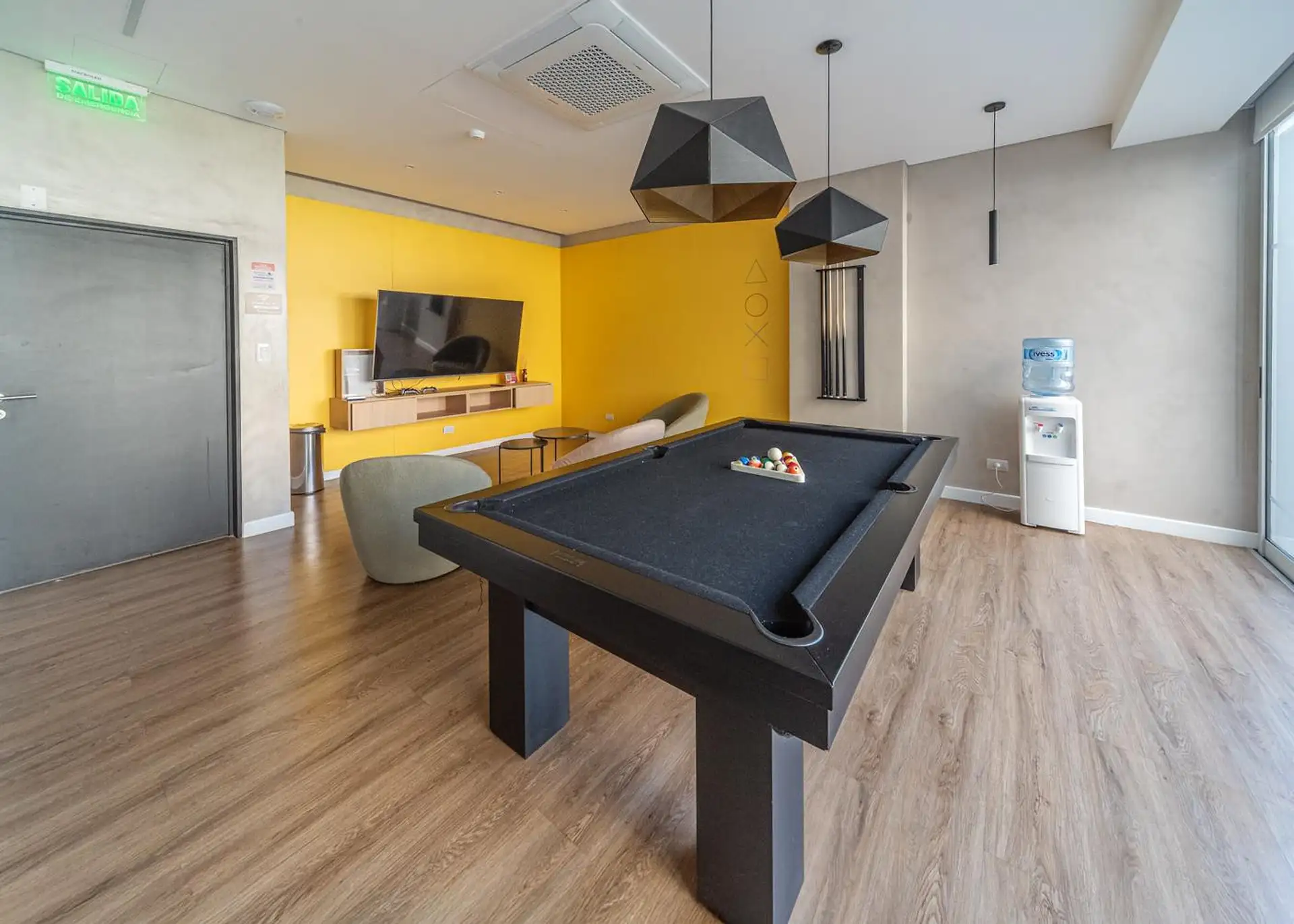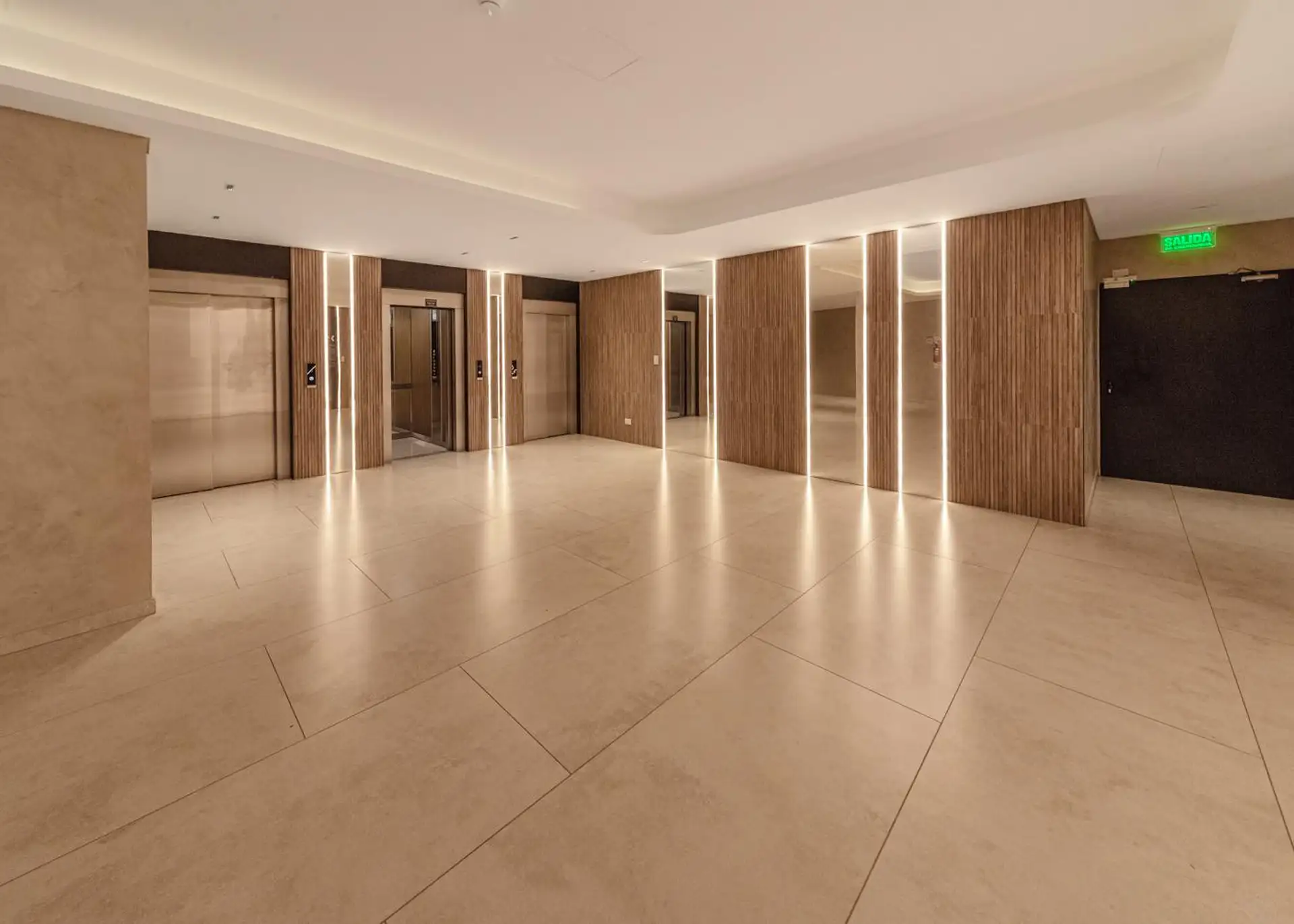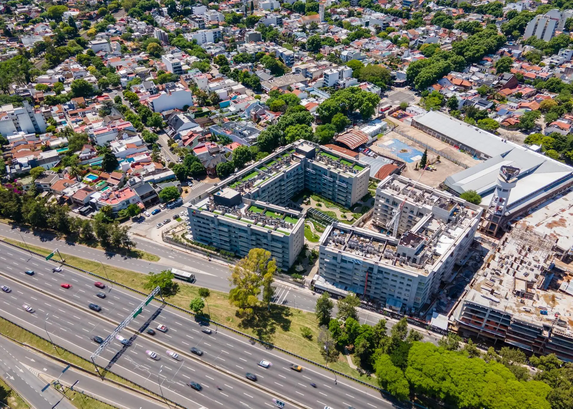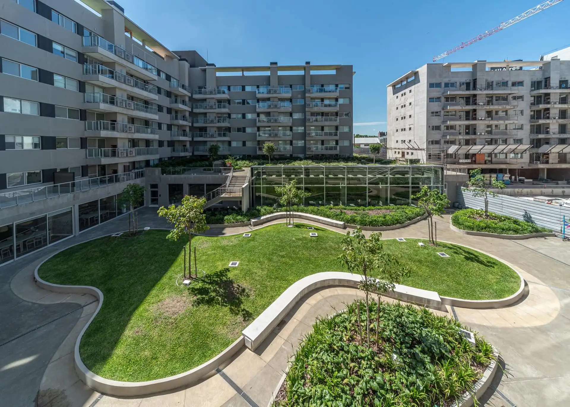 Квартира в Villa Devoto, 2 ambientes (1 спальня) в здании Edificio Lapacho, 1-й этаж, окна на восток, вид во внутренний двор квартала. Площадь в объявлении не указана. Балкон-терраса с зоной гриля, 1 полностью оборудованная ванная комната. Кондиционер в обоих помещениях; установлены шторы screen и blackout. Кухня с интеграцией, заявлены отделочные работы и возможность немедленного заселения. В комплексе: открытые и подогреваемые бассейны, тренажёрный зал, spa, сауна, coworking, общая гостиная дл