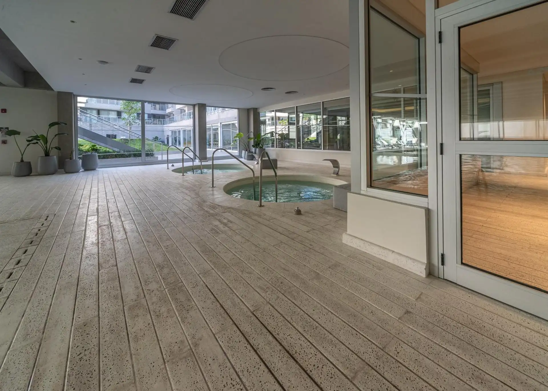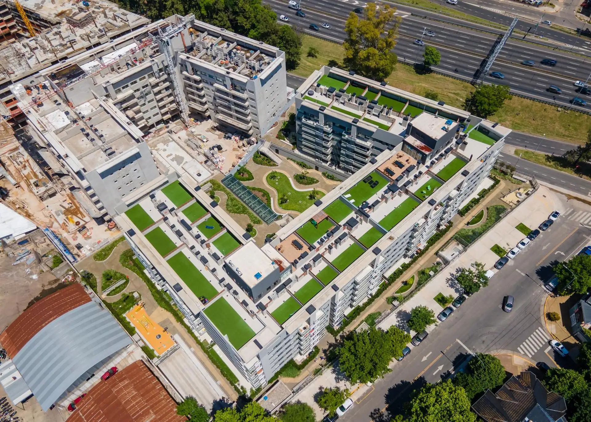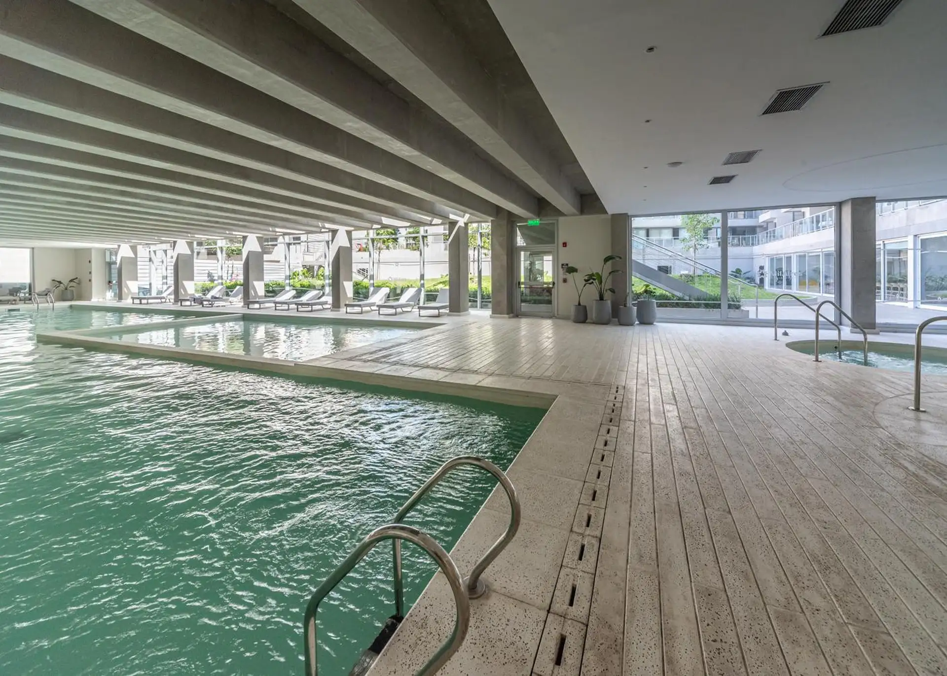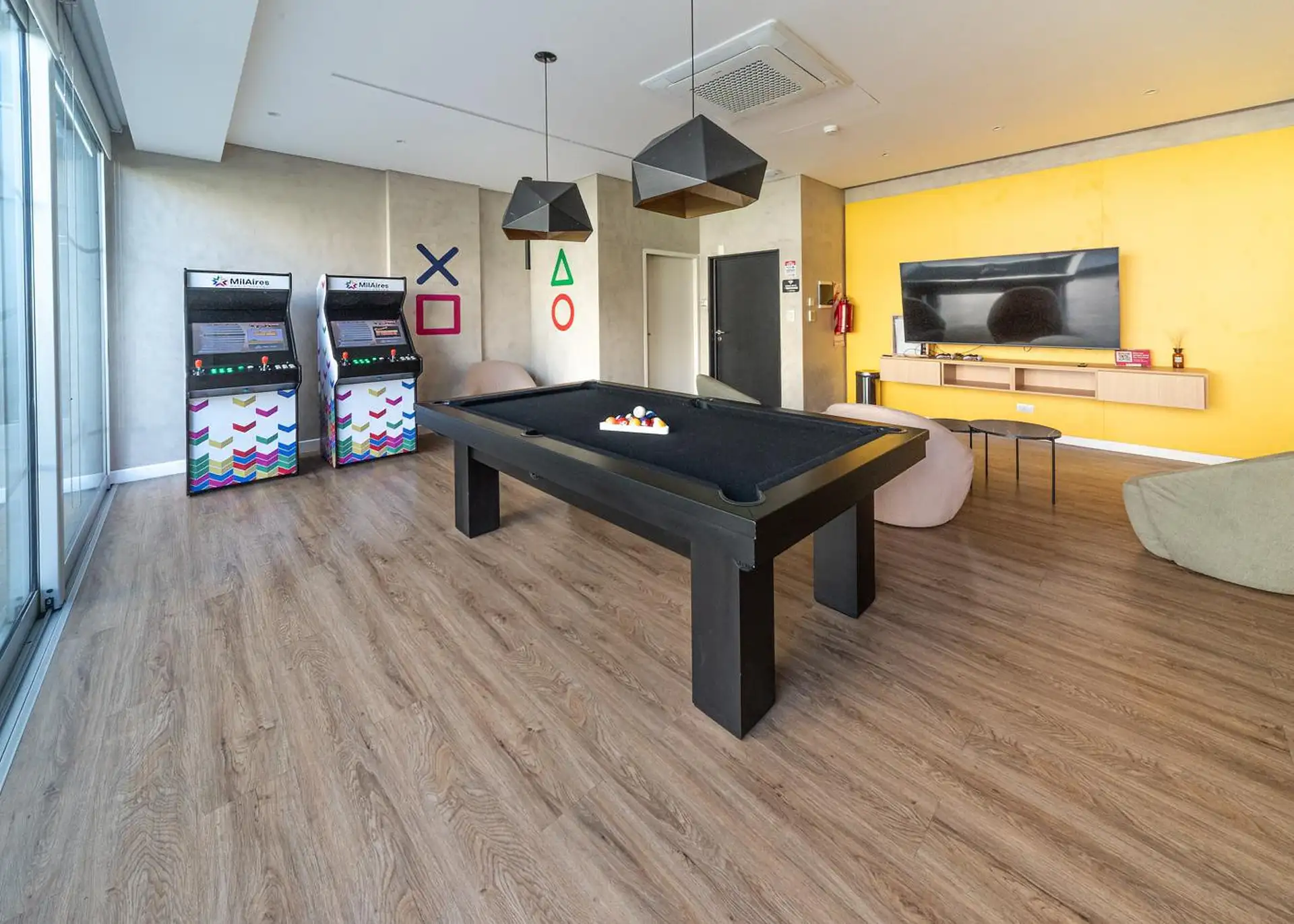 Квартира в Villa Devoto, 2 ambientes (1 спальня) в здании Edificio Lapacho, 1-й этаж, окна на восток, вид во внутренний двор квартала. Площадь в объявлении не указана. Балкон-терраса с зоной гриля, 1 полностью оборудованная ванная комната. Кондиционер в обоих помещениях; установлены шторы screen и blackout. Кухня с интеграцией, заявлены отделочные работы и возможность немедленного заселения. В комплексе: открытые и подогреваемые бассейны, тренажёрный зал, spa, сауна, coworking, общая гостиная дл