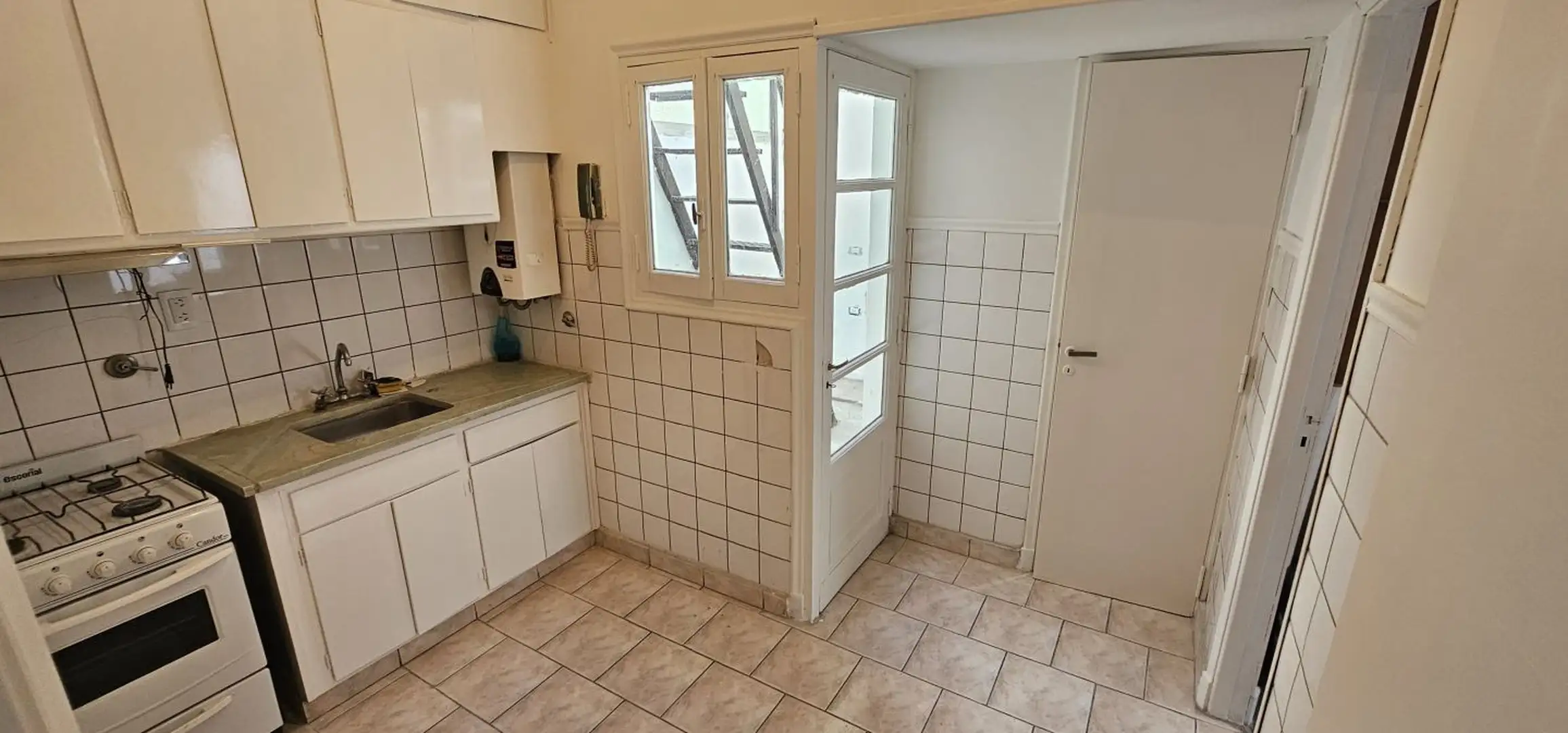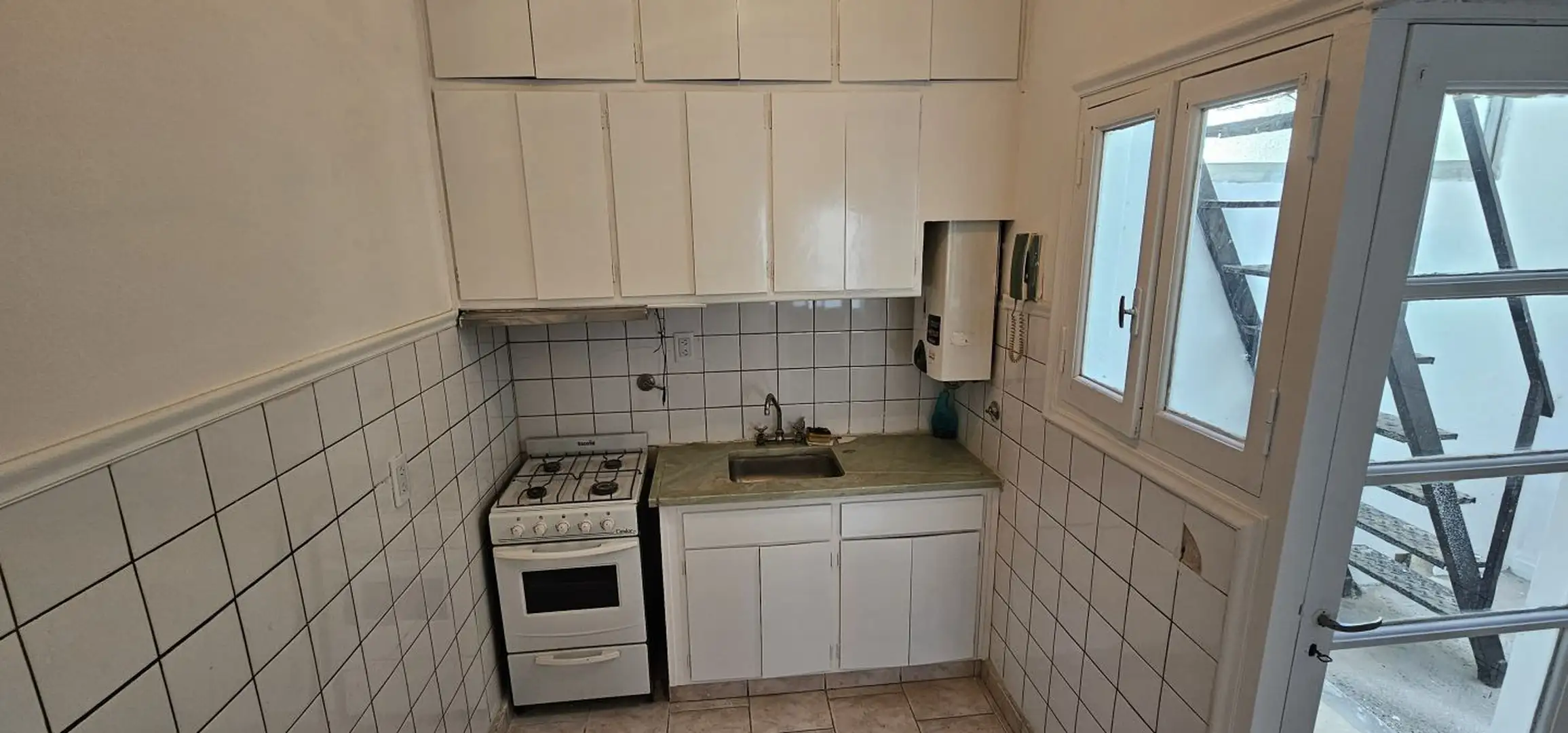 PH (квартира с отдельным входом) в Villa Devoto, 2 комнаты, расположен на верхнем этаже. В гостиной-столовой 6,5 x 3,0 м установлена сплит-система (холод/тепло); через новые алюминиевые окна выход в внутренний двор 5,5 x 1,0 м, куда также выходят окна спальни. Спальня 3,7 x 3,0 м с паркетом и встроенными шкафами, без выхода на балкон. Дневная кухня-столовая 3,0 x 2,0 м с мебелью и выходом в полукрытый двор 3,0 x 1,40 м, предусмотрено подключение для стиральной машины; есть лестница на верхний ур