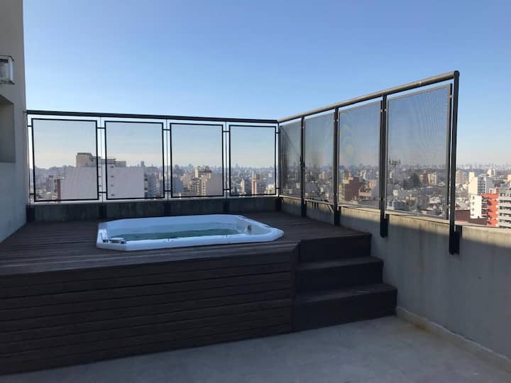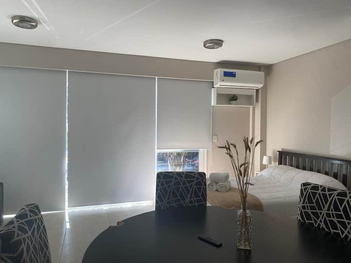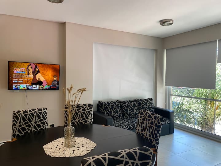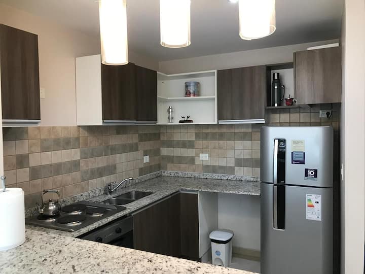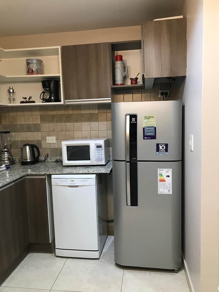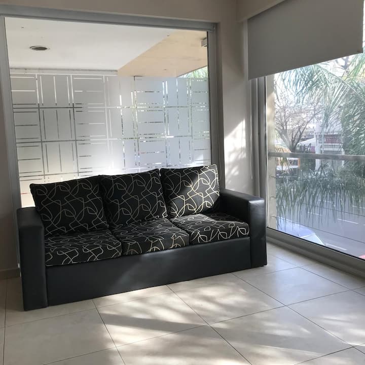 Квартира в Villa Pueyrredón, расположена на авеню, рядом с магазинами, ресторанами, аптеками и площадями. В квартире есть 1 спальня и 1 ванная комната. Кухня полностью оборудована: духовка, холодильник с морозильной камерой, микроволновая печь, посудомоечная машина и посуда. Также указаны отопление через радиаторную розетку, кондиционер, Wi‑Fi и телевизор с Chromecast. В здании есть спортзал, стиральная машина (без сушильной стойки), SUM (за отдельную плату) и место для велосипедов.