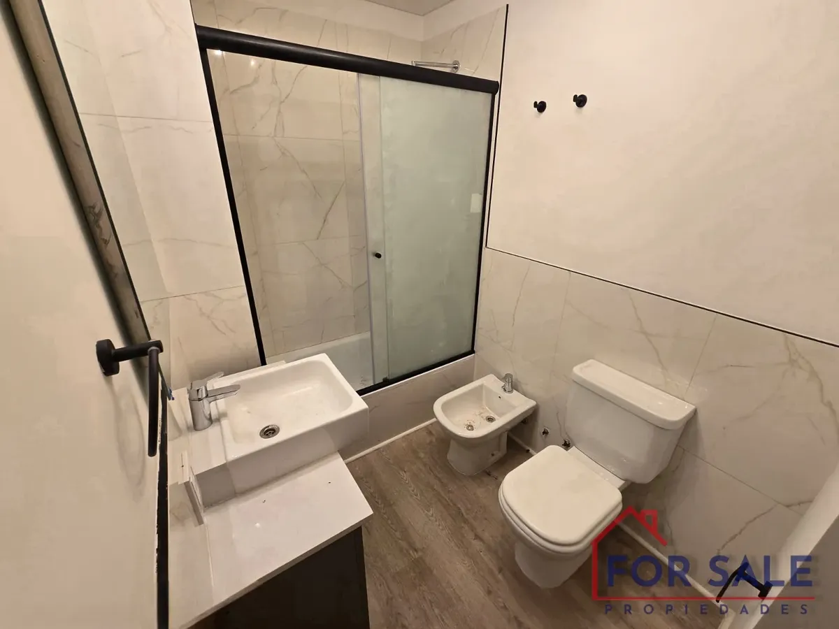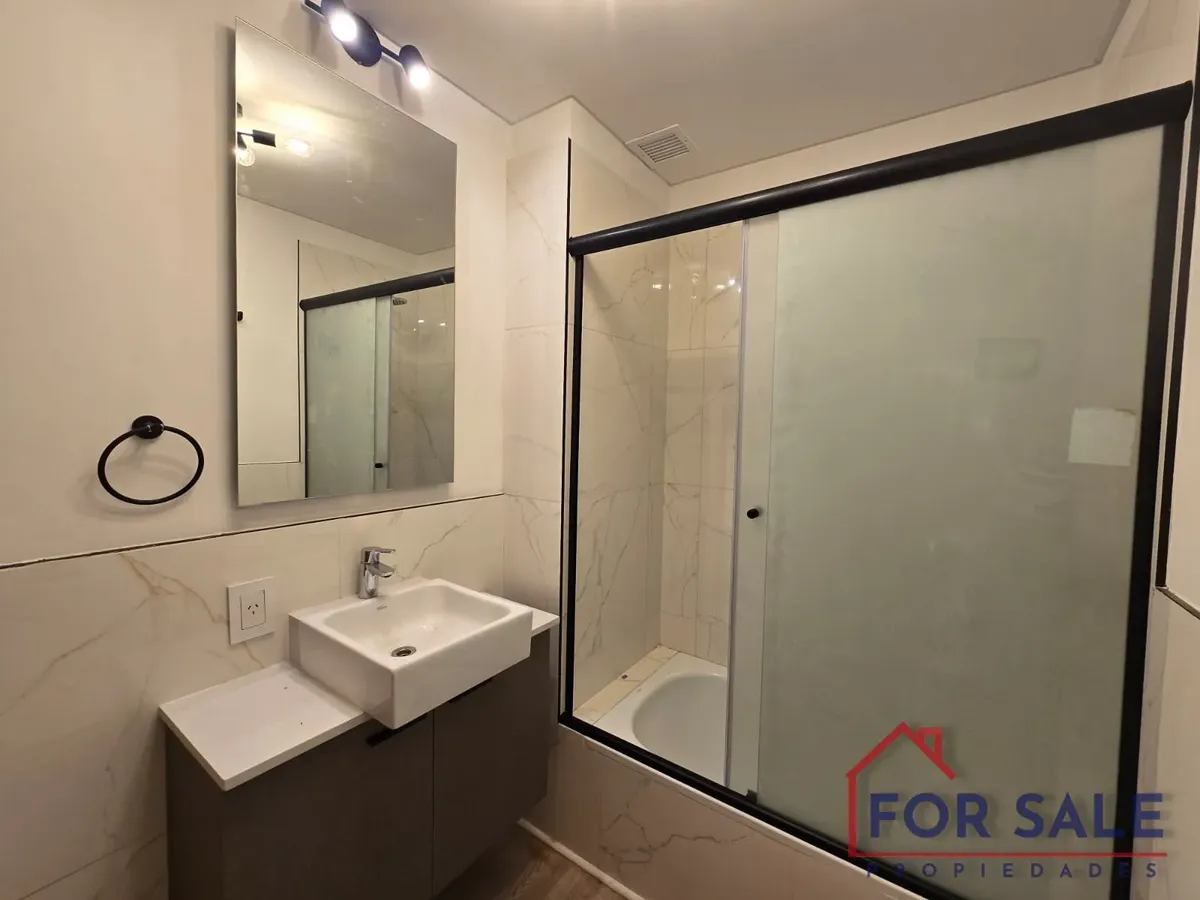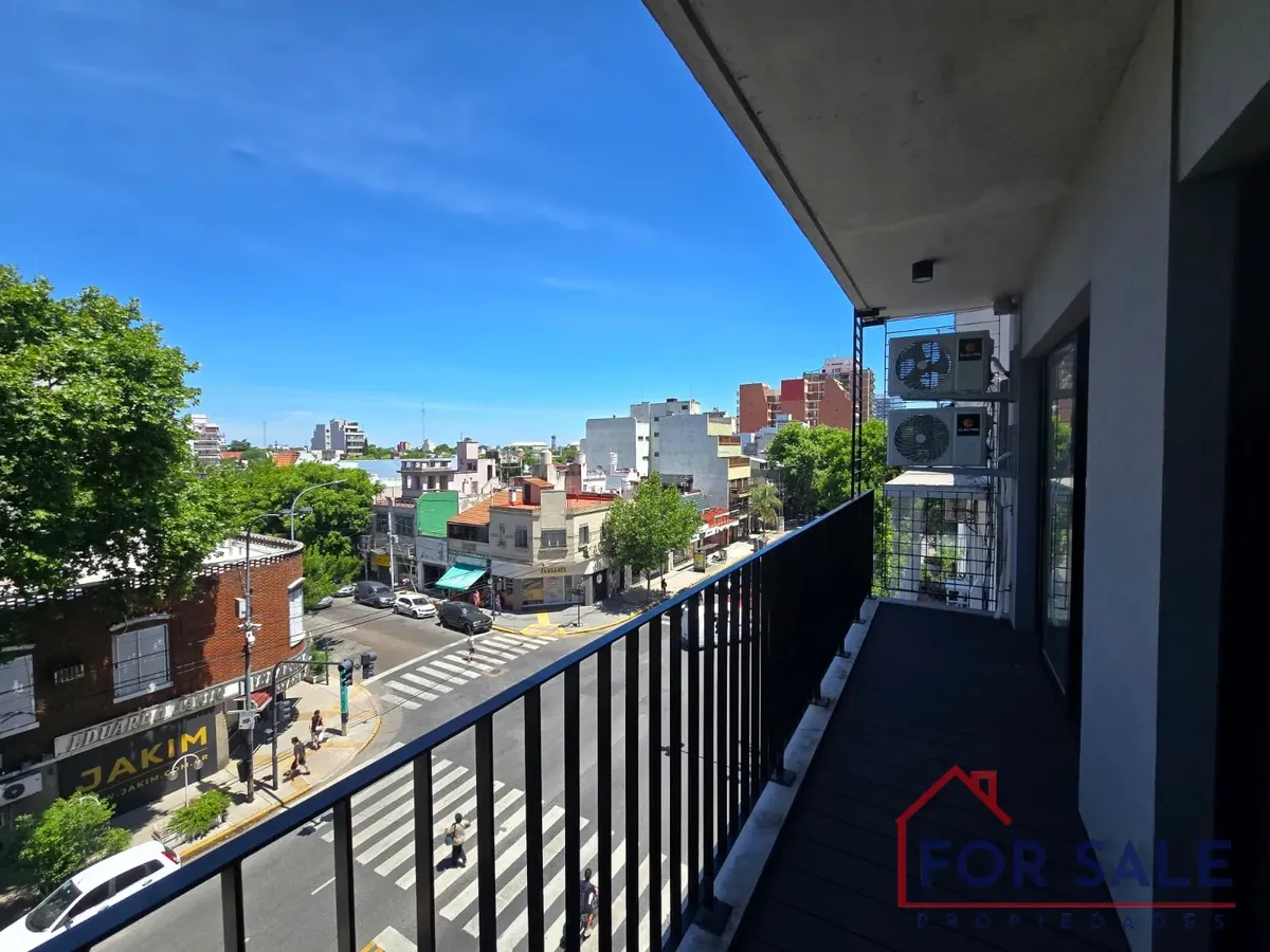 Квартира в Villa Devoto с 2 комнатами, новая (никто не жил), 70 m² общих. Вход через прихожую с гостевым туалетом. Кухня и гостиная объединены в единое пространство 11 x 3 м, выход на балкон с окнами на улицу и открытым видом на Av. Francisco Beiró. Спальня с собственной ванной комнатой и гардеробом с выходом на балкон, в ванной установлена ванна и перегородка. Оборудование включает электрическую плиту с стеклокерамикой, встраиваемый электрический духовой шкаф, вытяжку, прачечную с мойкой, элект