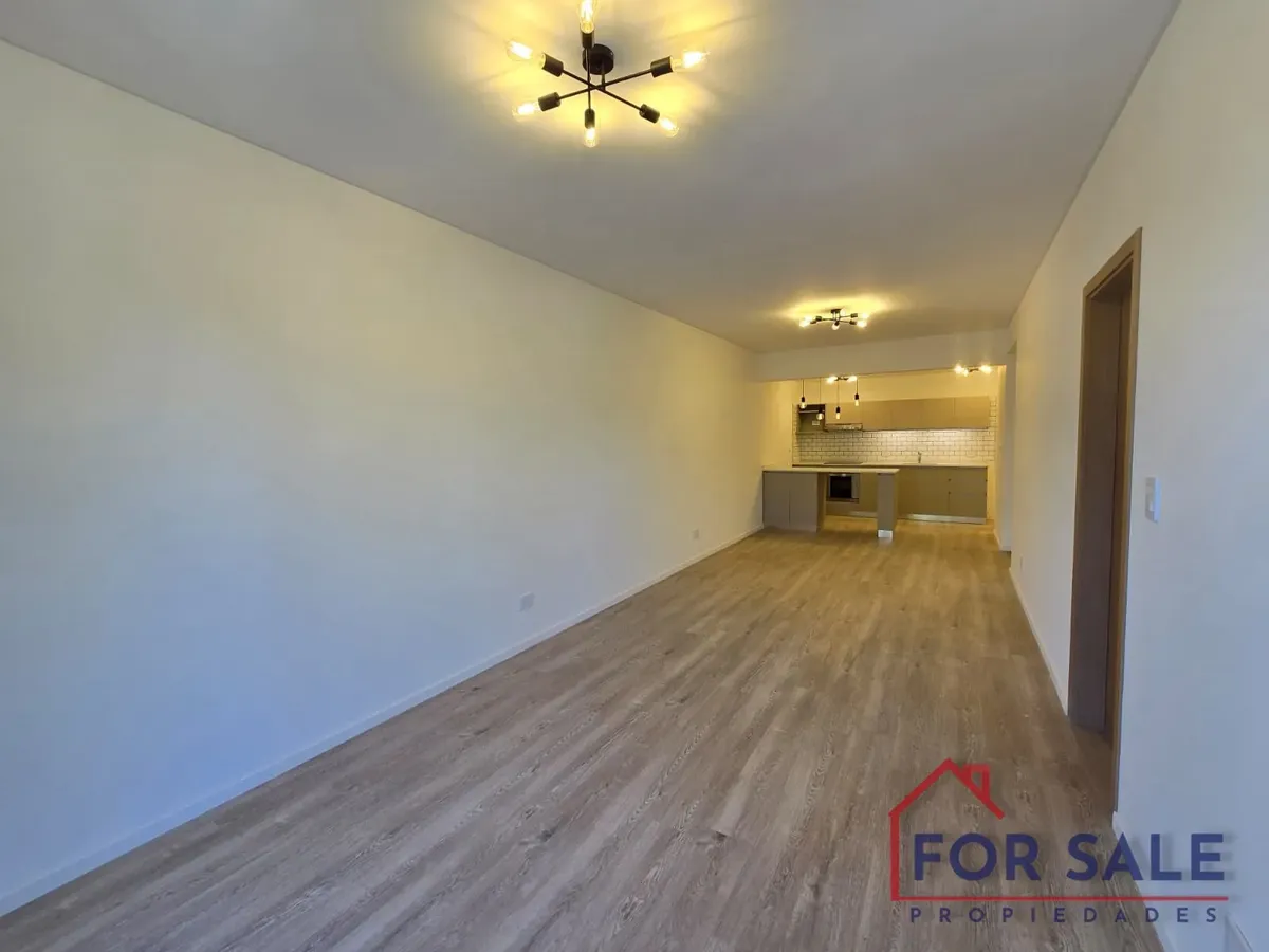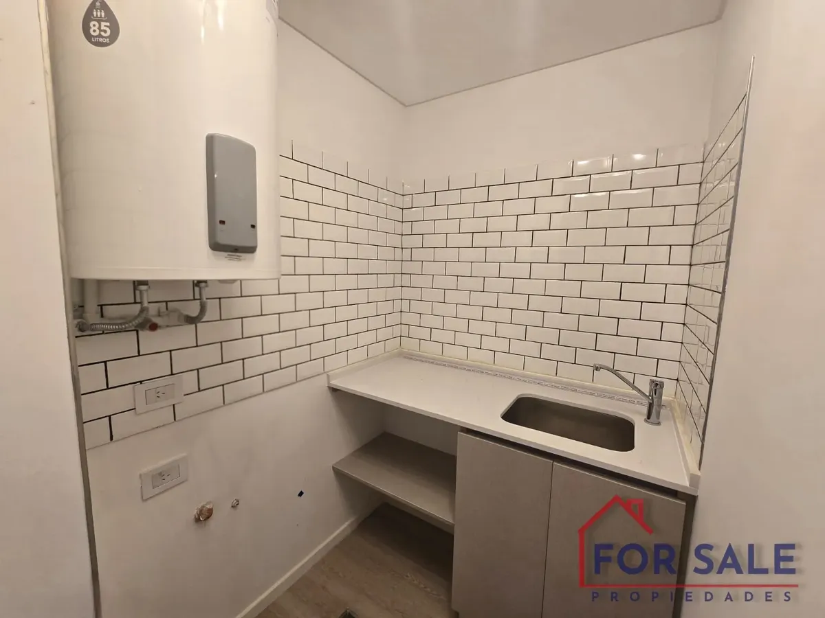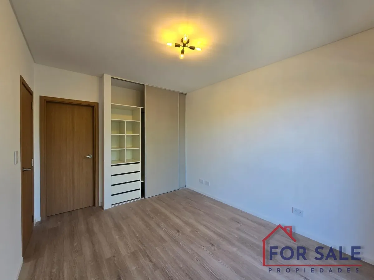Квартира в Villa Devoto с 2 комнатами, новая (никто не жил), 70 m² общих. Вход через прихожую с гостевым туалетом. Кухня и гостиная объединены в единое пространство 11 x 3 м, выход на балкон с окнами на улицу и открытым видом на Av. Francisco Beiró. Спальня с собственной ванной комнатой и гардеробом с выходом на балкон, в ванной установлена ванна и перегородка. Оборудование включает электрическую плиту с стеклокерамикой, встраиваемый электрический духовой шкаф, вытяжку, прачечную с мойкой, элект