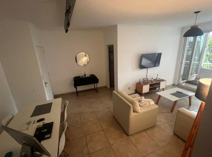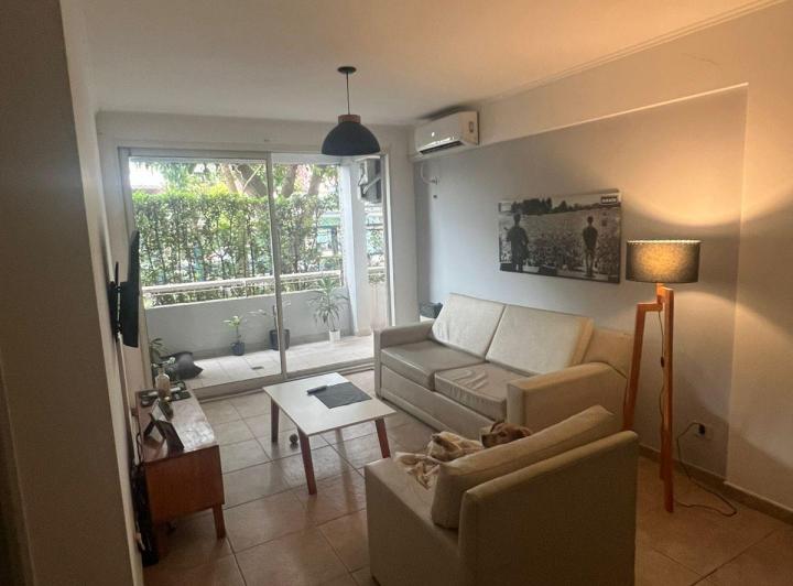 Квартира с двумя комнатами (1 спальня) в комплексе Casas de Boyacá, цокольный этаж с видом на Boyacá. 60 m² общих площадей: 50 m² крытых и 10 m² полукрытых/открытых террас, с возможностью разместить небольшой стол и стулья на открытом воздухе. Жилая зона включает гостиную-столовую 23,5 m² и спальню 13,5 m². Установлены 2 кондиционера, отдельная кухня с нишей для умывальника и зоной под стиральную машину, полная ванная комната. В комплексе: охрана 24 часа, бассейн, внутренние сады и сухая площадь