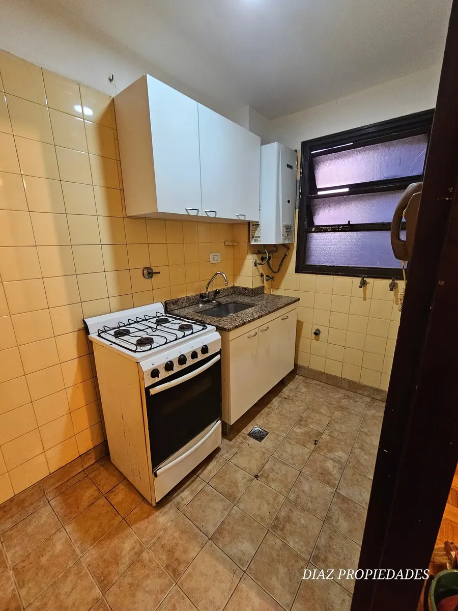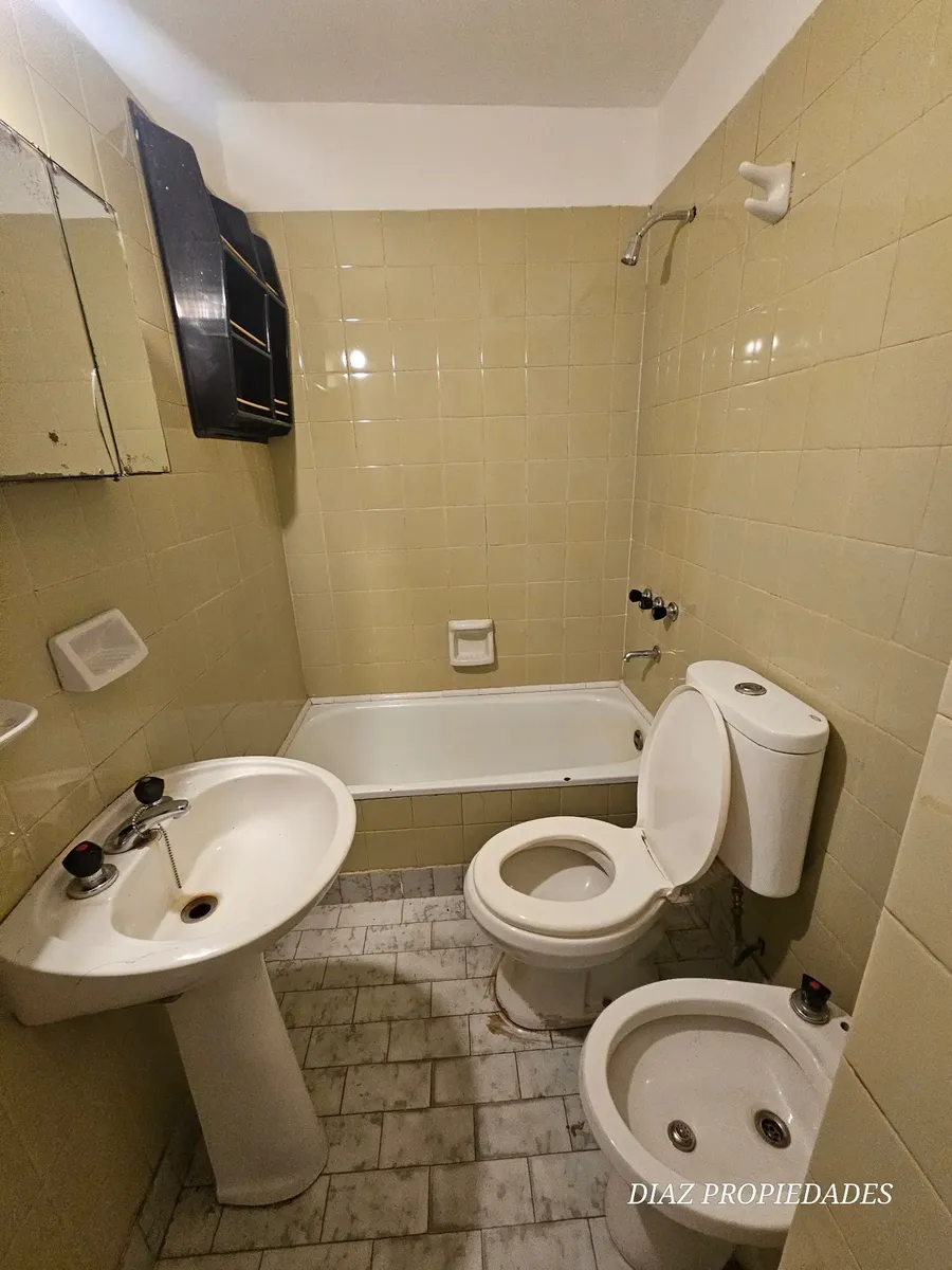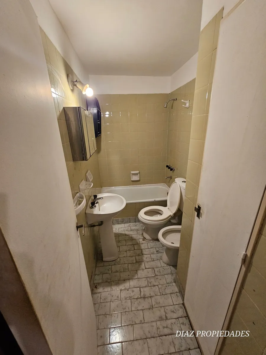 Квартира в Villa Luro, 2 комнаты, в помещении здания. Планировка включает спальню со встроенным шкафом и ванную комнату в suite, а также гостиную с «американским» балконом. Отдельная кухня с зоной для прачечной. Подходит для профессионального, коммерческого использования или проживания. Стоимость аренды $500.000 плюс коммунальные платежи здания и услуги; экспensas указаны в размере $100.000. Контракт на 2 года, с ежеквартальной индексацией по инфляции. При заселении: 1 месяц авансом и 2 месяца д